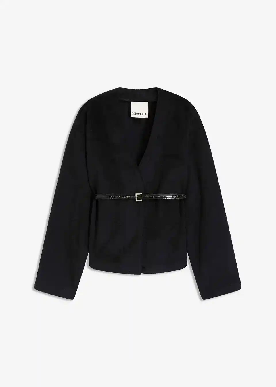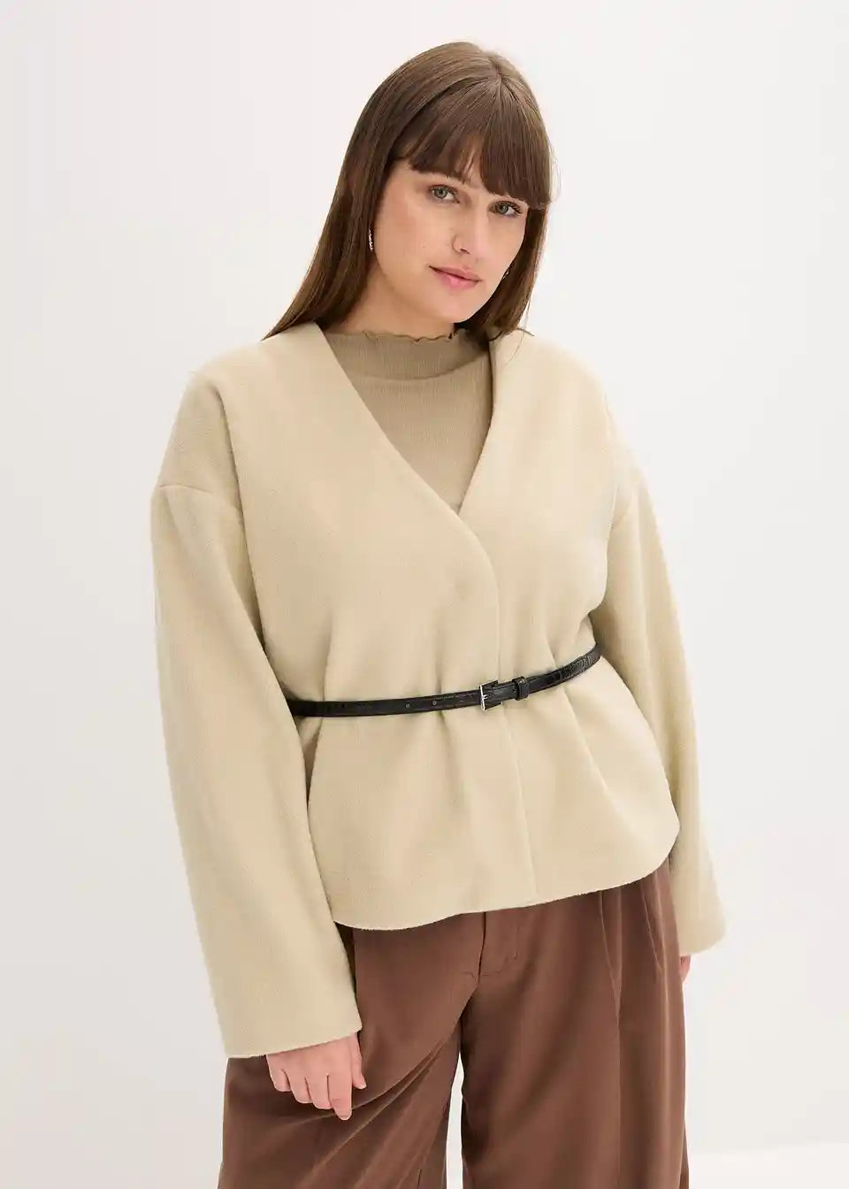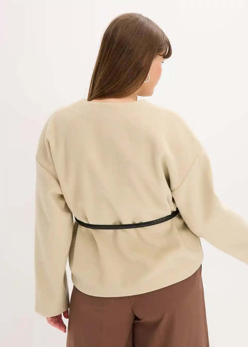 Ohlapen blazer s pasom v volnenem videzu brez podloge
