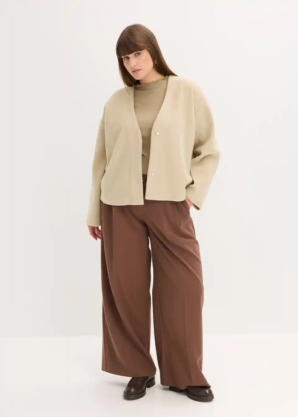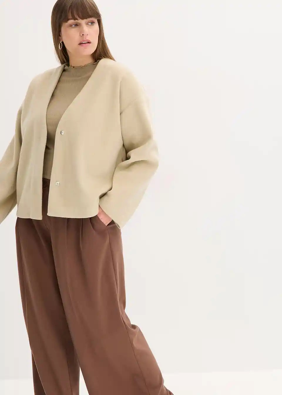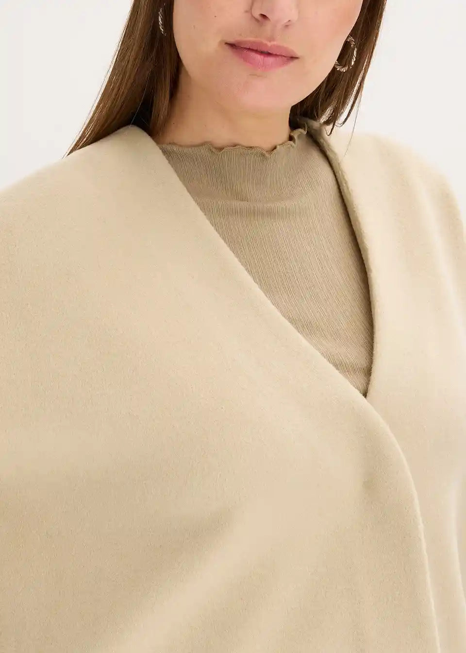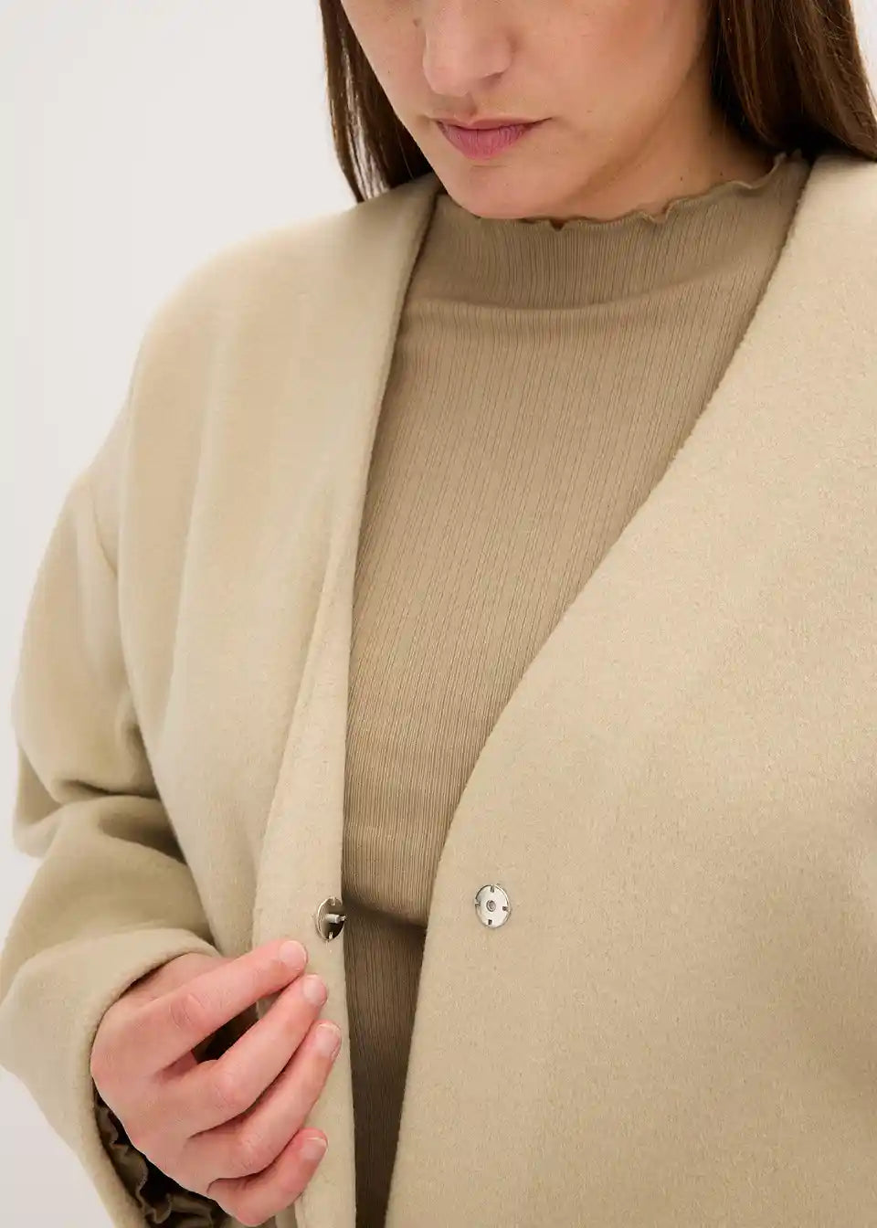 Ohlapen blazer s pasom v volnenem videzu brez podloge