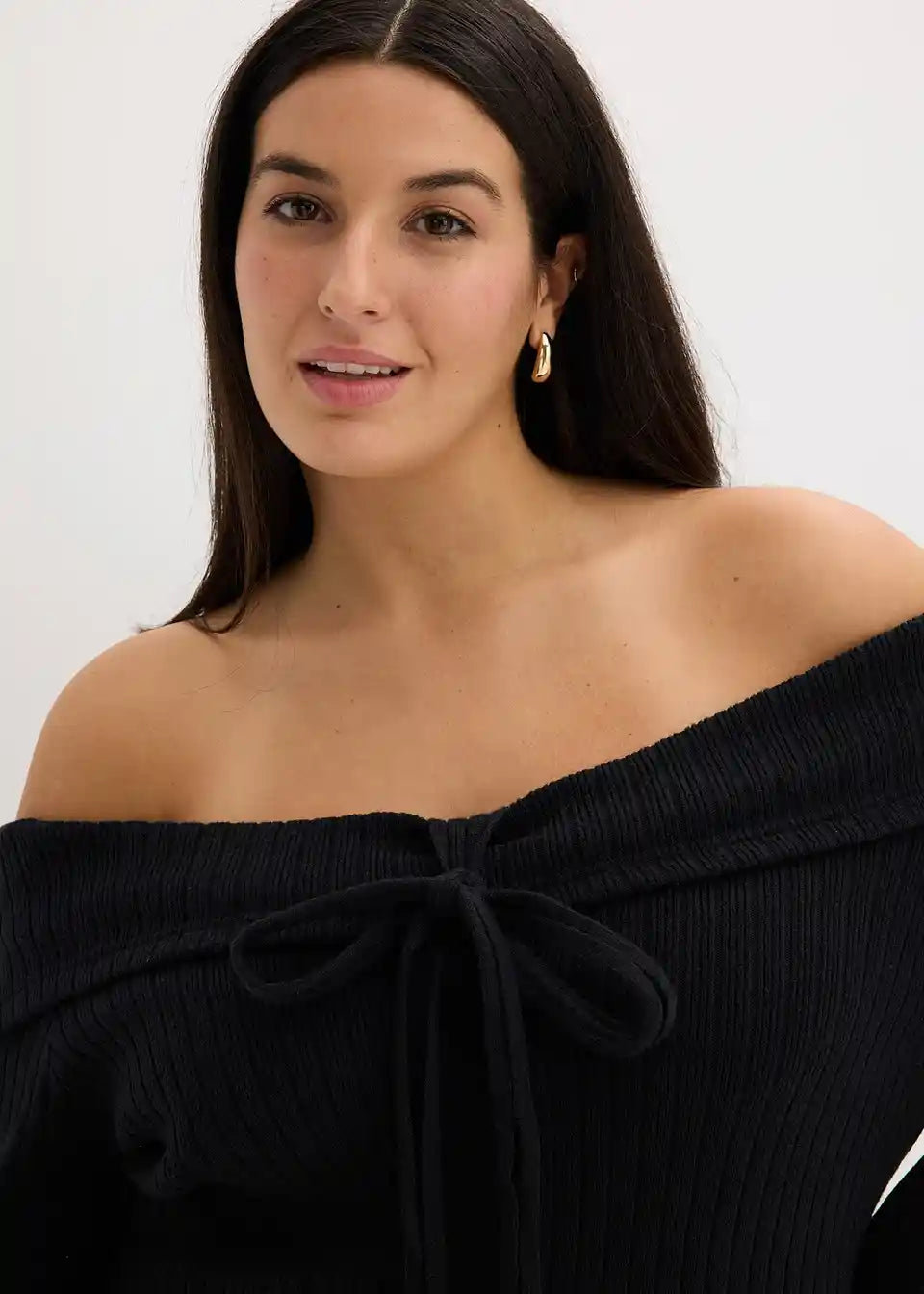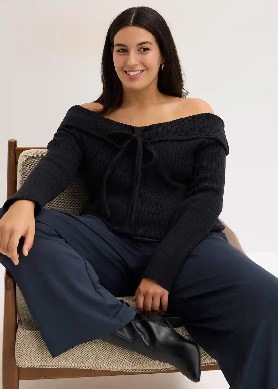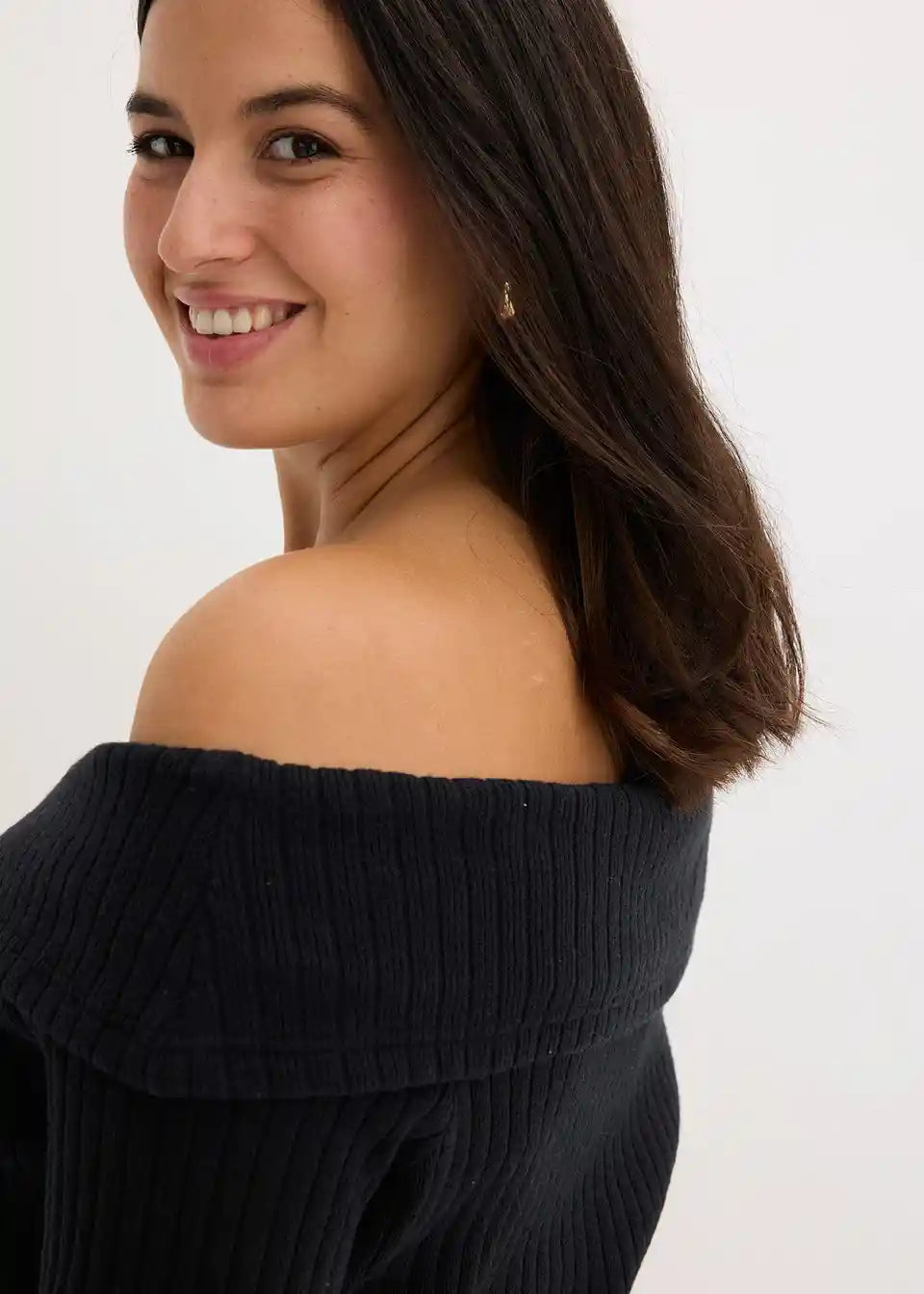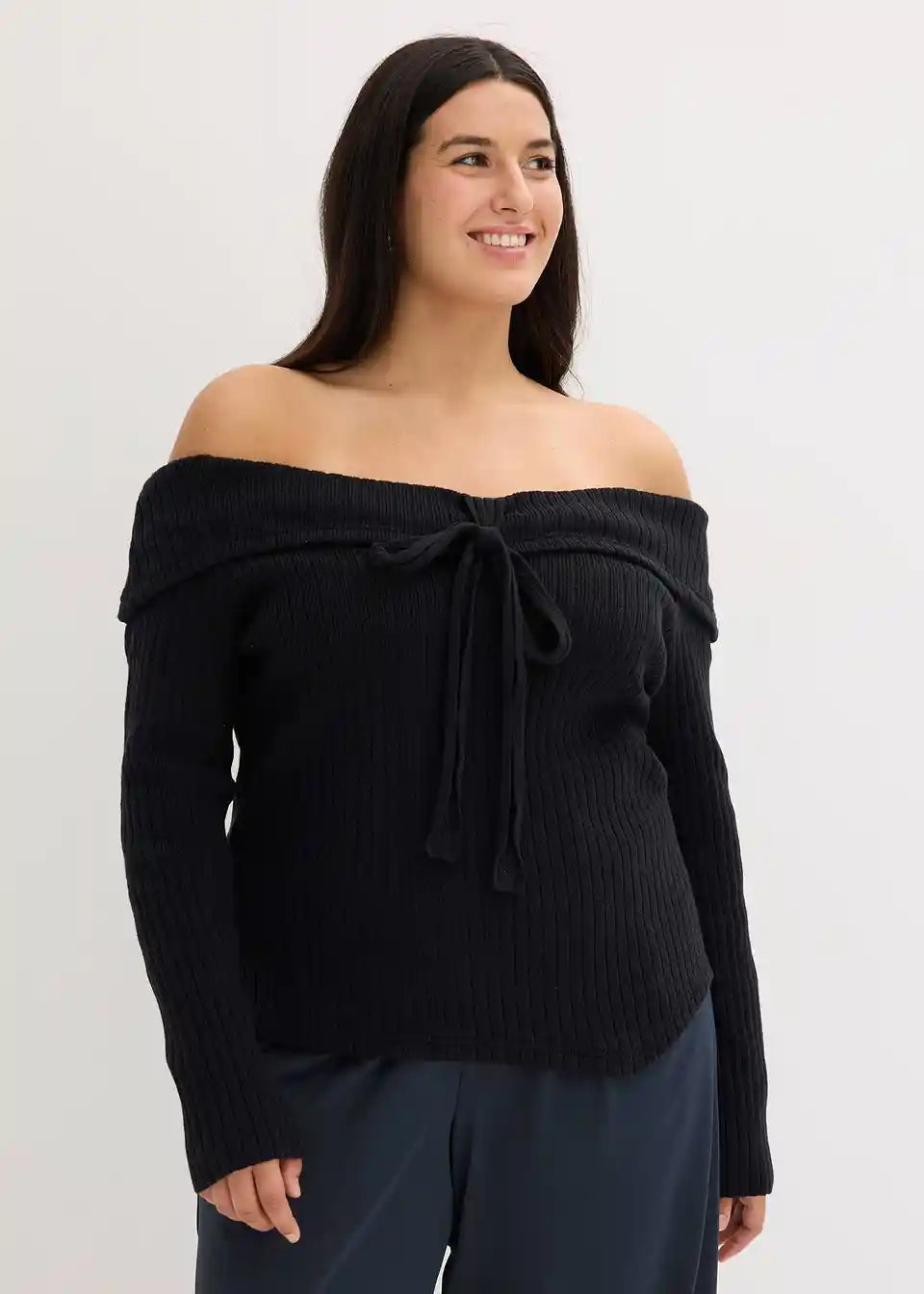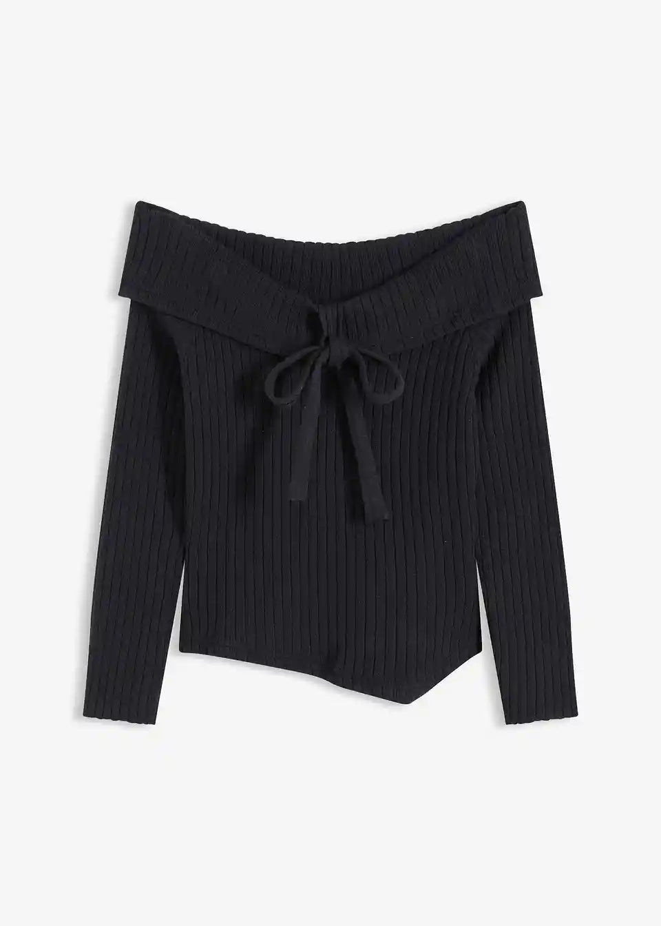 Moden pulover s carmen izrezom z rebrastim vzorcem