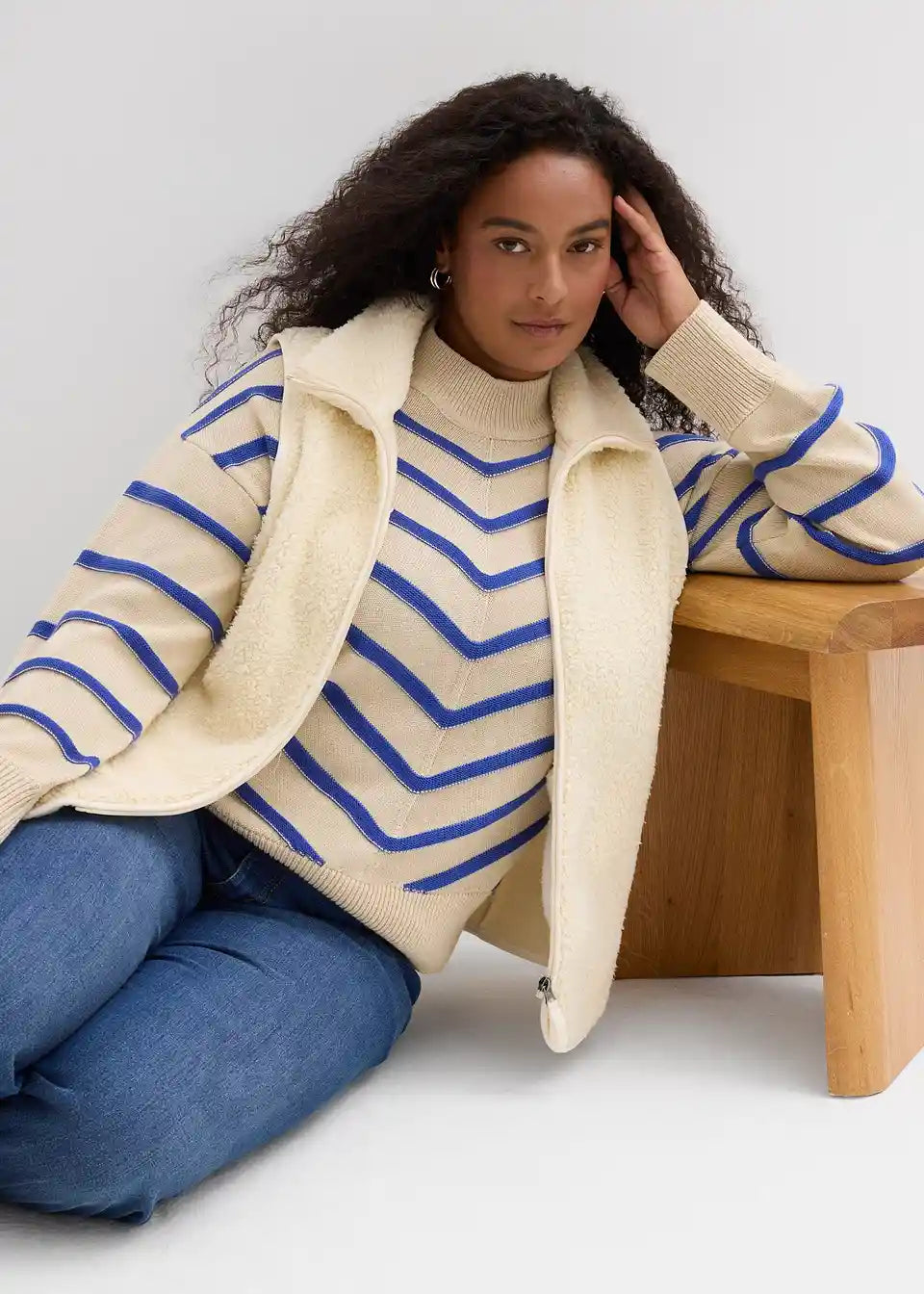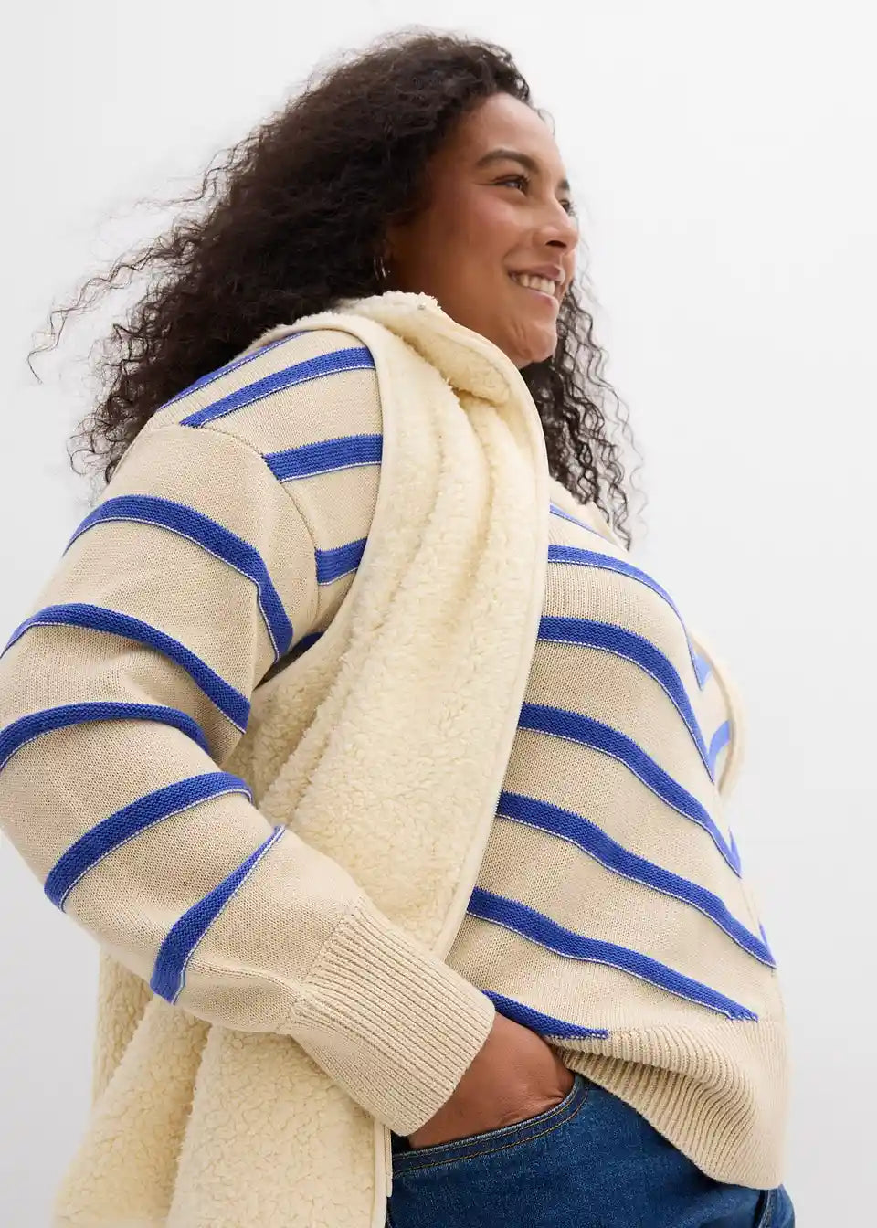 Udoben pulover s strukturnimi črtami