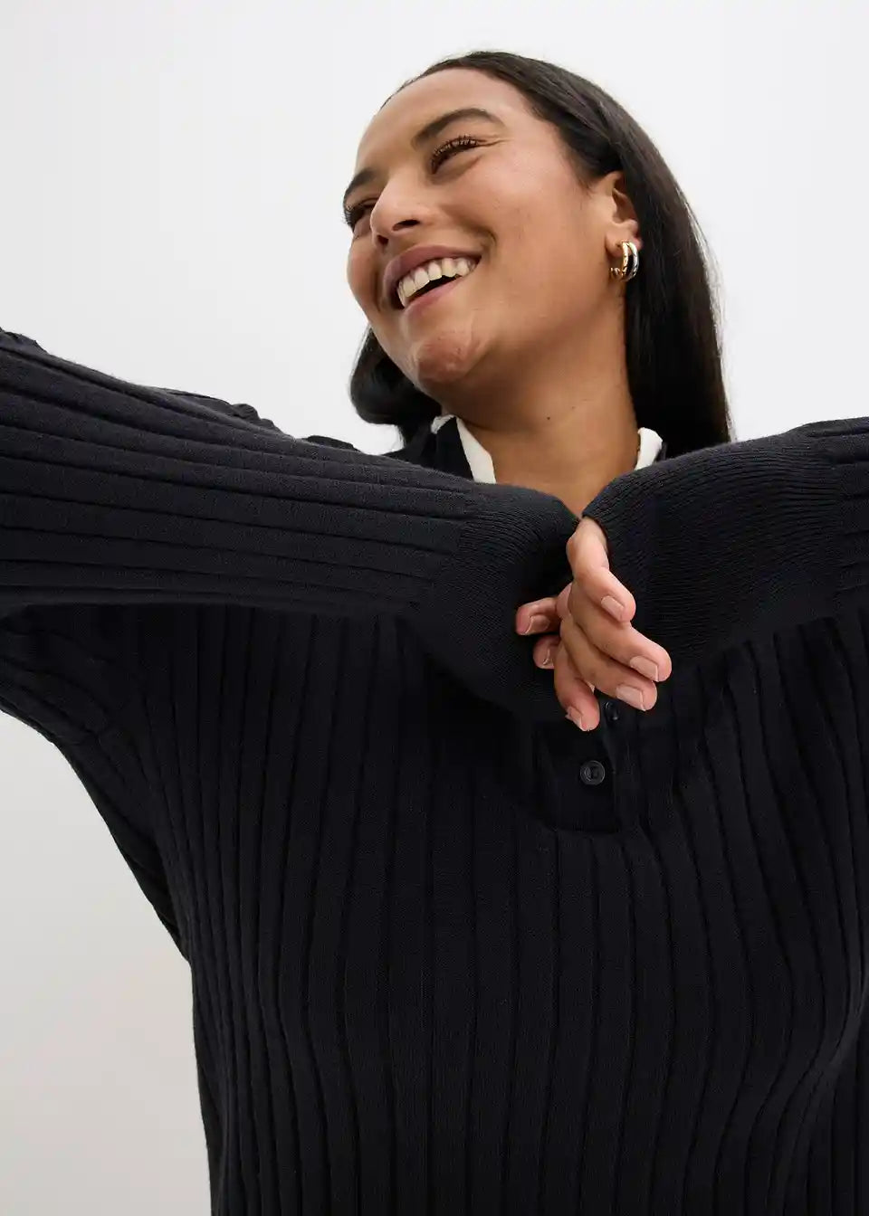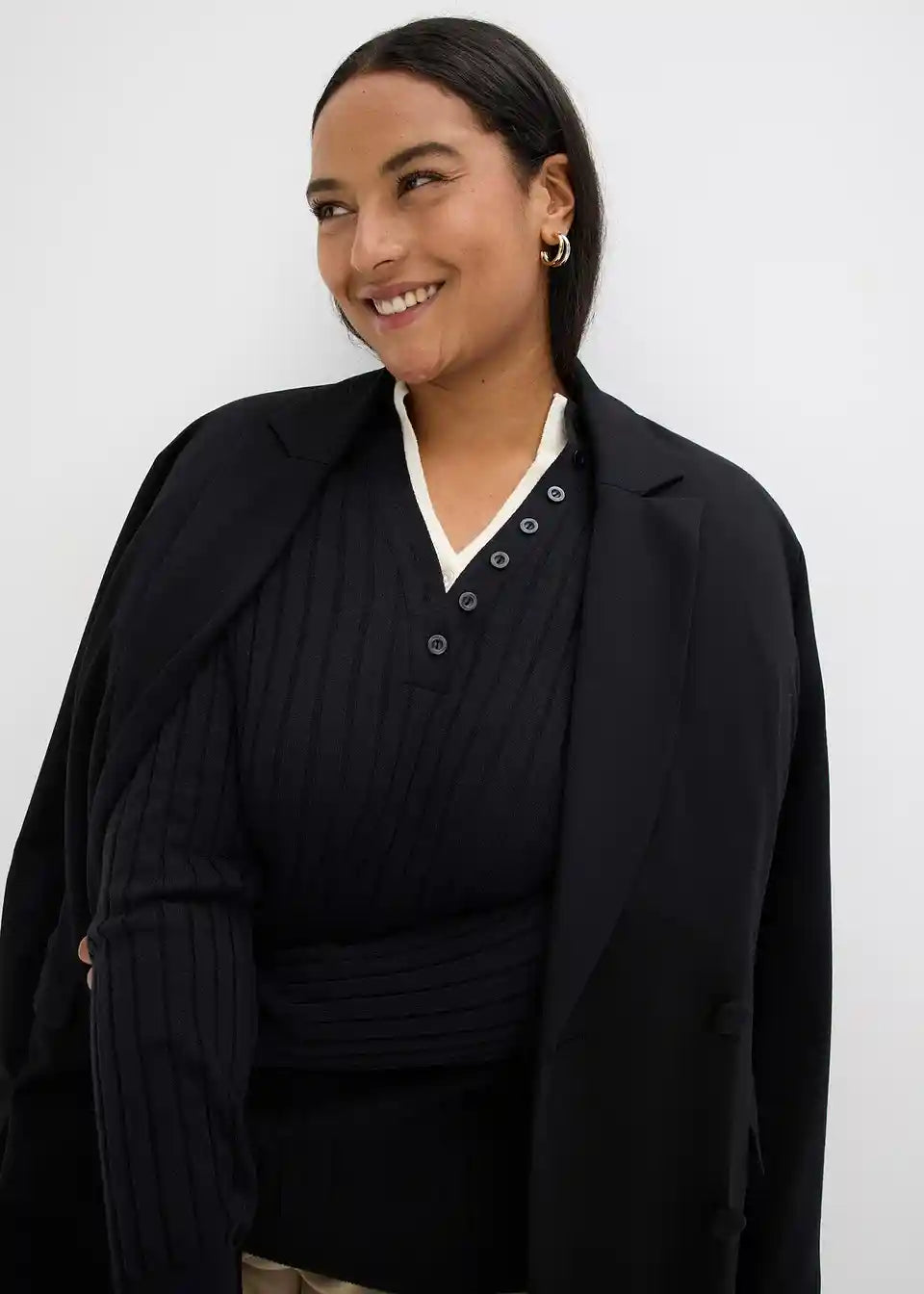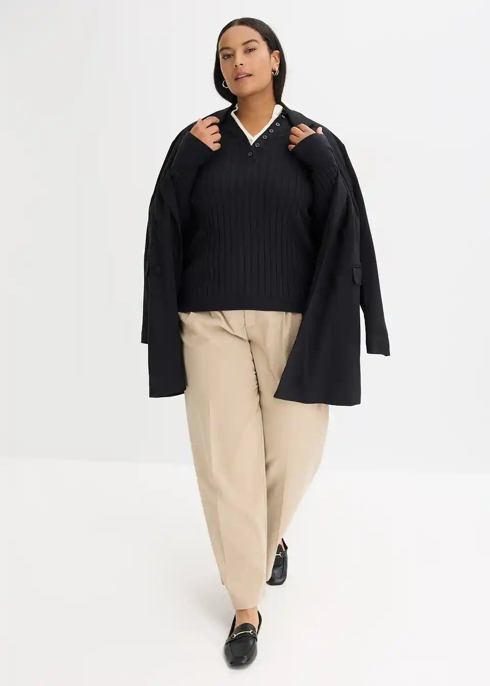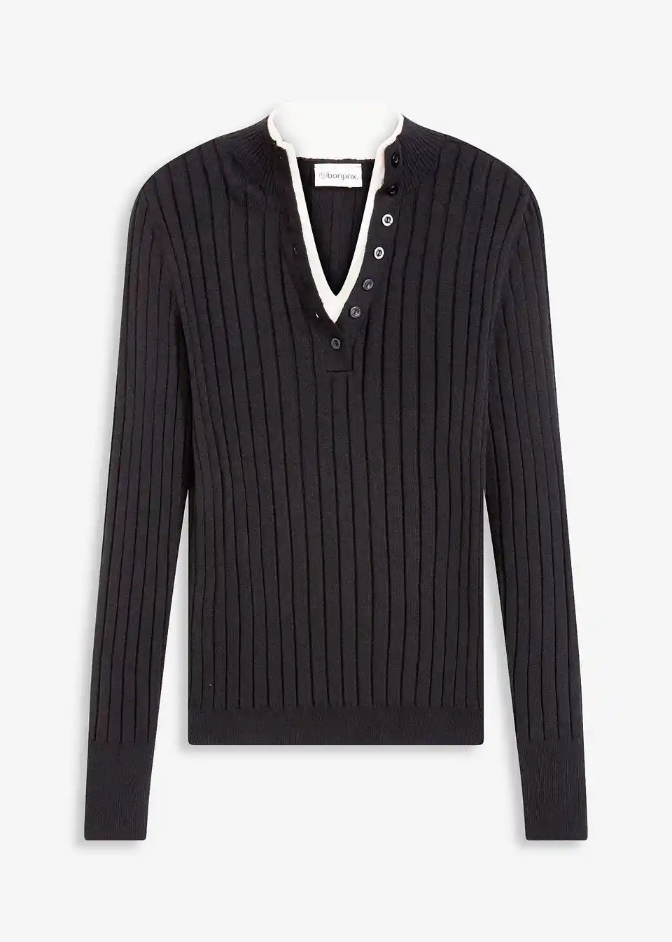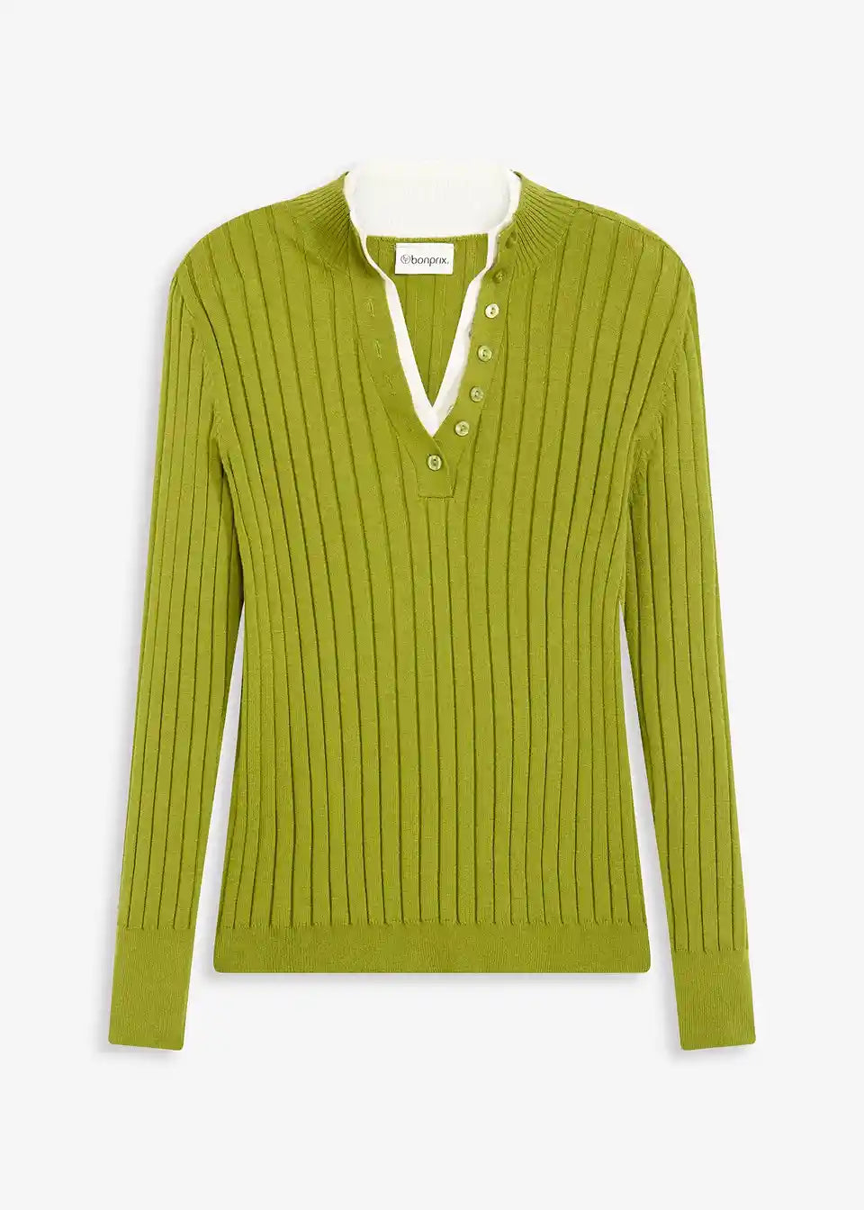 Prefinjen dvoplastni rebrast pulover z mehko viskozo