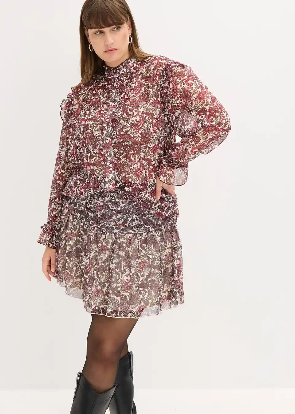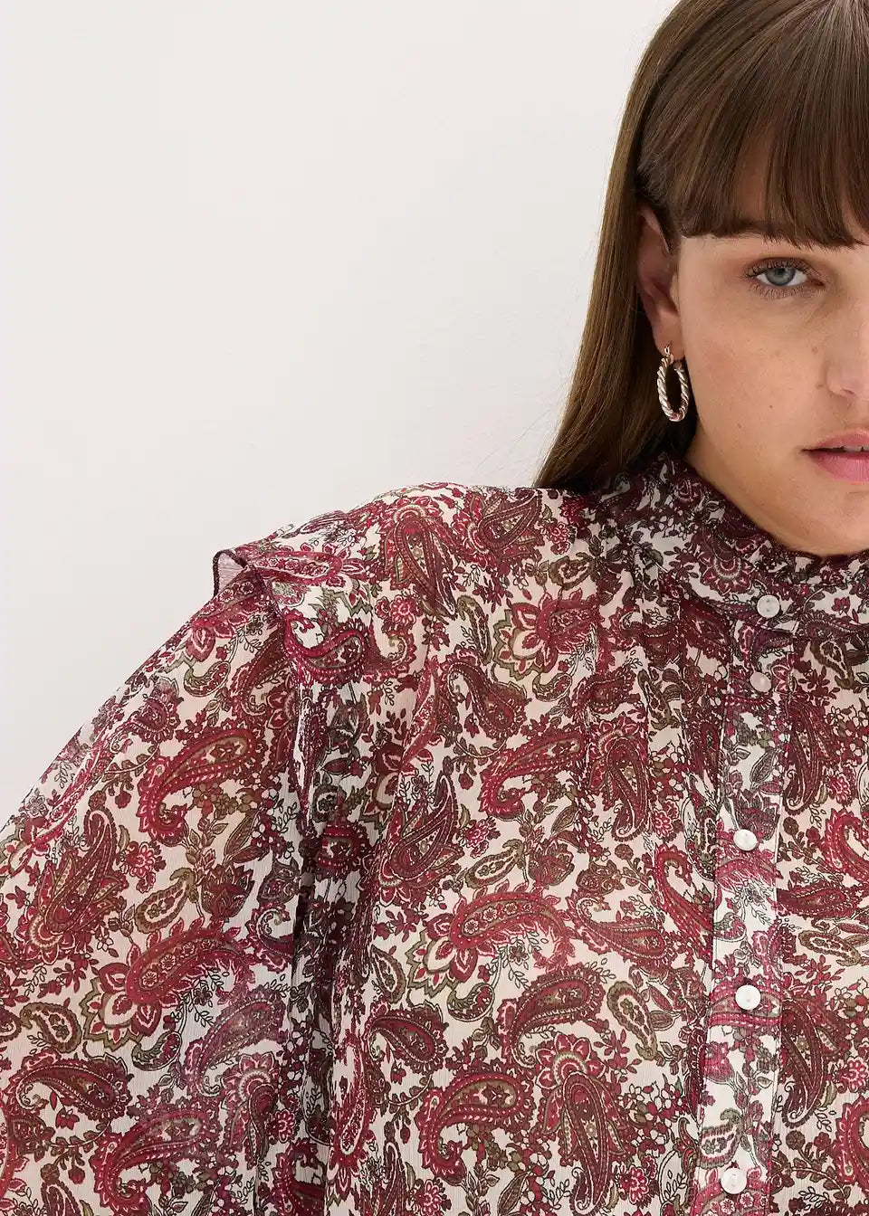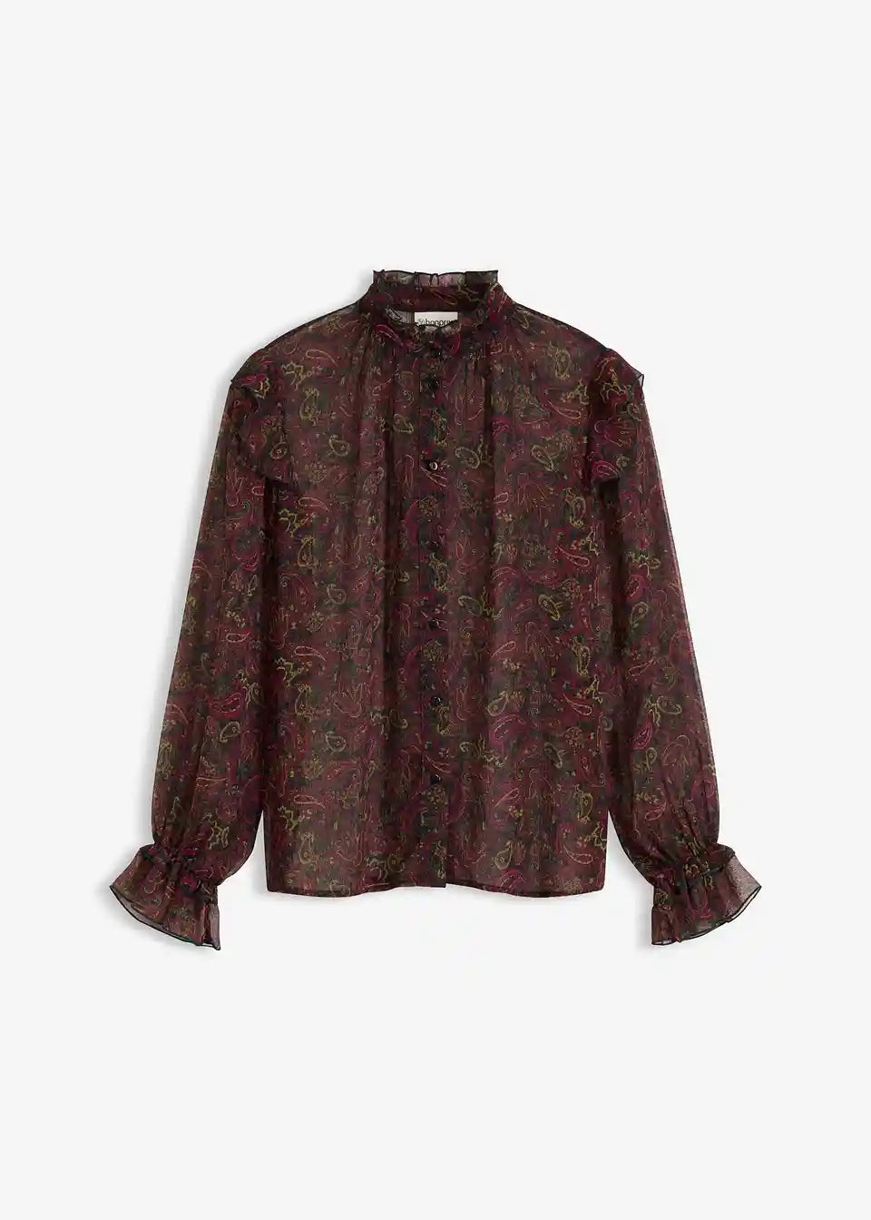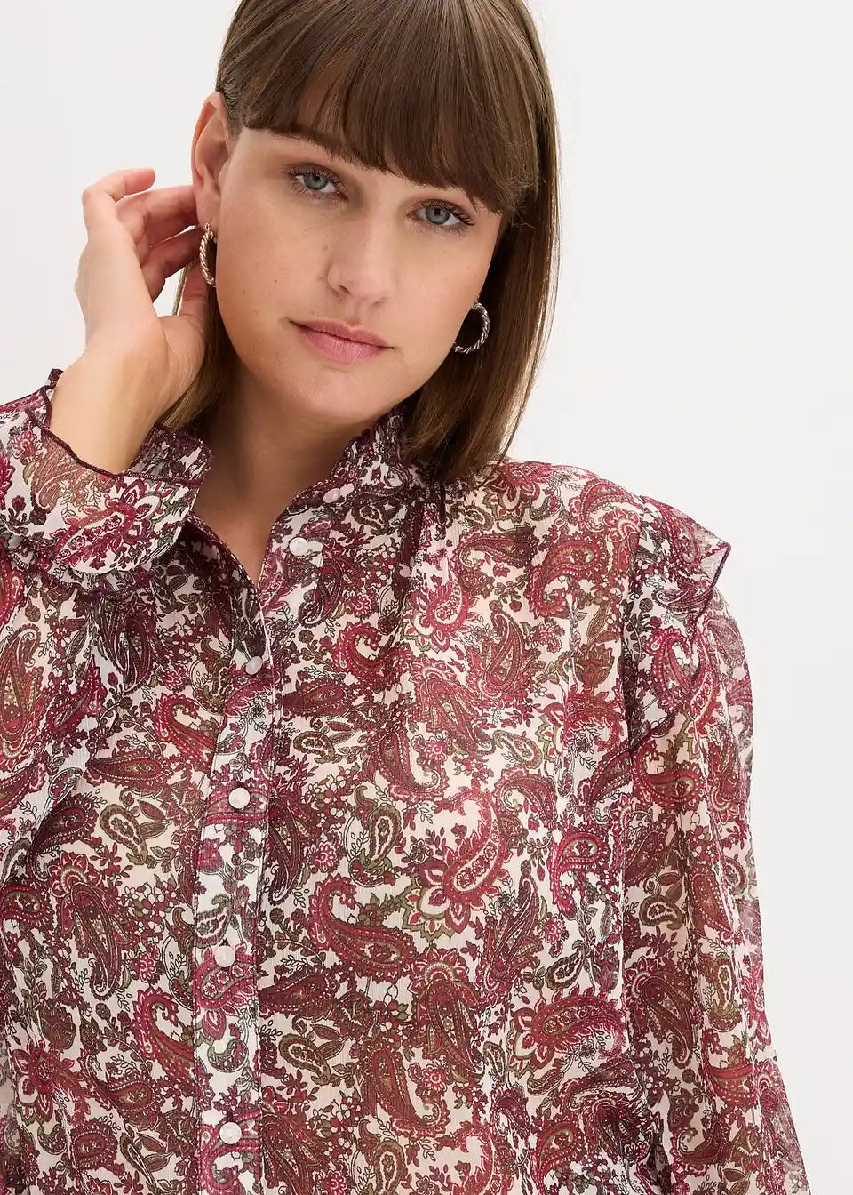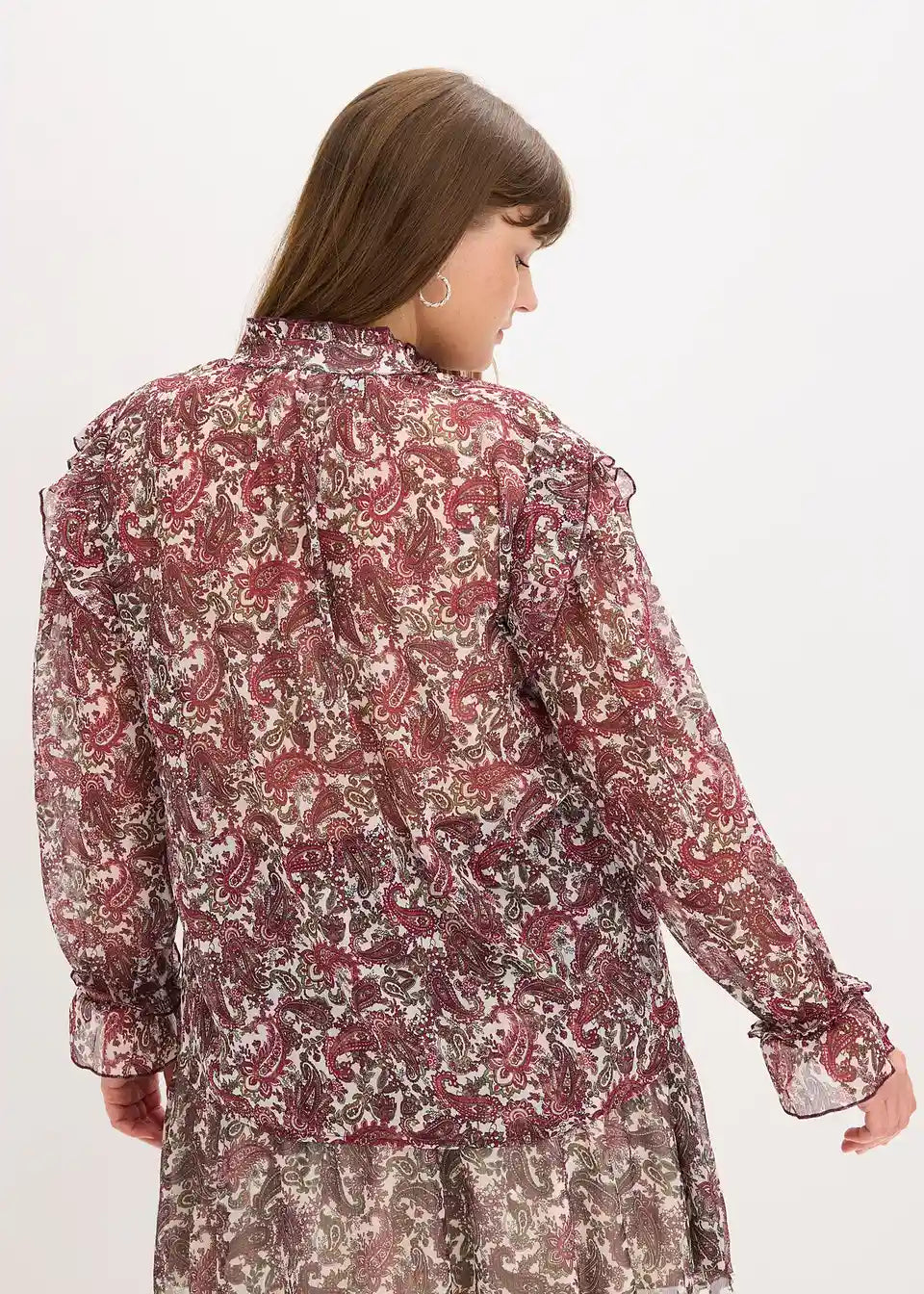 Bluza iz rahlo prosojnega šifona z modnimi naborki na ramah