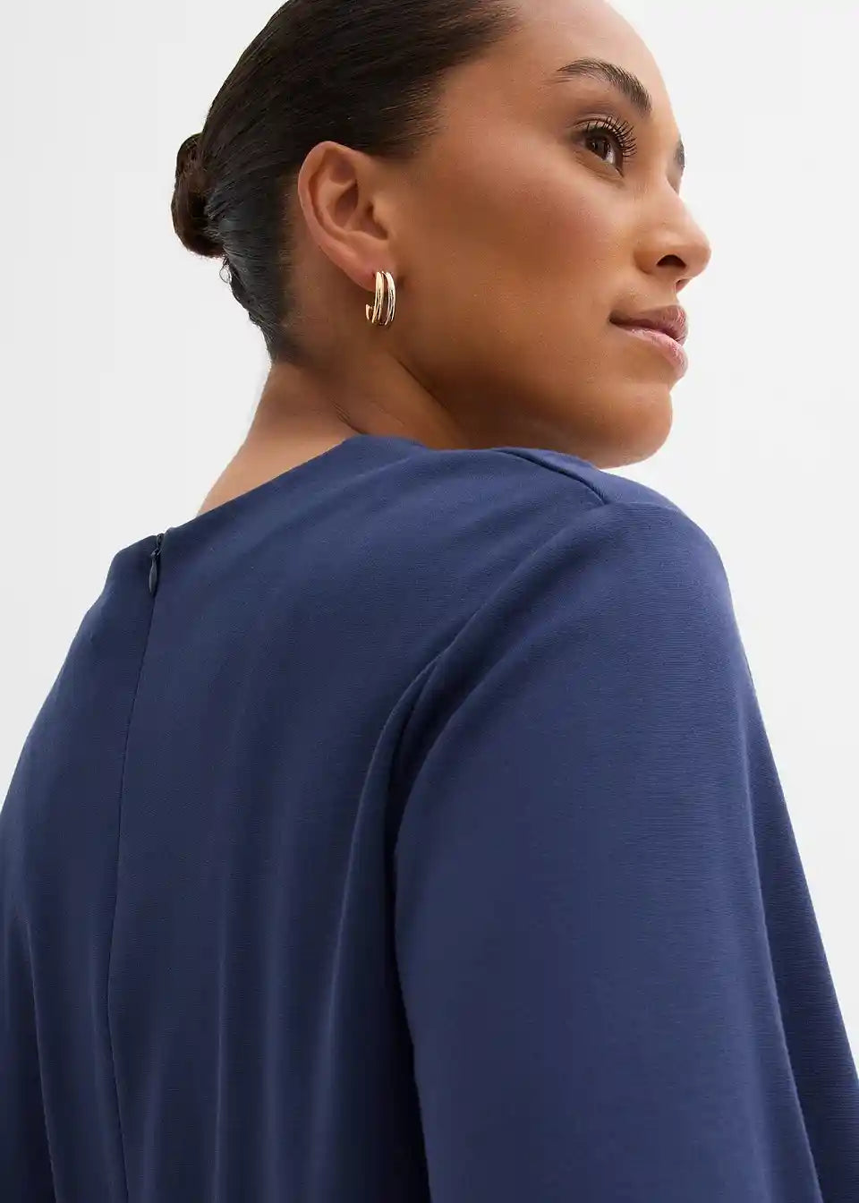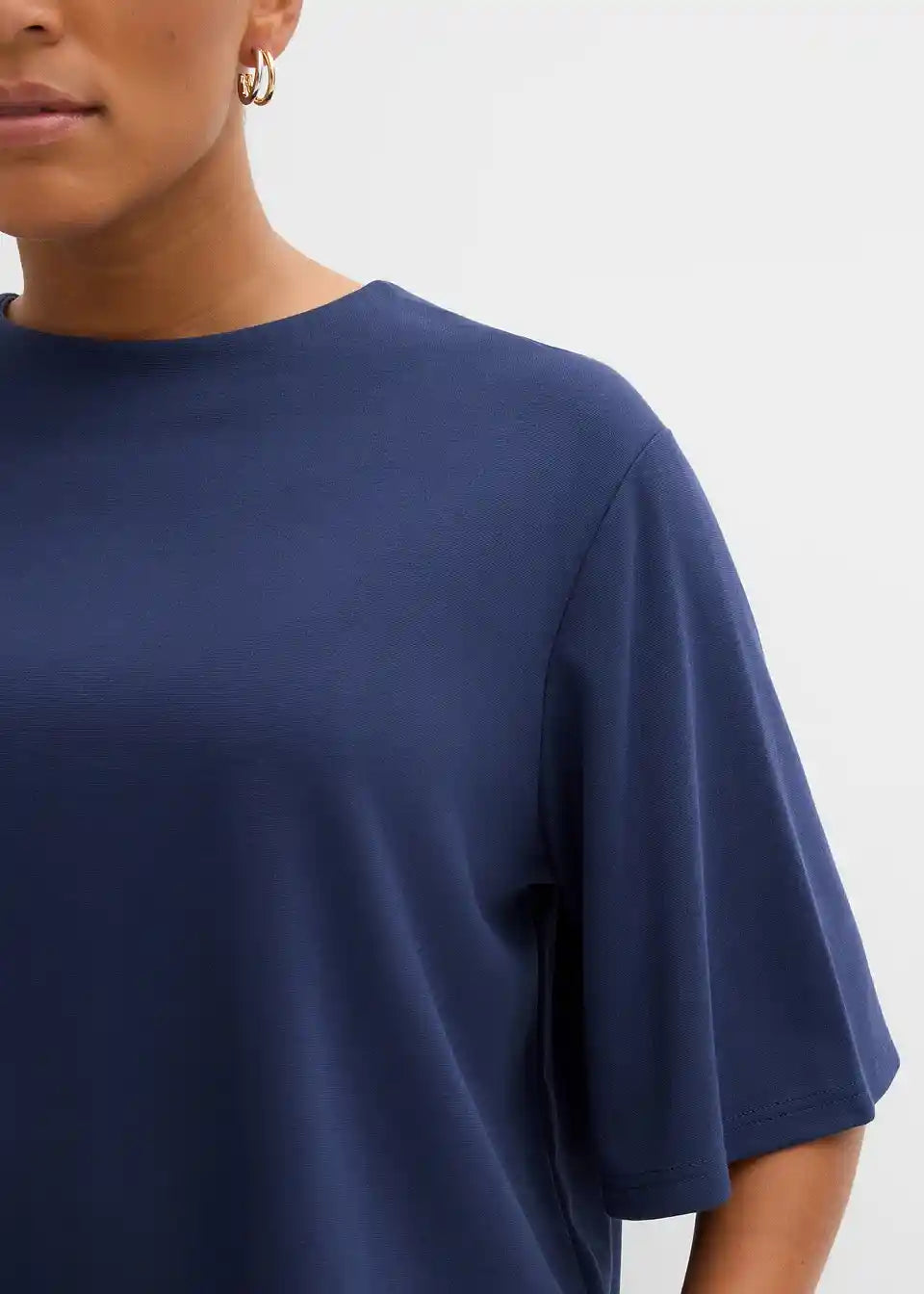 Krajša ohlapna majica s podaljšanimi kratkimi rokavi ter zapenjanjem z zadrgo zadaj