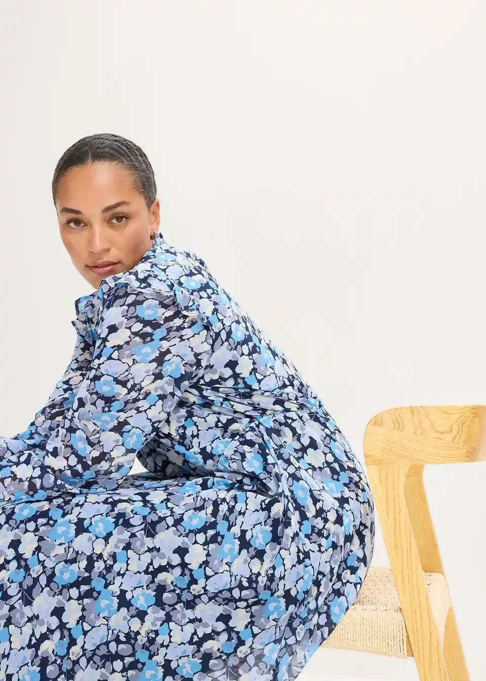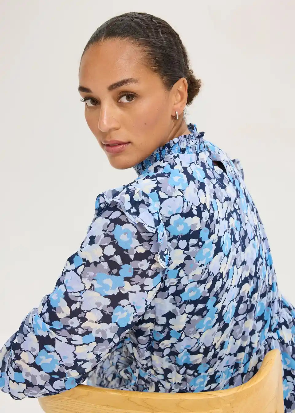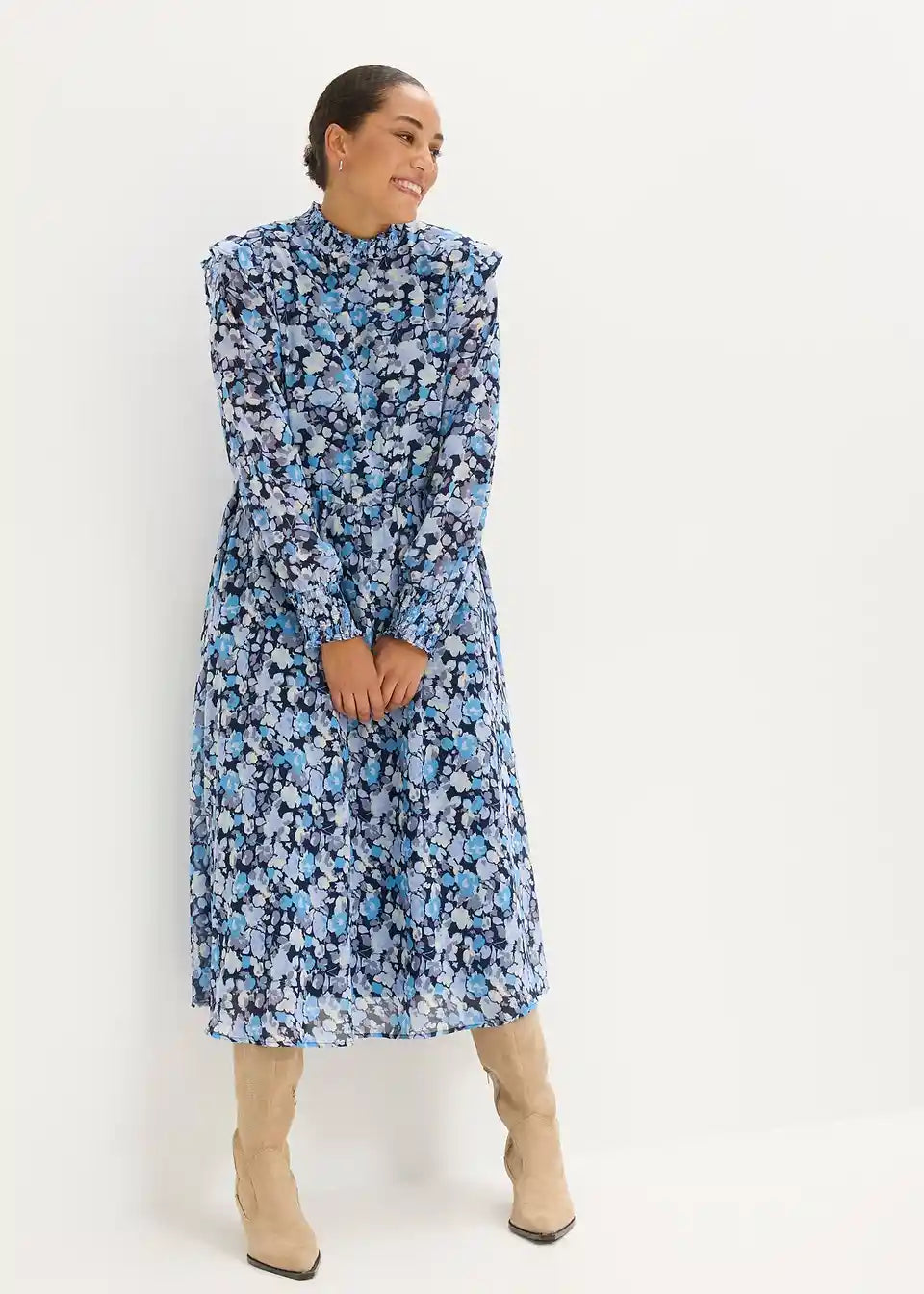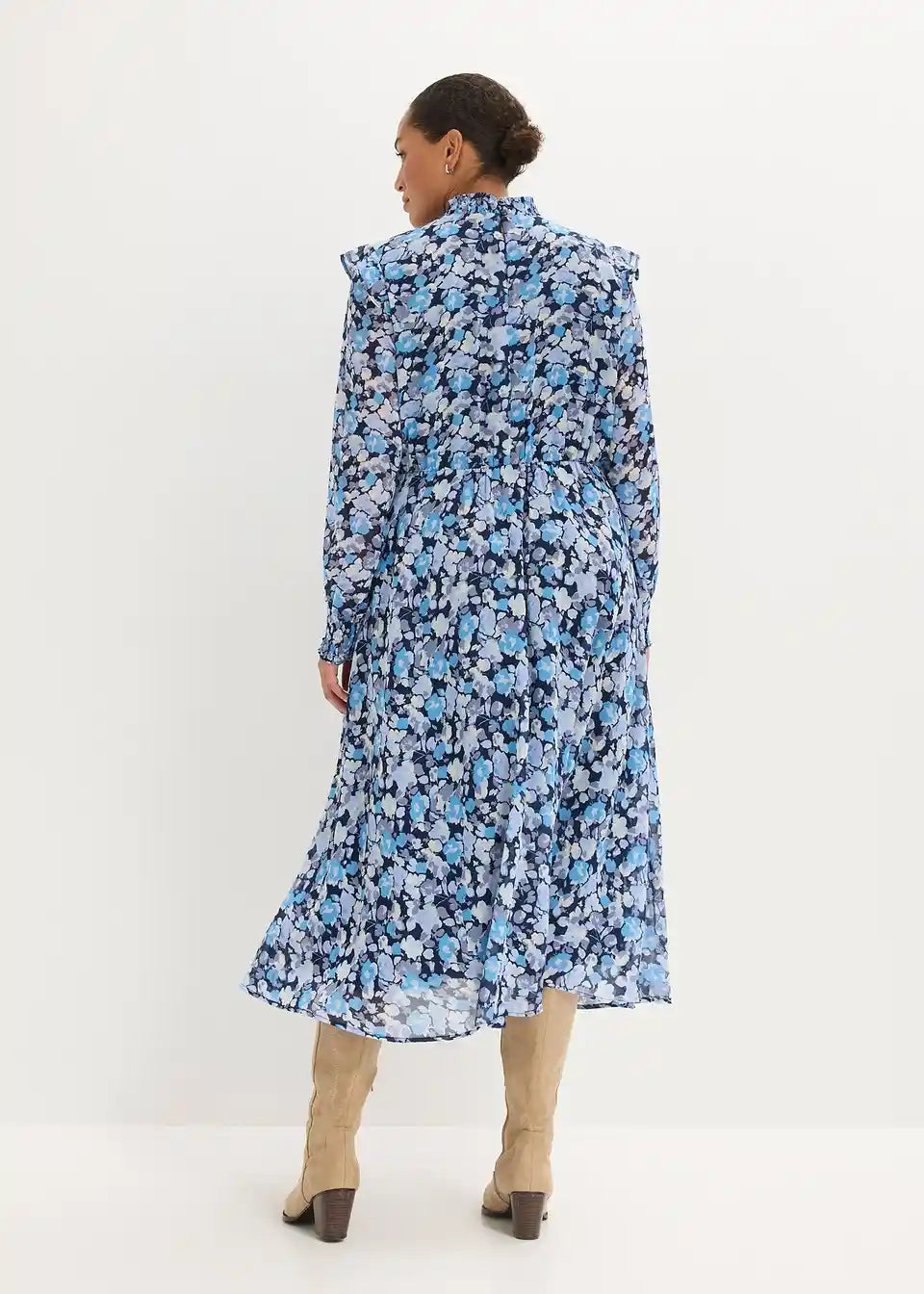 Obleka iz šifona s pokončnim ovratnikom