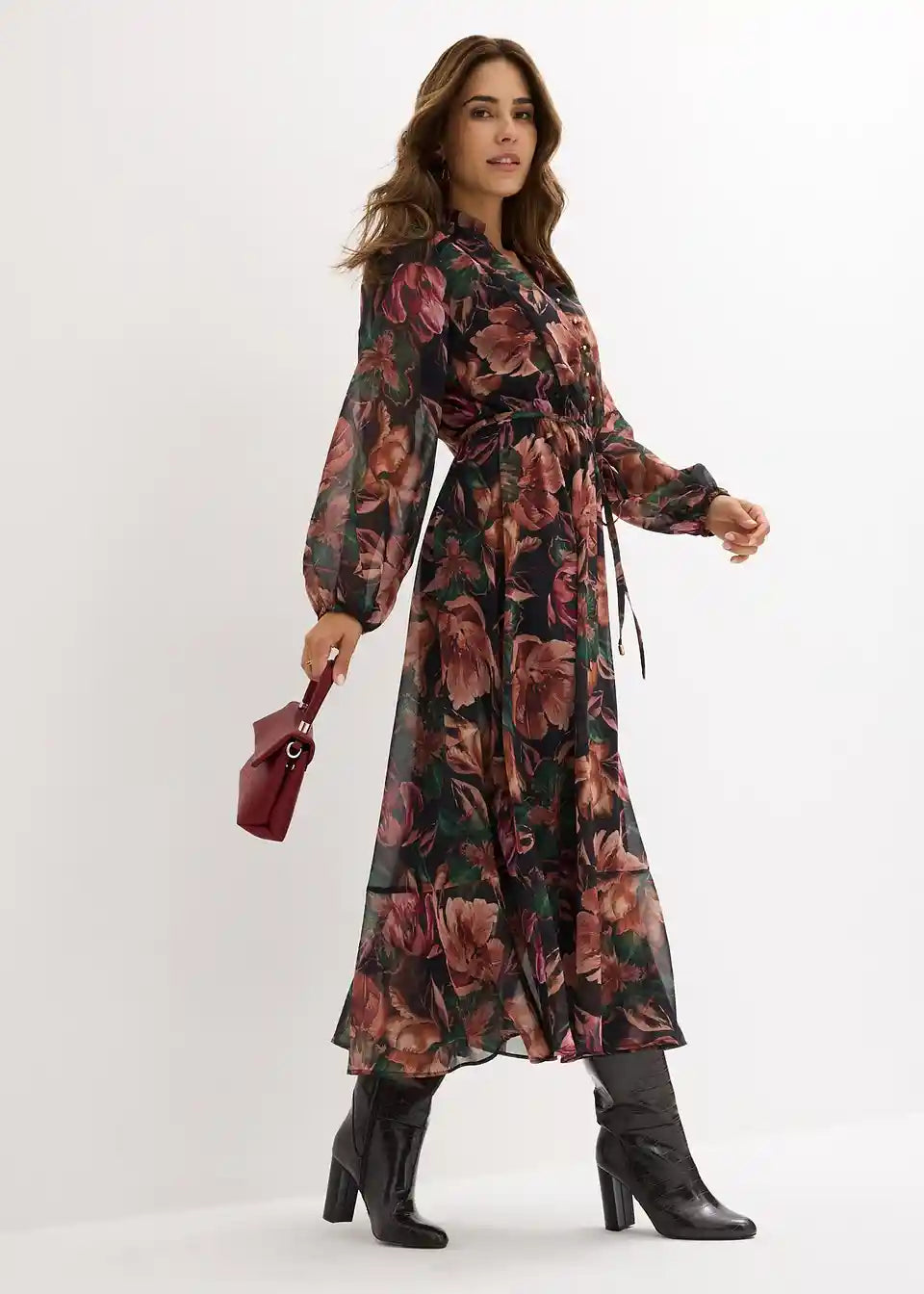 Elegantna obleka iz šifona s cvetličnim vzorcem