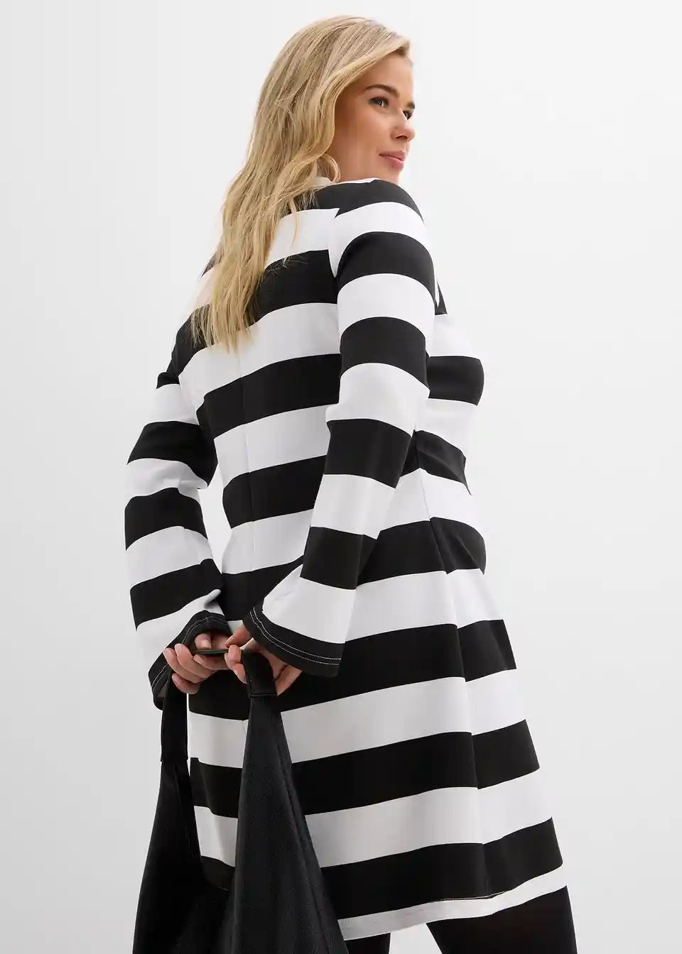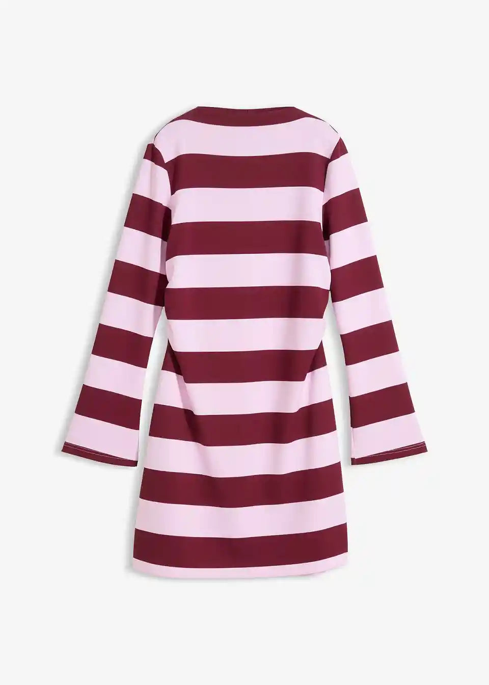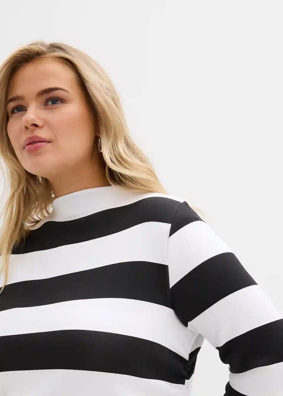 Moderna obleka iz jerseyja s pokončnim ovratnikom in stranskimi naborki