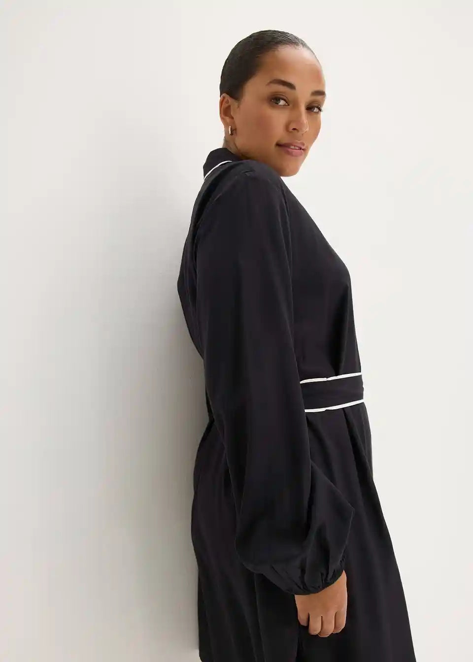 Obleka z zakrito letvijo za zapenjanje z gumbi in paspulami