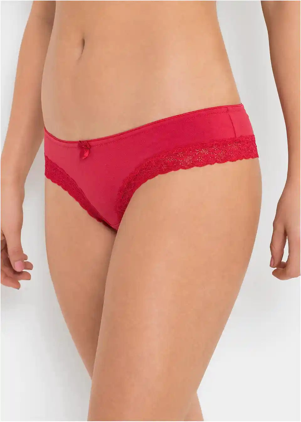 Brazil hlačke v štirikosovnem paketu združujejo videz hlačk in tangic. Model se ponaša s koži prijazno bombažno kakovostjo, prav tako je mednožni vstavek izdelan iz bombaža. Odličen vizualni poudarek je široka čipkasta obroba vzdolž izrezov za noge. Majhna pentlja na sredini elastičnega pasu doda temu udobnemu brazil modelu iz kolekcije bpc zaključni pridih.