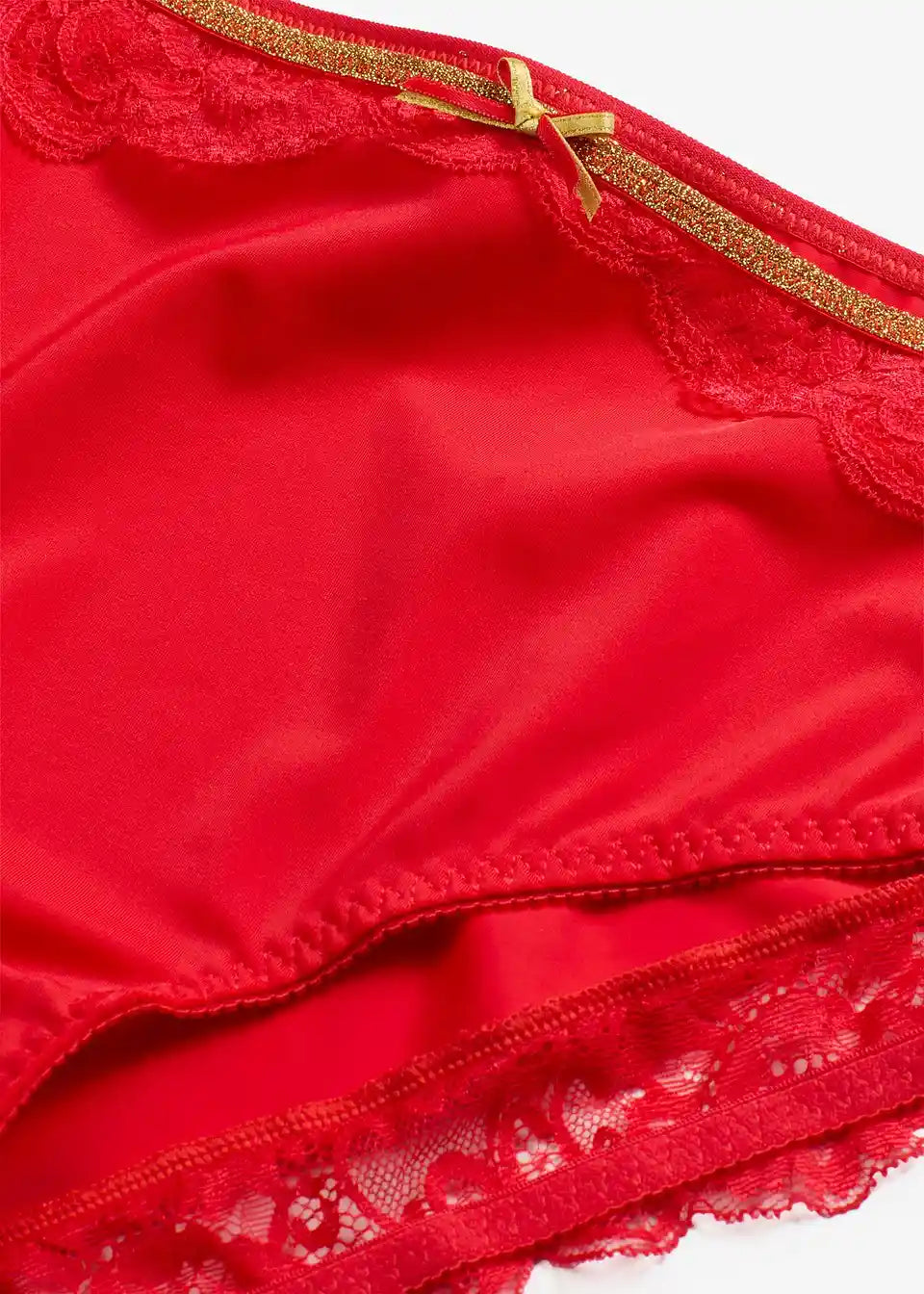 zgornji material: 80% poliamid (recikliran), 20% elastan, podloga: 90% poliamid, 10% elastan, čipka: 50% poliamid (recikliran), 37% poliamid, 13% elastan