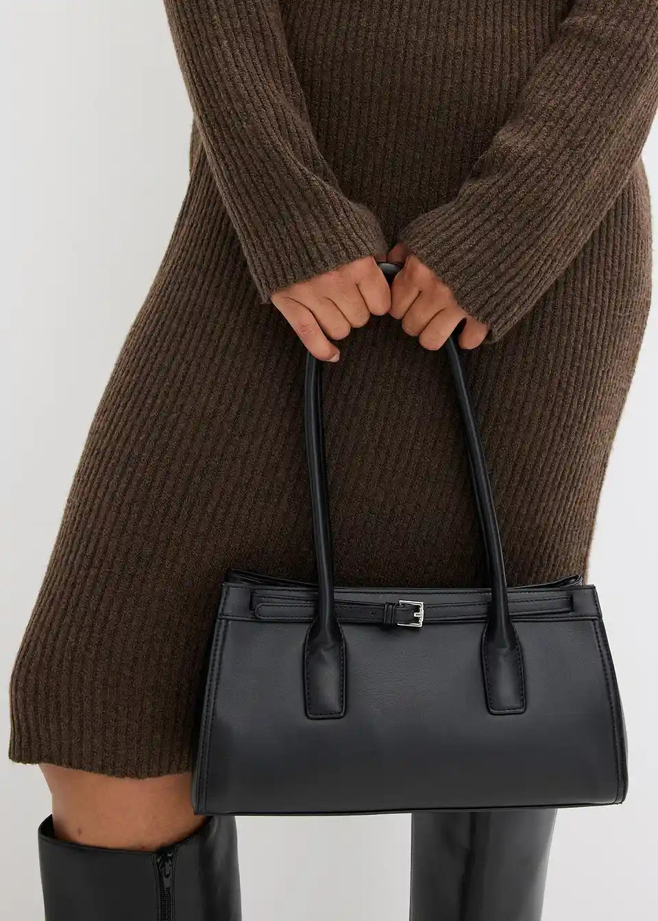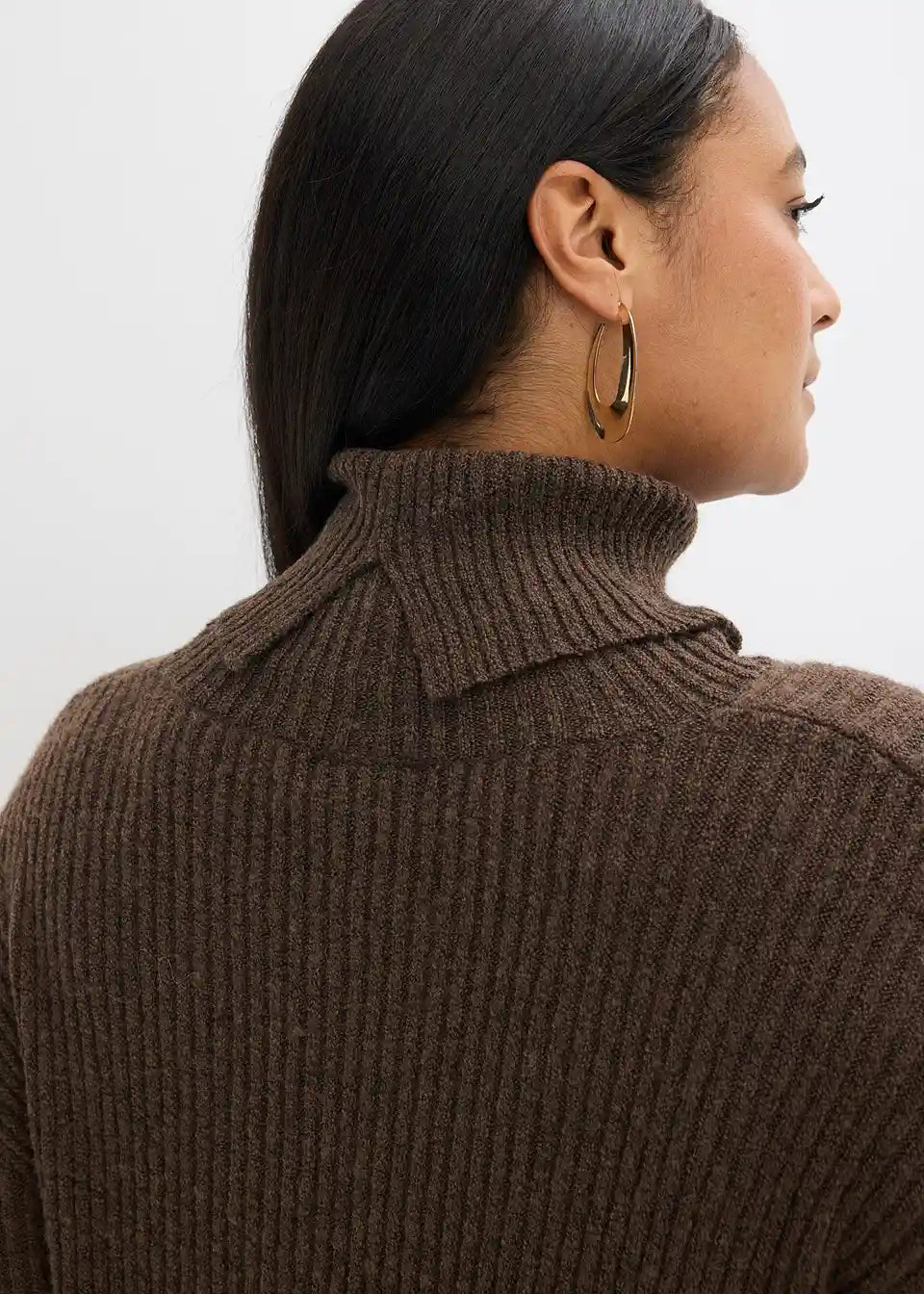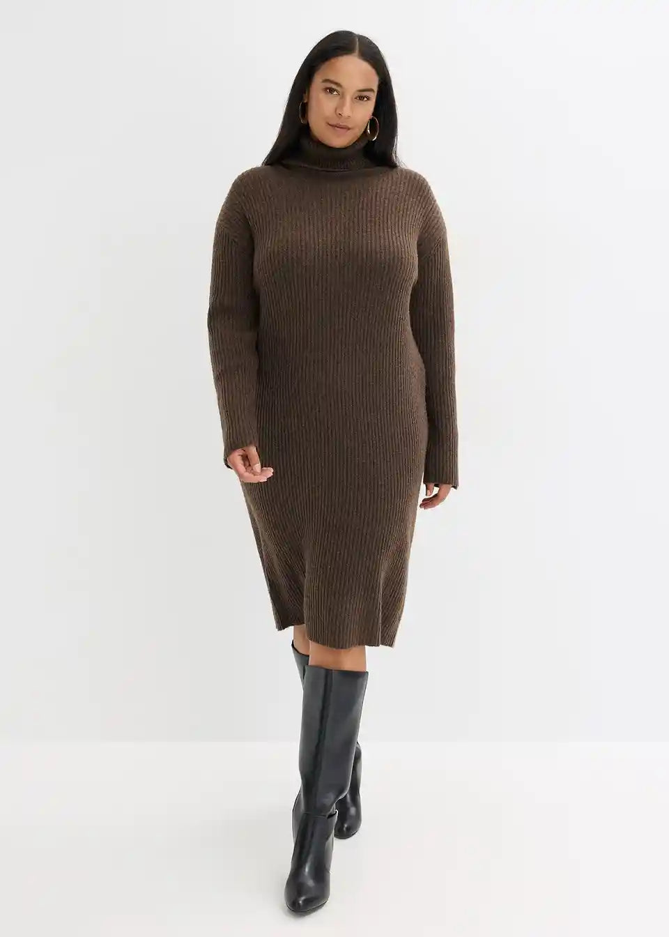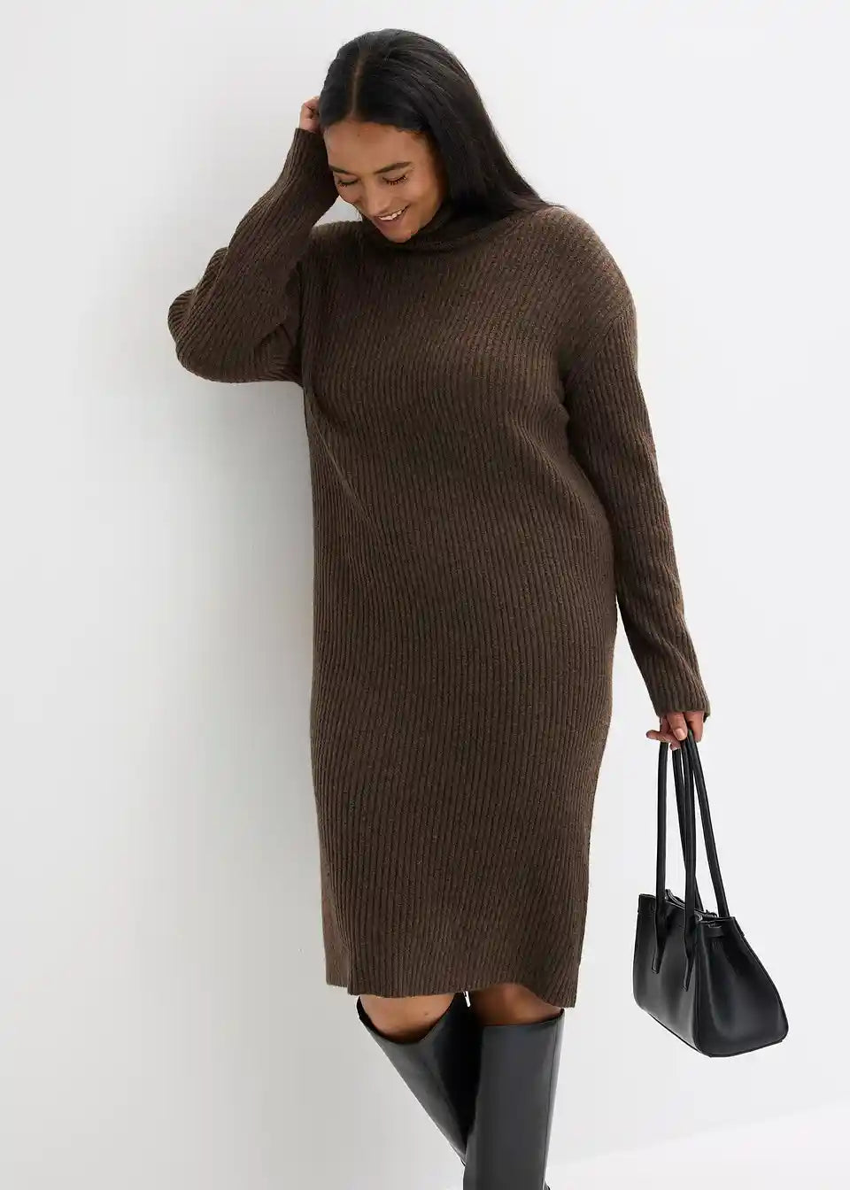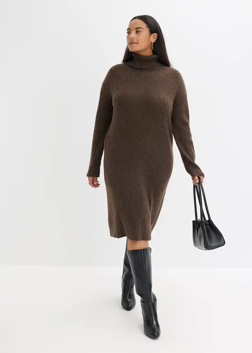 Rebrasto pletena obleka s toplim pokončnim ovratnikom