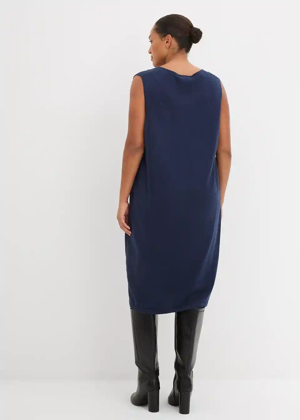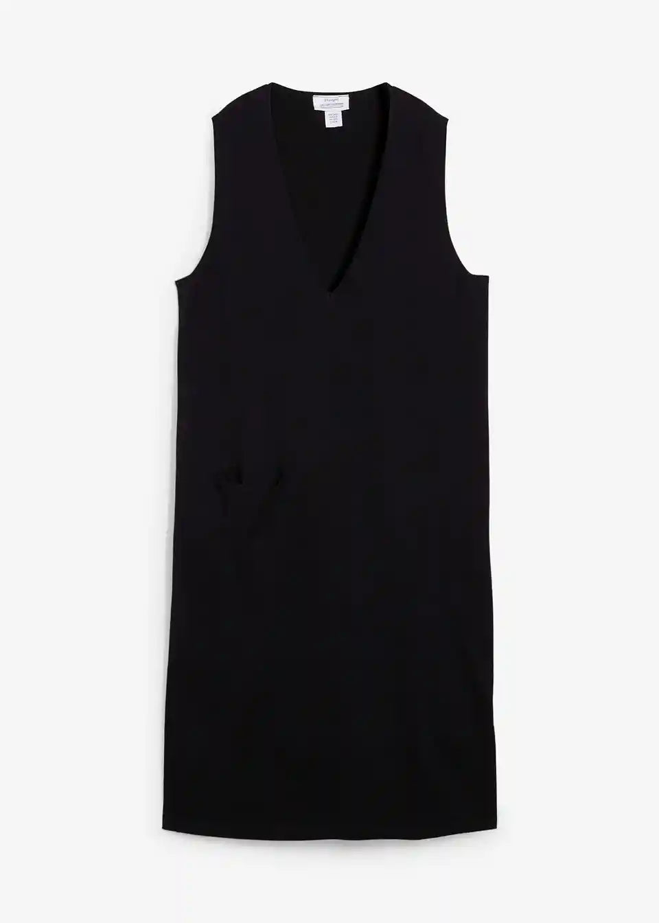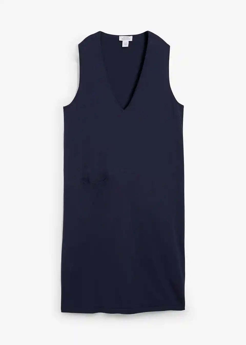 Dolga pletena obleka brez rokavov z V-izrezom iz čistega bombaža