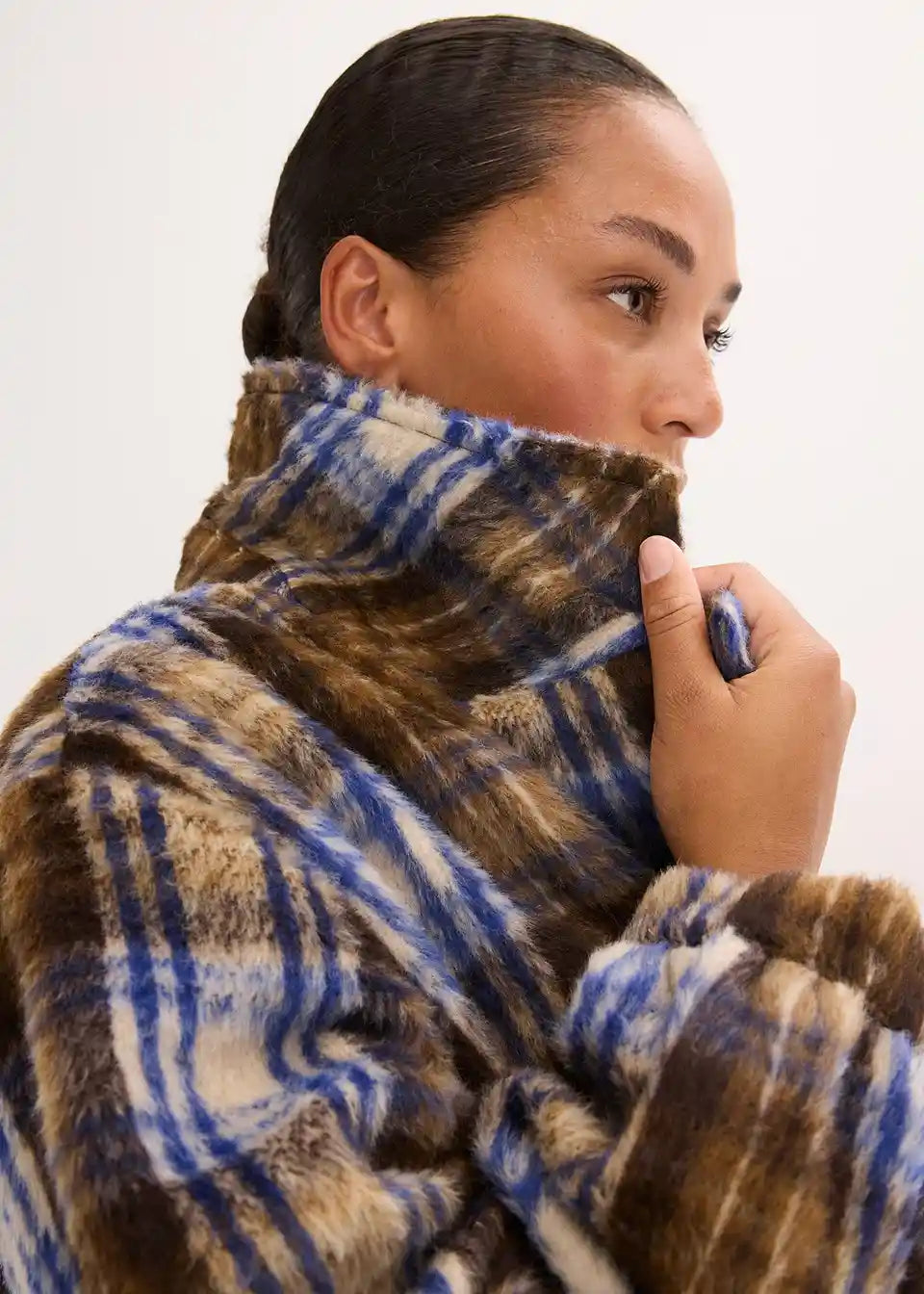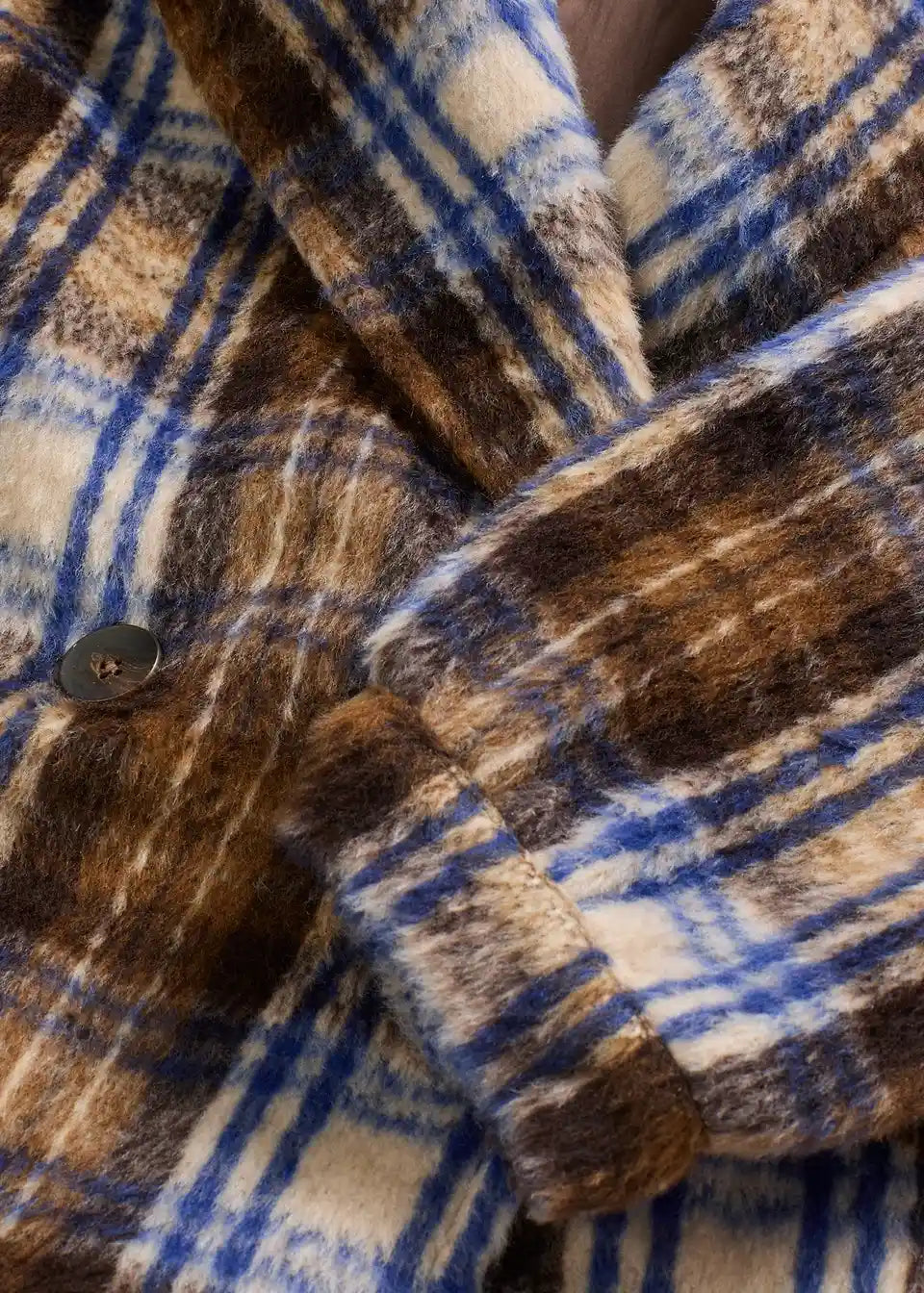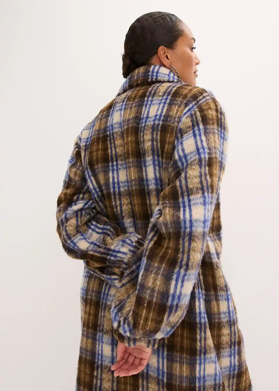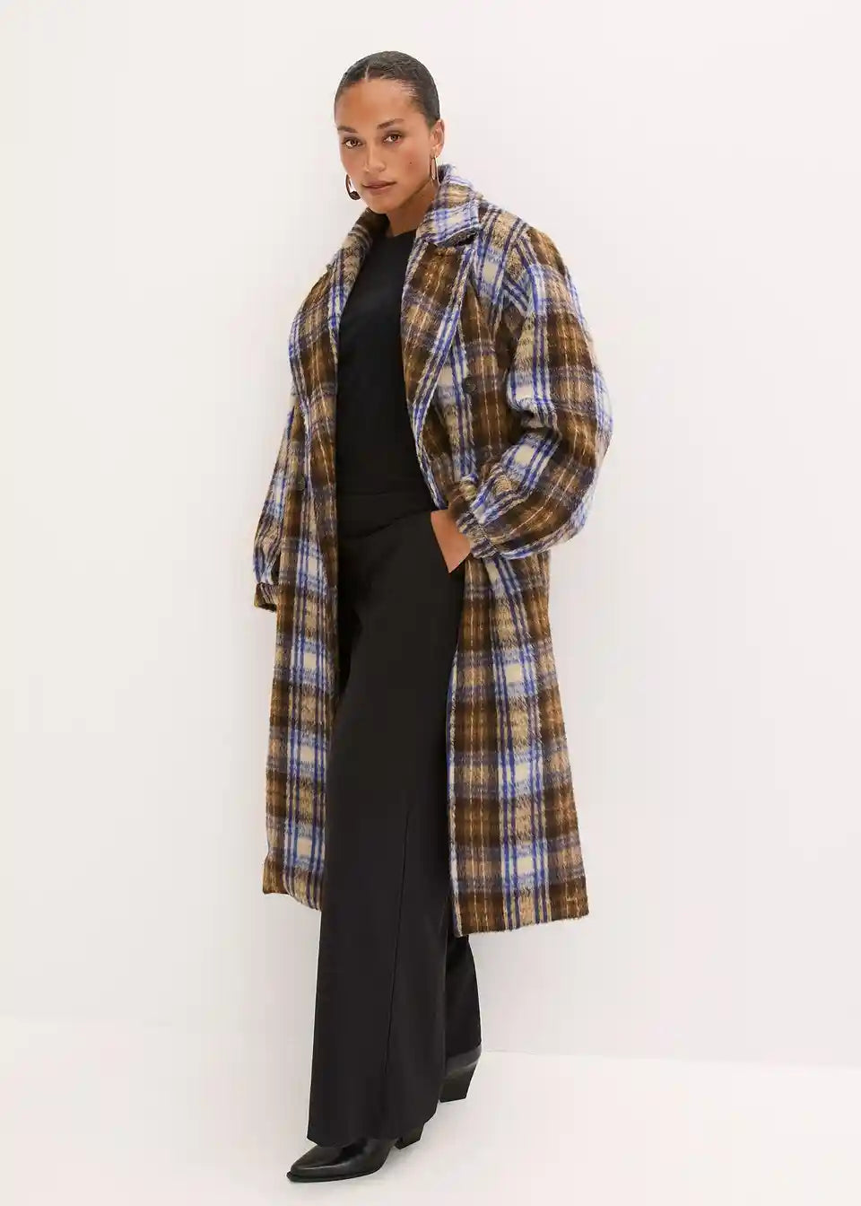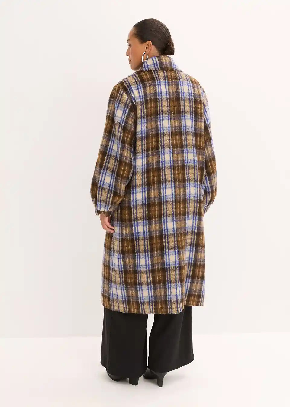 Moden plašč v volnenem videzu z balonastimi rokavi in dvorednim zapenjanjem z gumbi spredaj