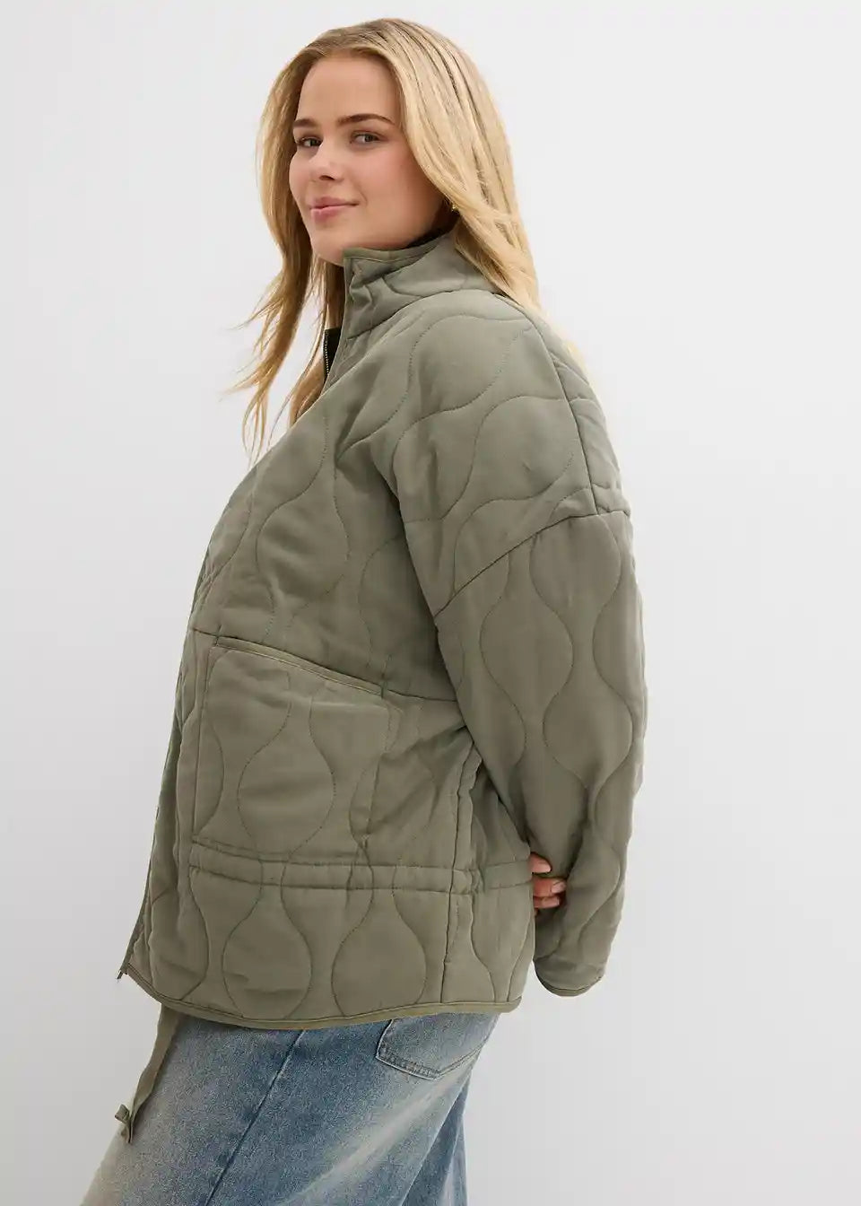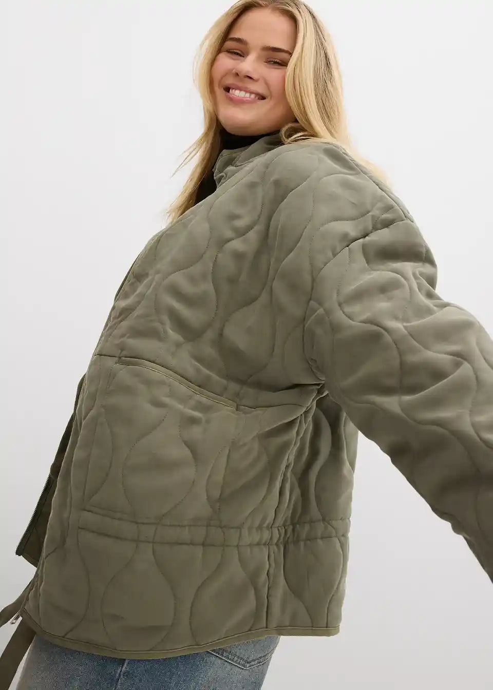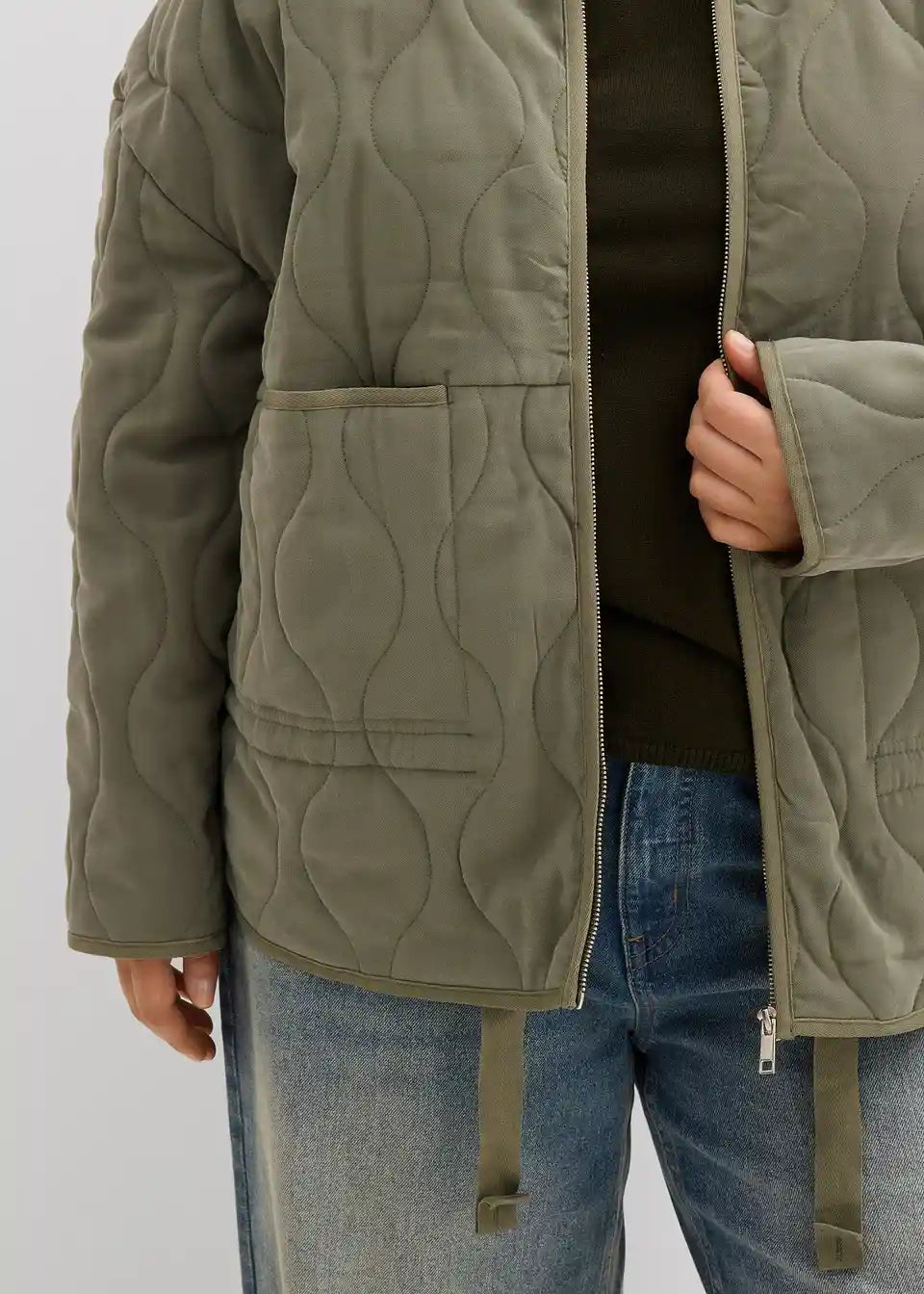 Ohlapna prešita jakna z vatiranjem in našitimi žepi