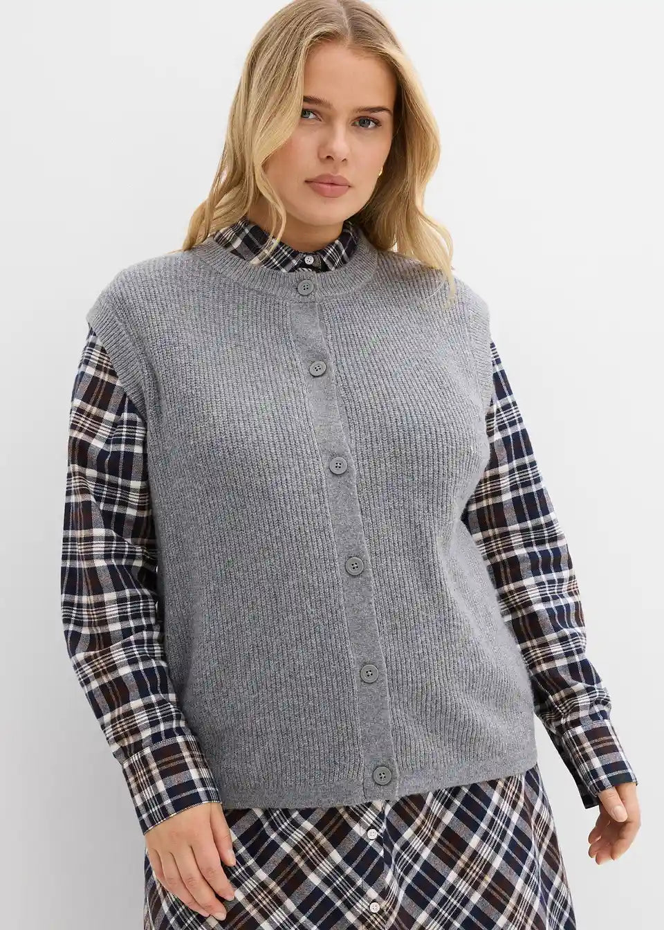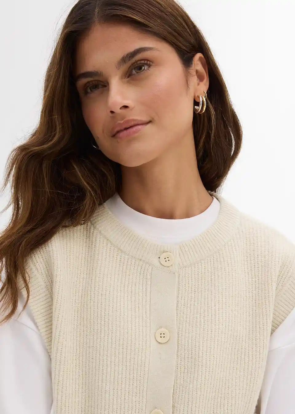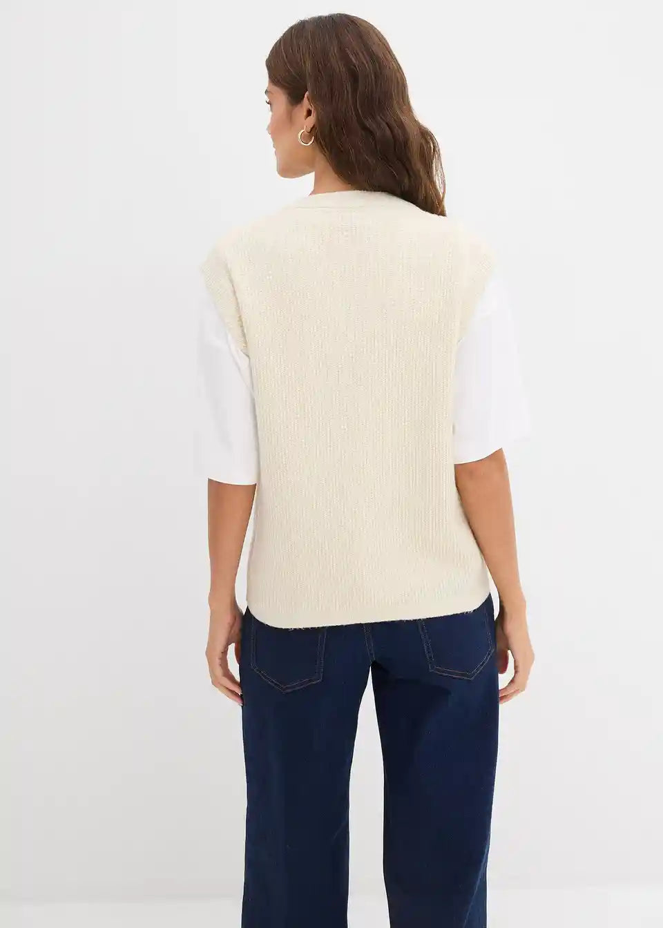 Udoben pleten brezrokavnik z detajli gumbov