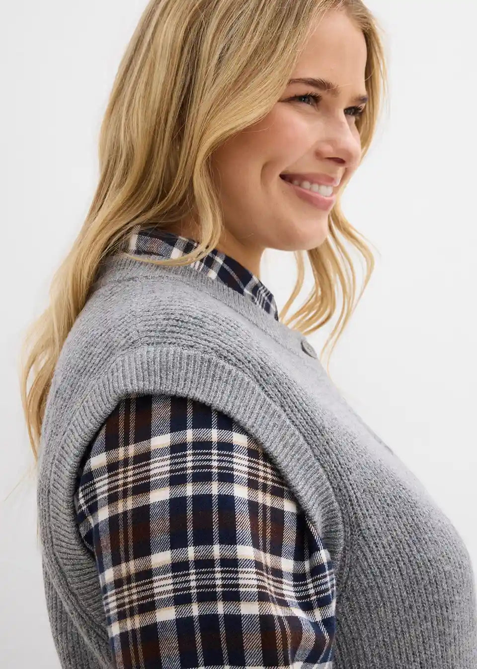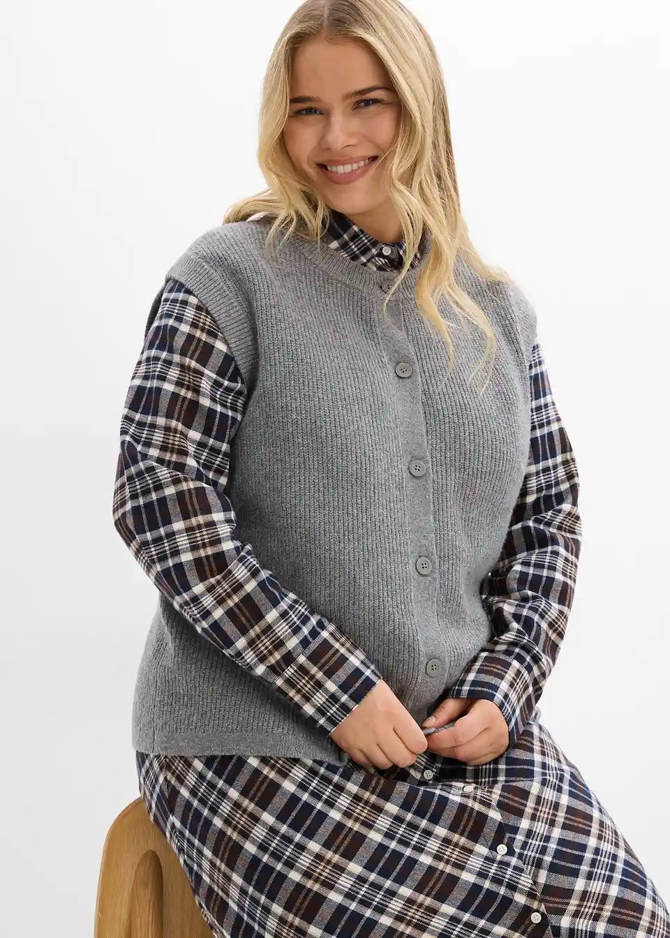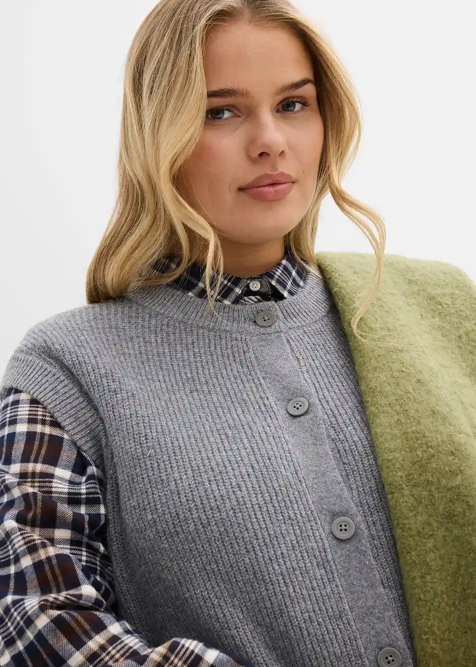 Udoben pleten brezrokavnik z detajli gumbov