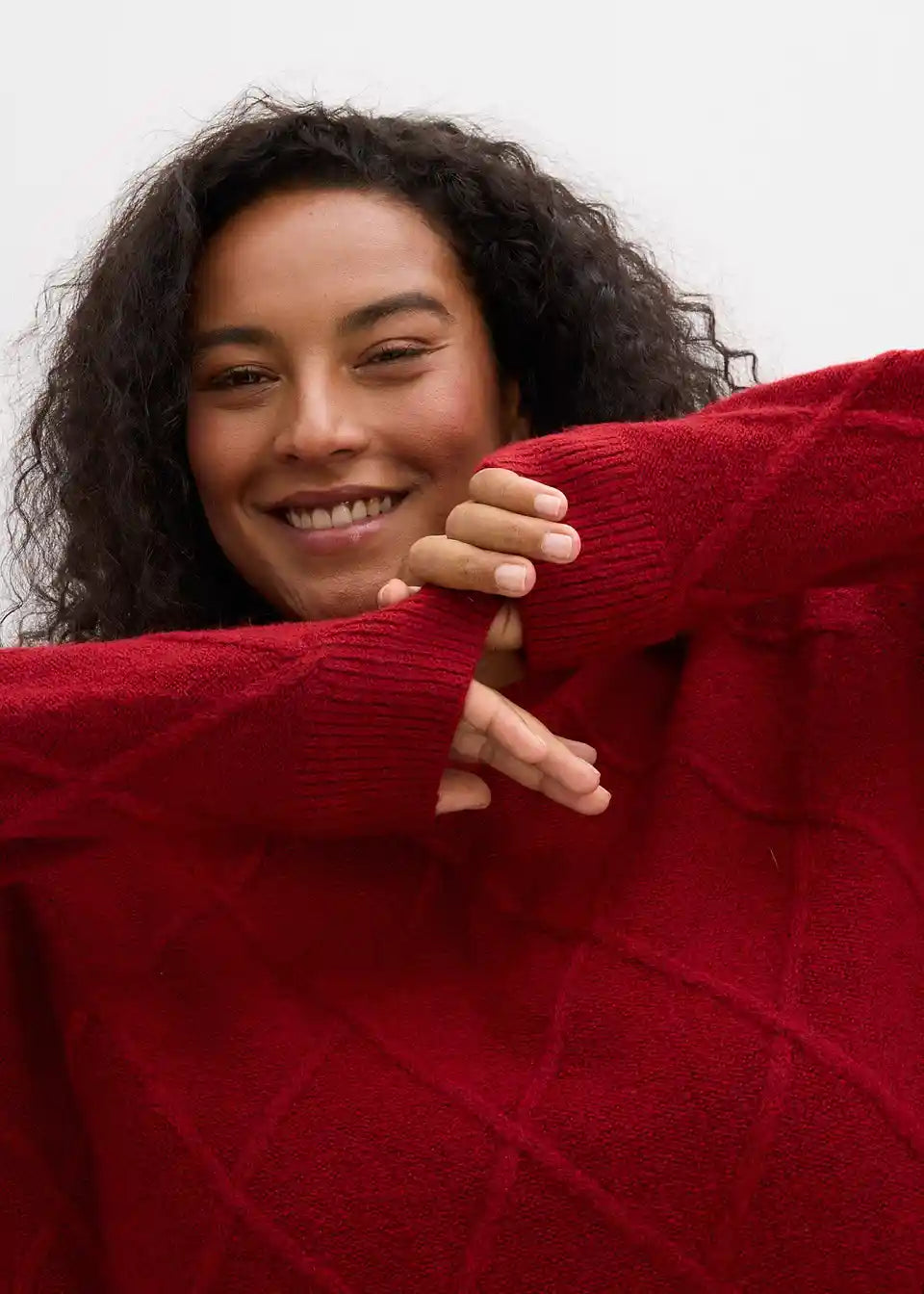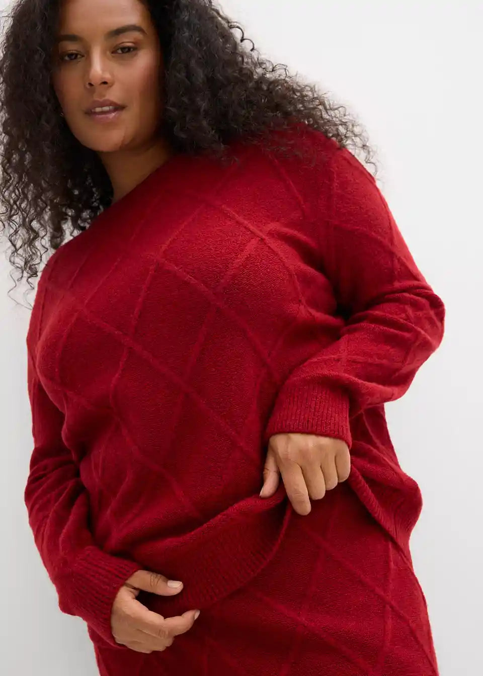 Ohlapen pulover iz kitaste pletenine