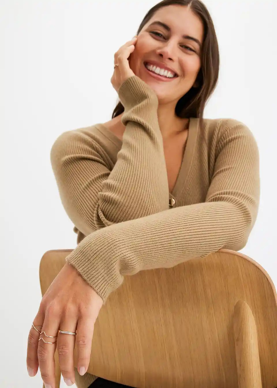 Eleganten rebrasti pulover z igrivimi gumbi