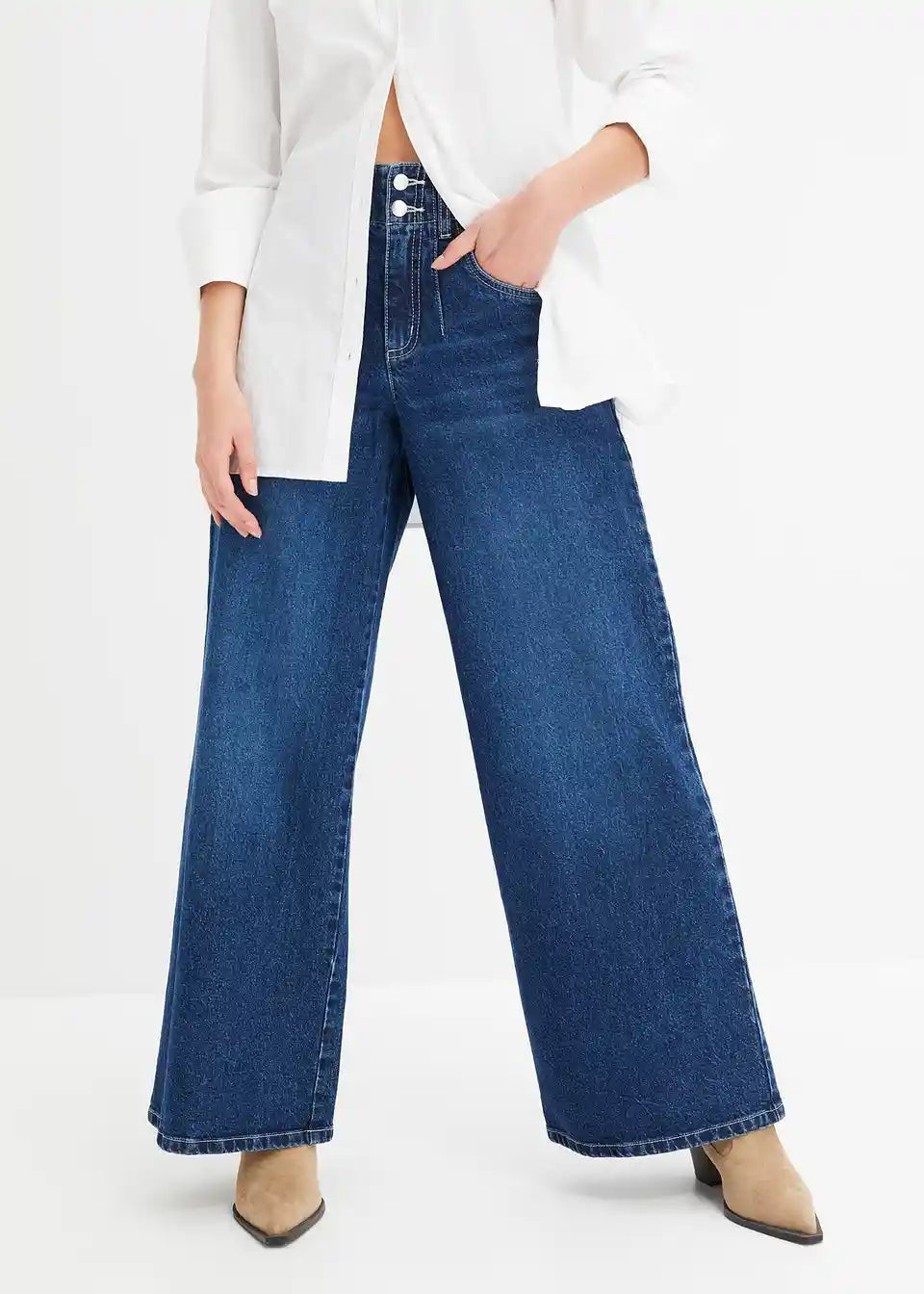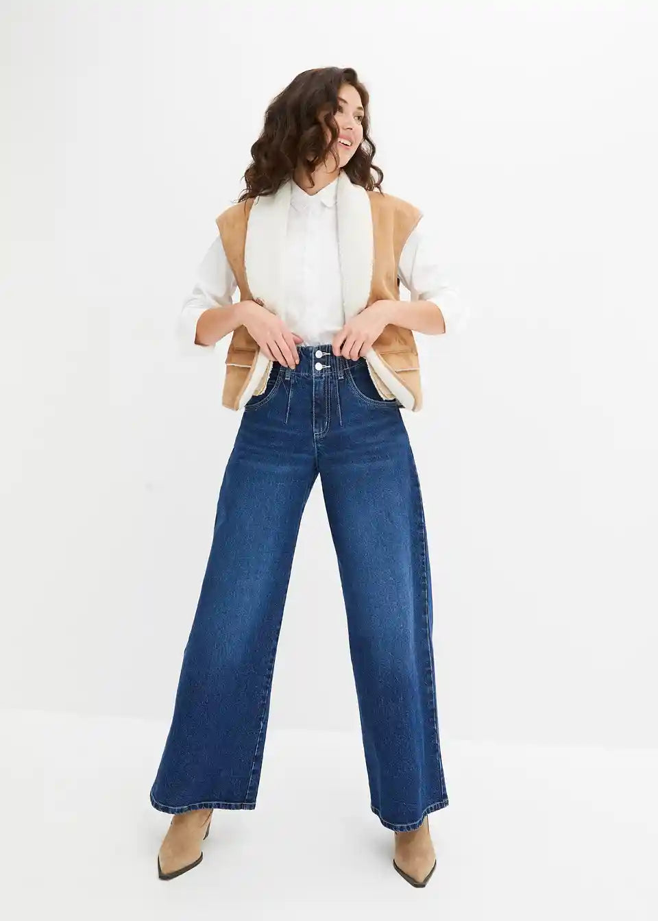 Kavbojke s širokimi hlačnicami in visokim pasom