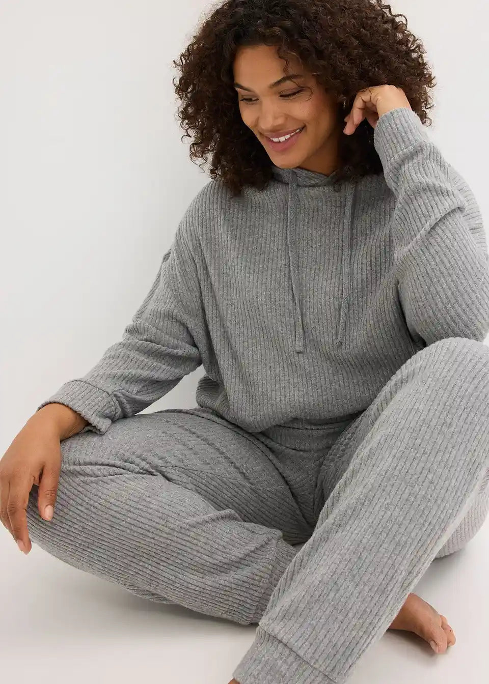 Široko krojeno udobno oblačilo za doma iz mehkega rebrastega materiala