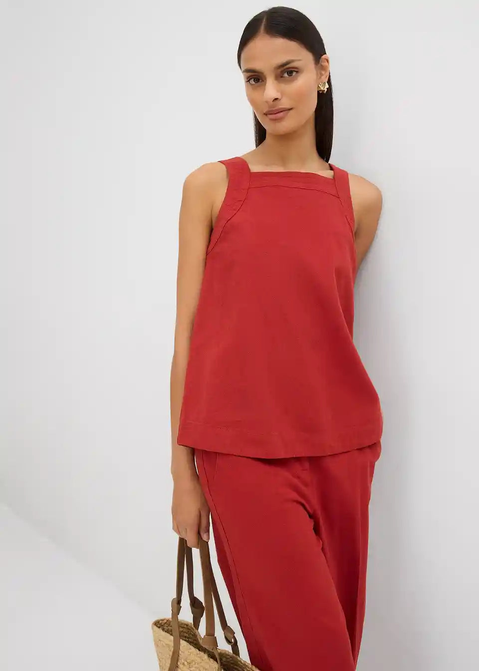 Top z razširjenim spodnjim robom s pravokotnim izrezom in detajli vezalk zadaj