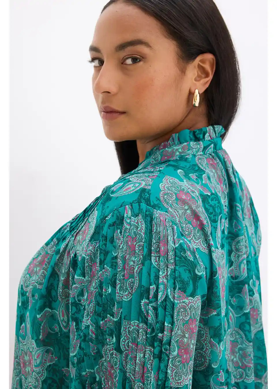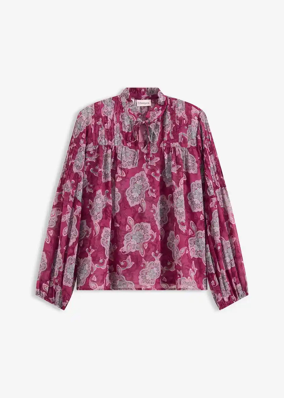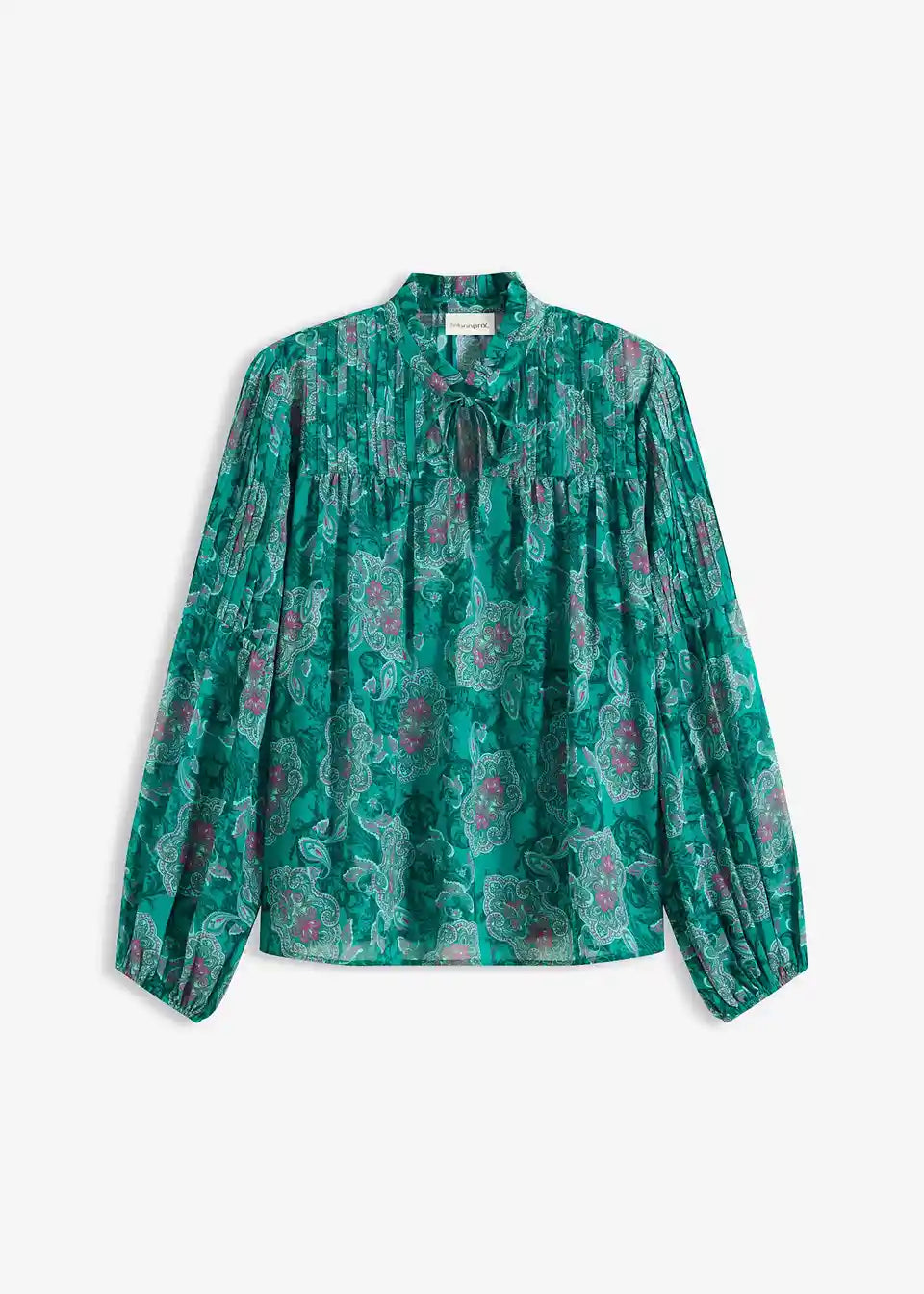 Elegantna satenasta tunika z ozkimi prešitimi gubami