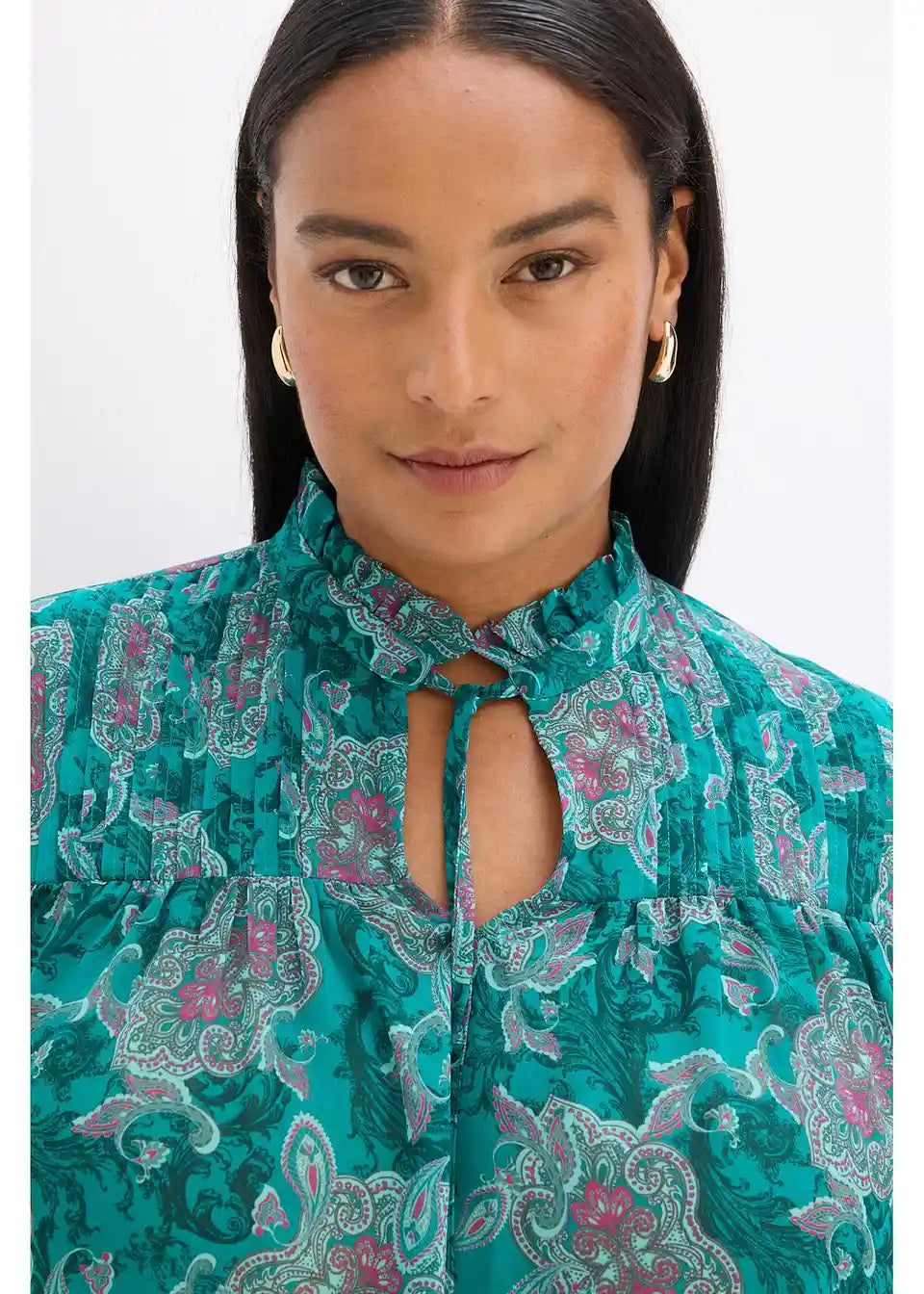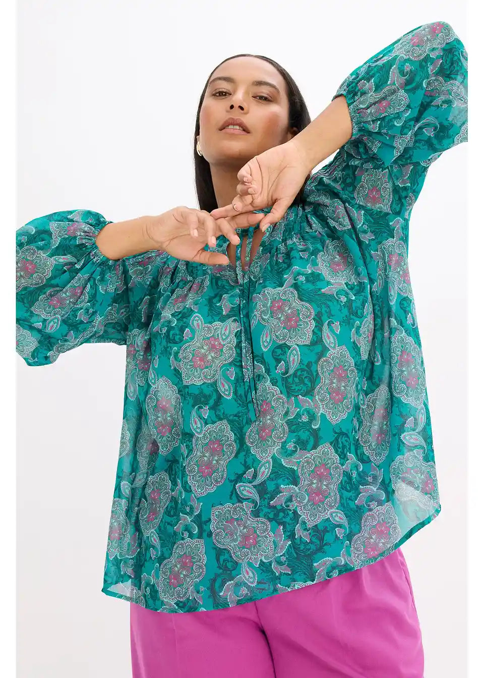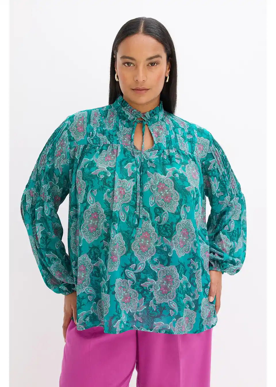 Elegantna satenasta tunika z ozkimi prešitimi gubami