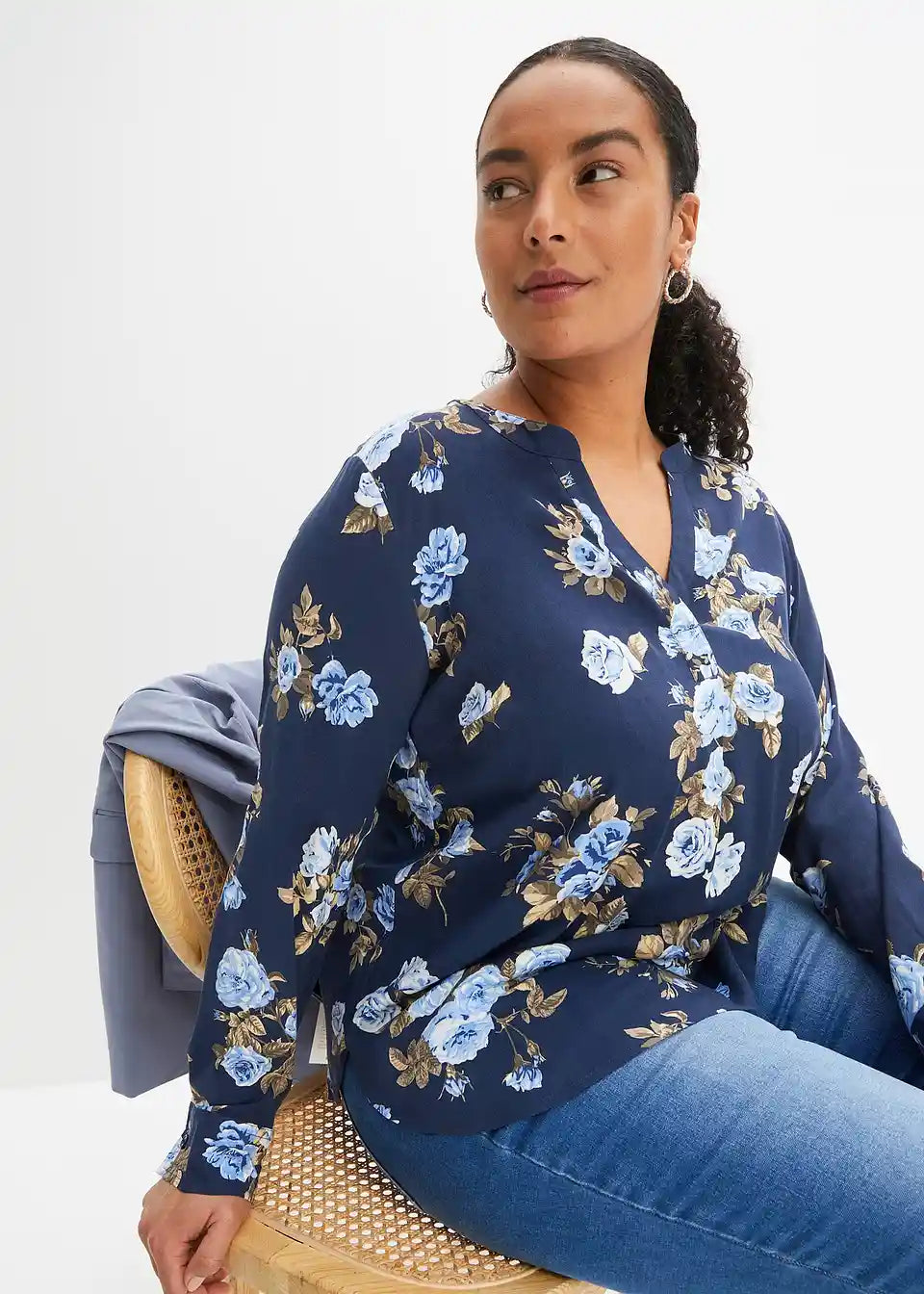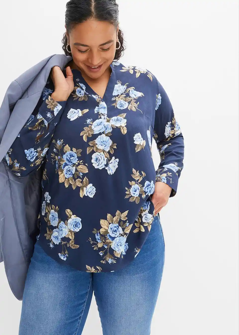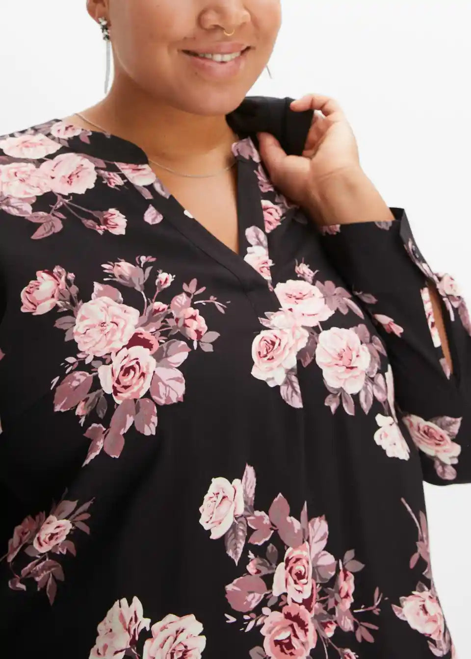 Moderna bluza s stranskimi razporki in zaobljenim robom