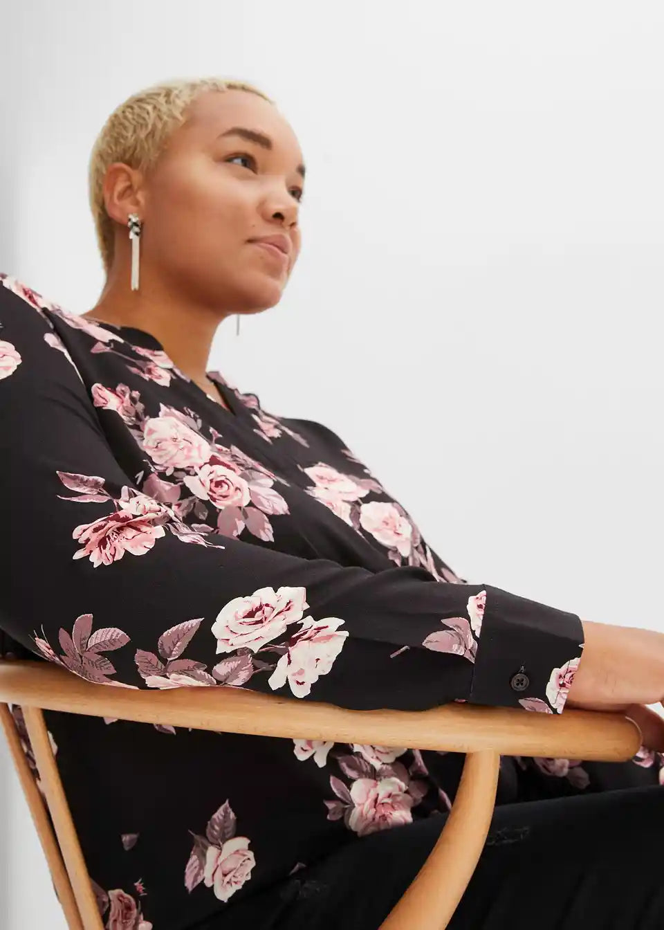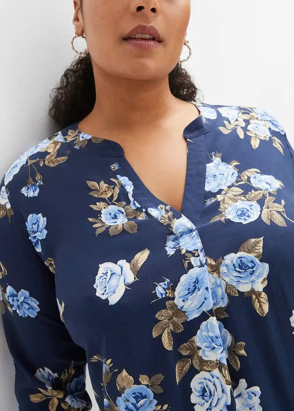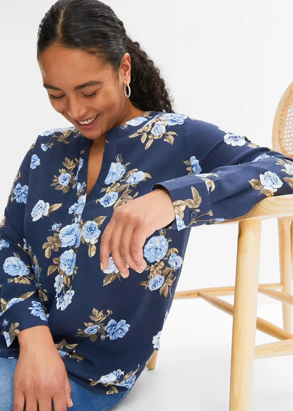 Moderna bluza s stranskimi razporki in zaobljenim robom
