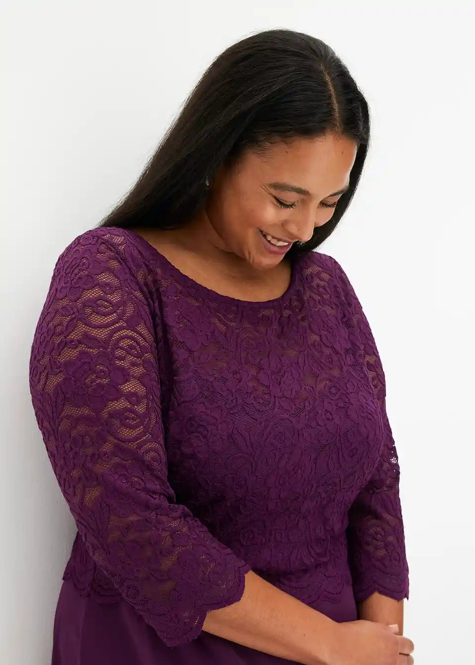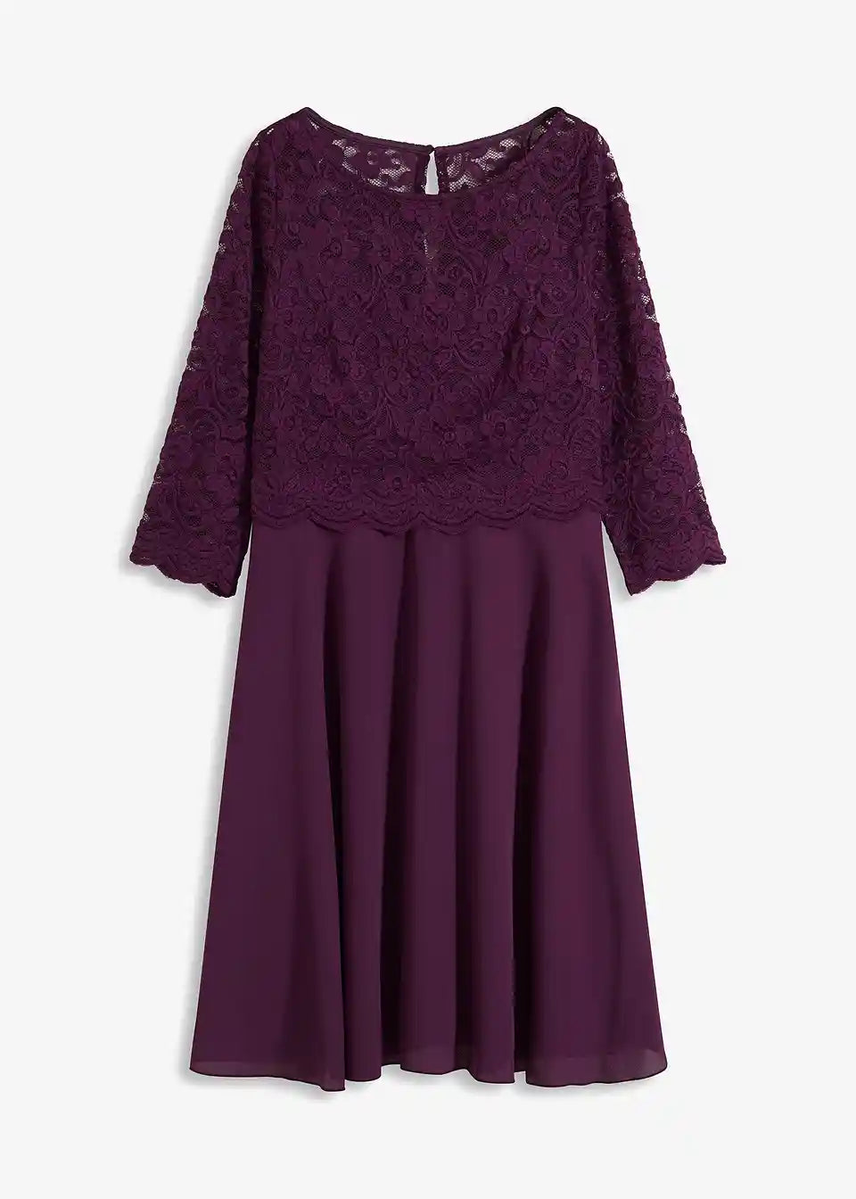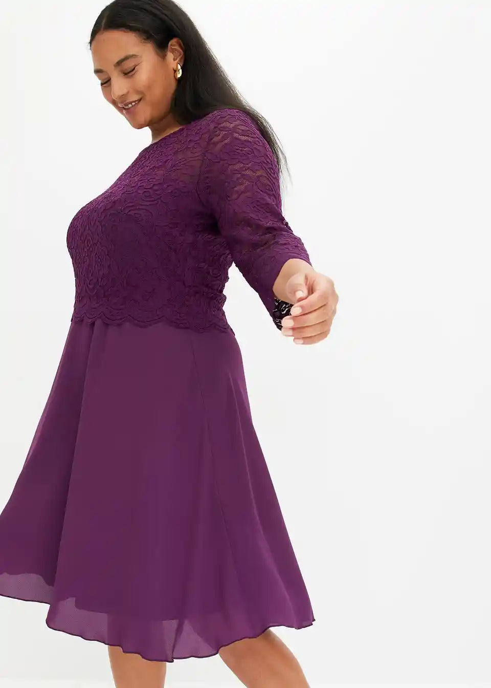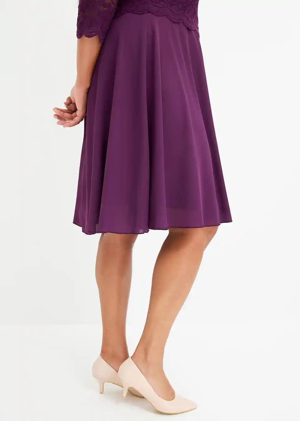 Mini obleka s krilom iz šifona in zgornjim delom iz čipke z valovitim školjkastim robom