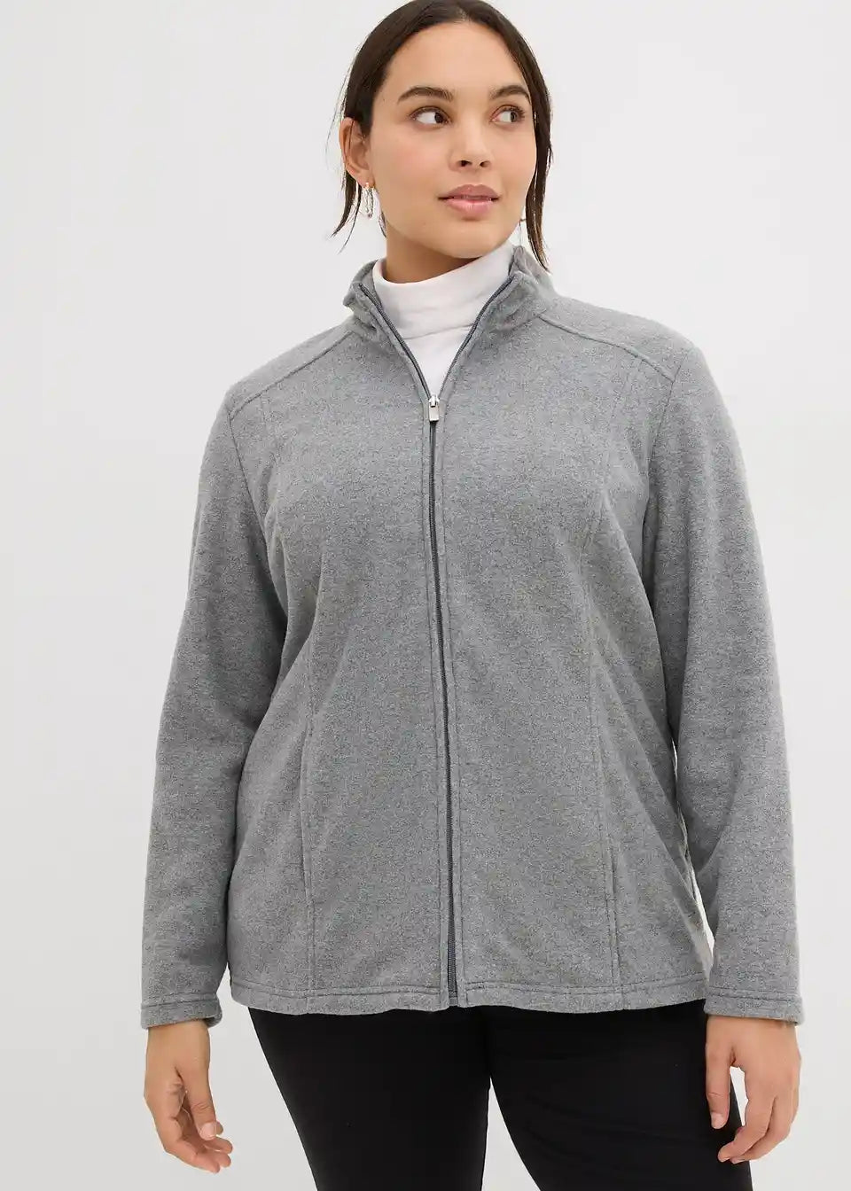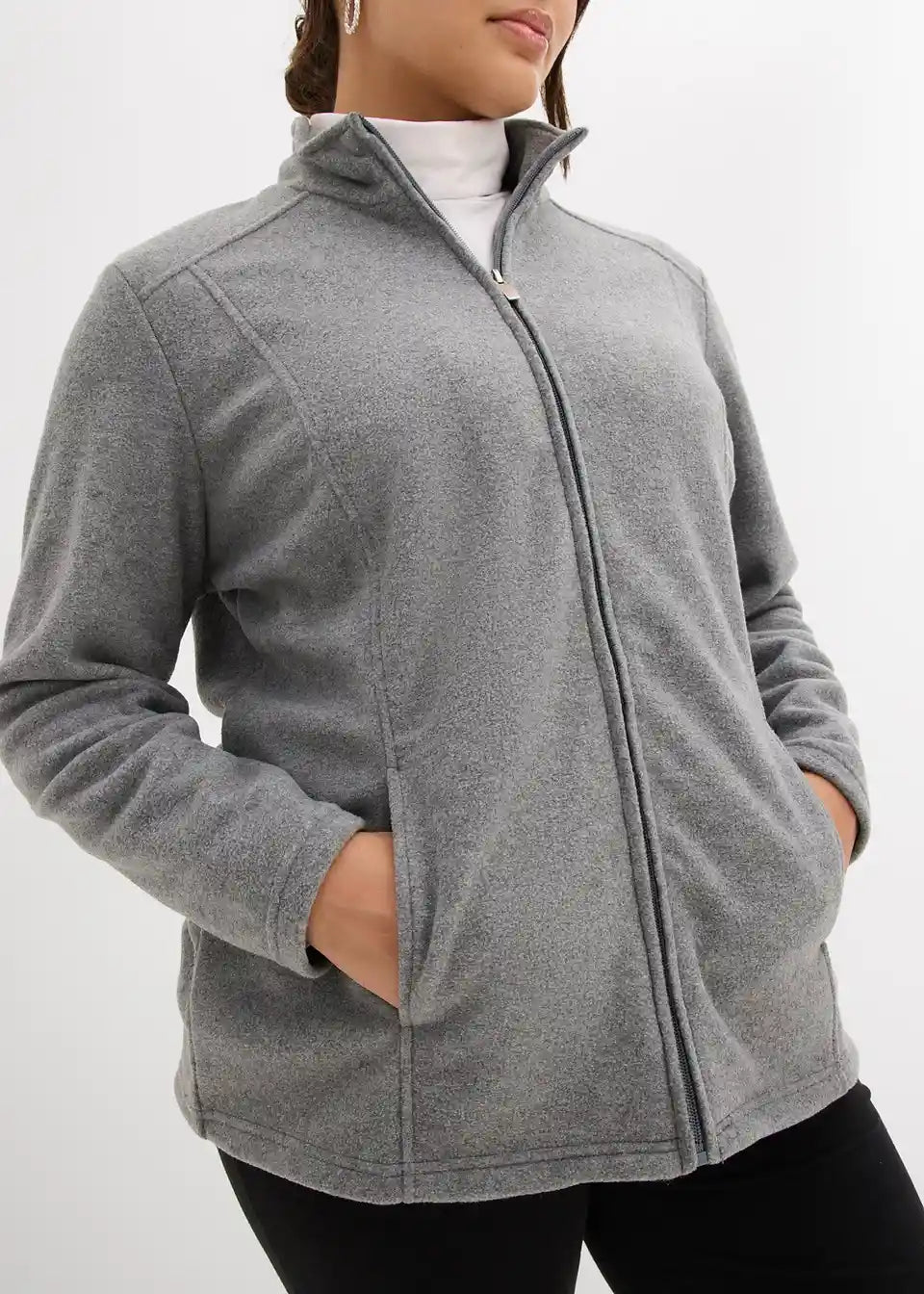 Klasična jakna iz mehkega pliša s pokončnim ovratnikom in všitimi žepi
