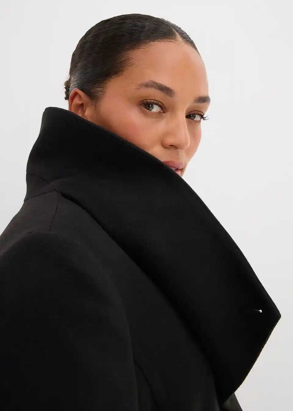 Plašč z ovratnikom, ki se zaviha visoko navzgor