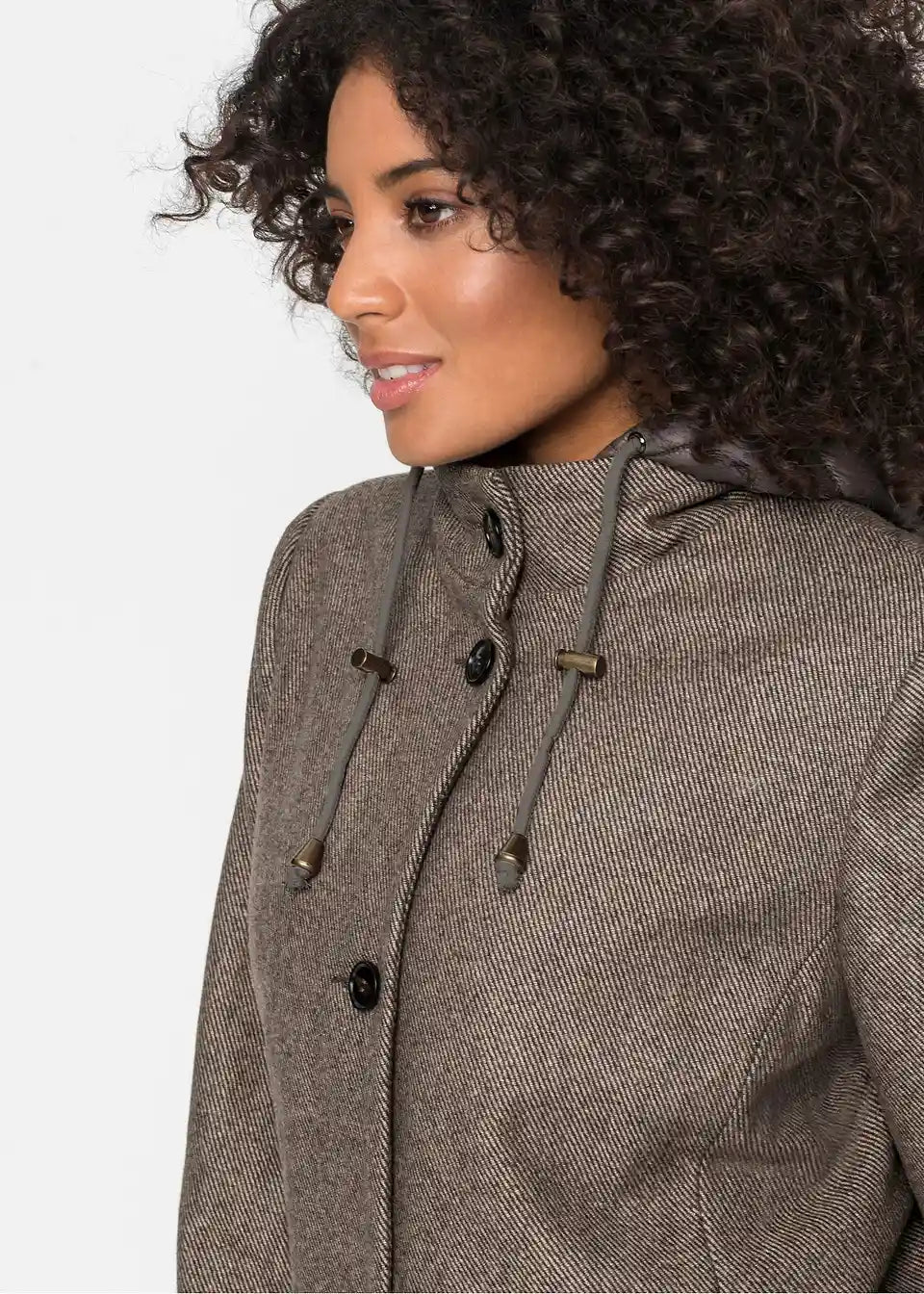 Zimski kratek plašč v volnenem dvoplastnem videzu