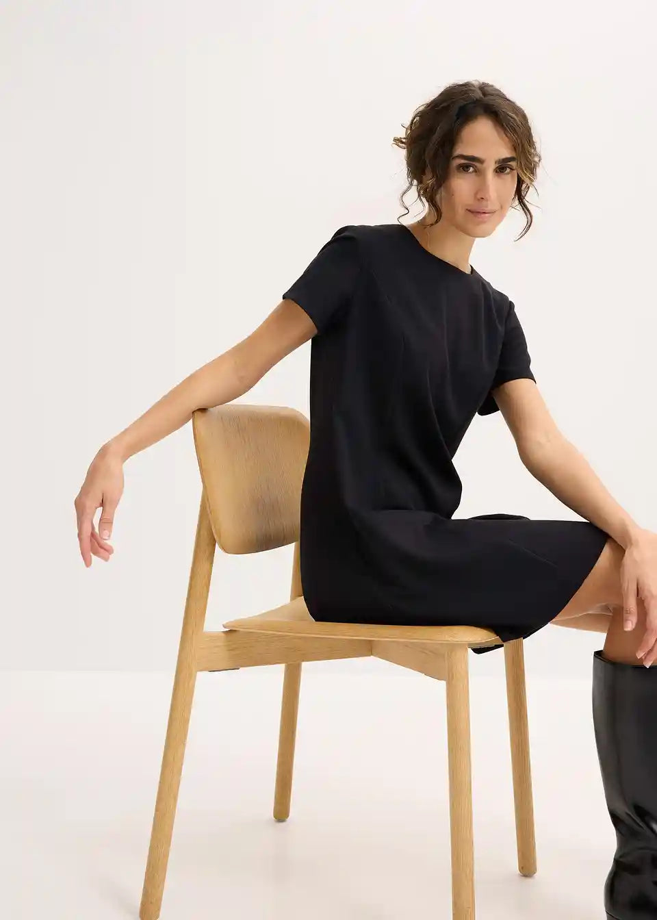 Kratka obleka z vidnimi šivi in v šiv všito zadrgo