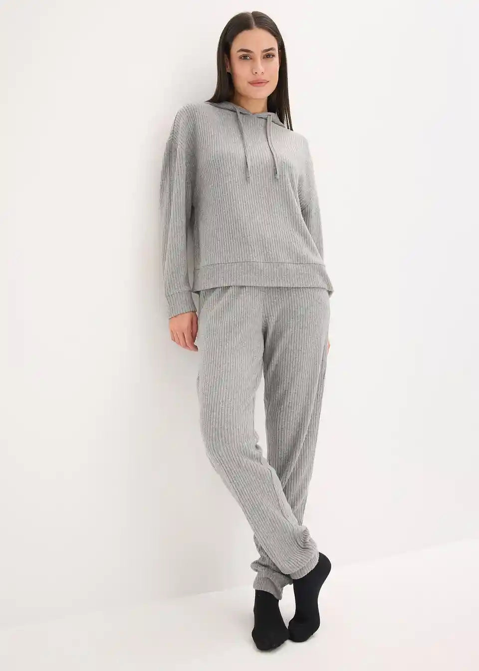 Široko krojeno udobno oblačilo za doma iz mehkega rebrastega materiala