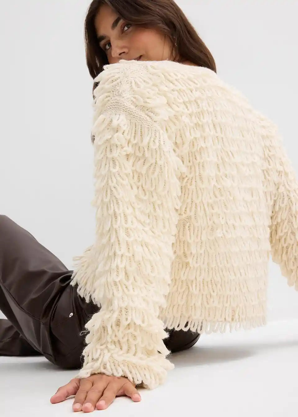 Trendna pletena jopa z v rokave podaljšanimi ramami