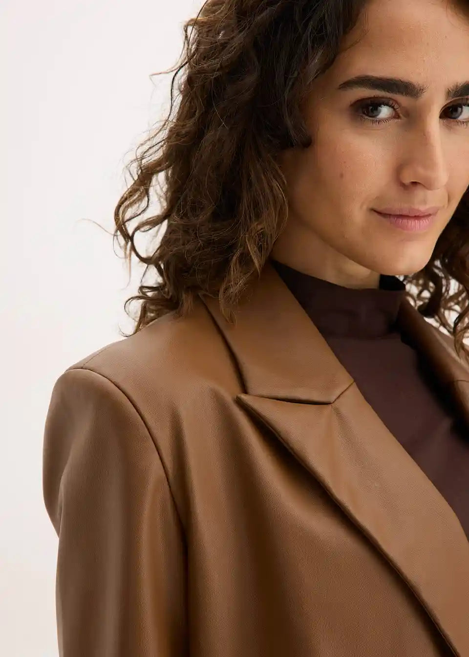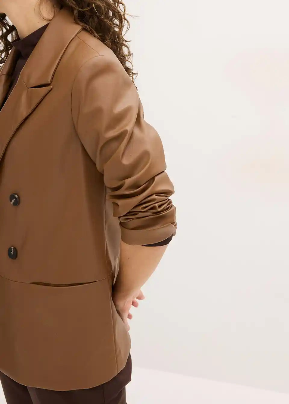 Dvoredni blazer z žepi iz mehkega umetnega usnja