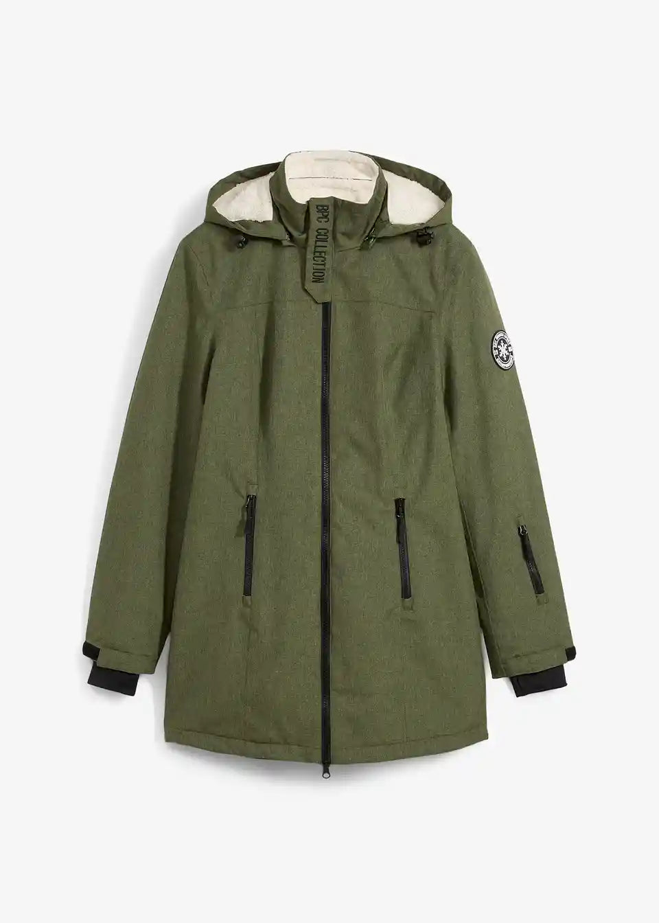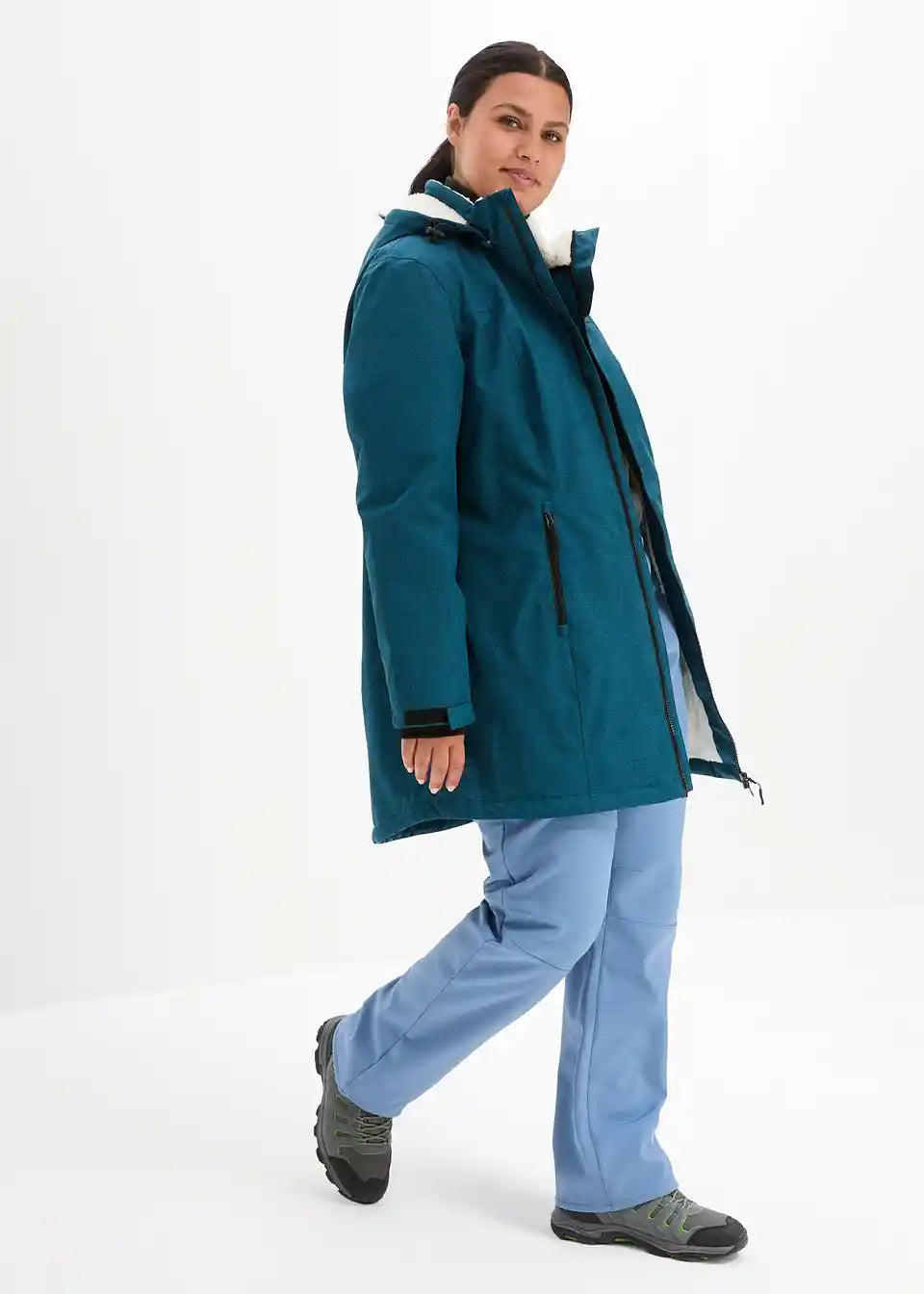 Funkcijska pohodniška dolga jakna z umetnim ovčjim krznom iz vodoodpornega materiala