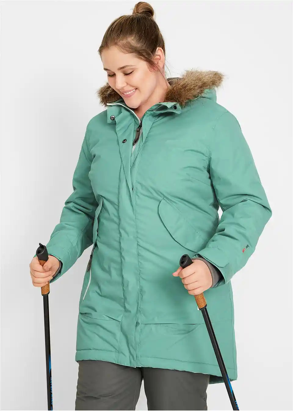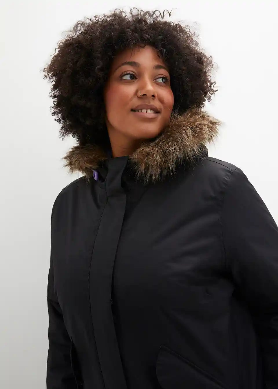 Popolna za veter in vremenske razmere: Športni funkcionalni zunanji plašč znamke bpc prepriča z vremensko odpornim dizajnom z lepljenimi šivi in termo podlogo. Funkcionalni material je popolnoma vodoodporen, vetroodporen in zračen (pribl. 3.000 g/m²/24h). Dodatno zaščito pred mrazom in dežjem zagotavljajo nastavljiva kapuca z vrvico z odstranljivim umetnim krznom ter dvosmerna zadrga z zaščito za brado. Funkcionalni plašč nudi obilo prostora za shranjevanje z dvema vodoodpornima žepoma z zadrgo in dvema zavihkoma spredaj ter mrežastim žepom in žepom z zadrgo z vključenim kablovodnikom znotraj. Širino lahko prilagodite z vrvico na robu in pasu ter z zapenjanjem na rokavih.