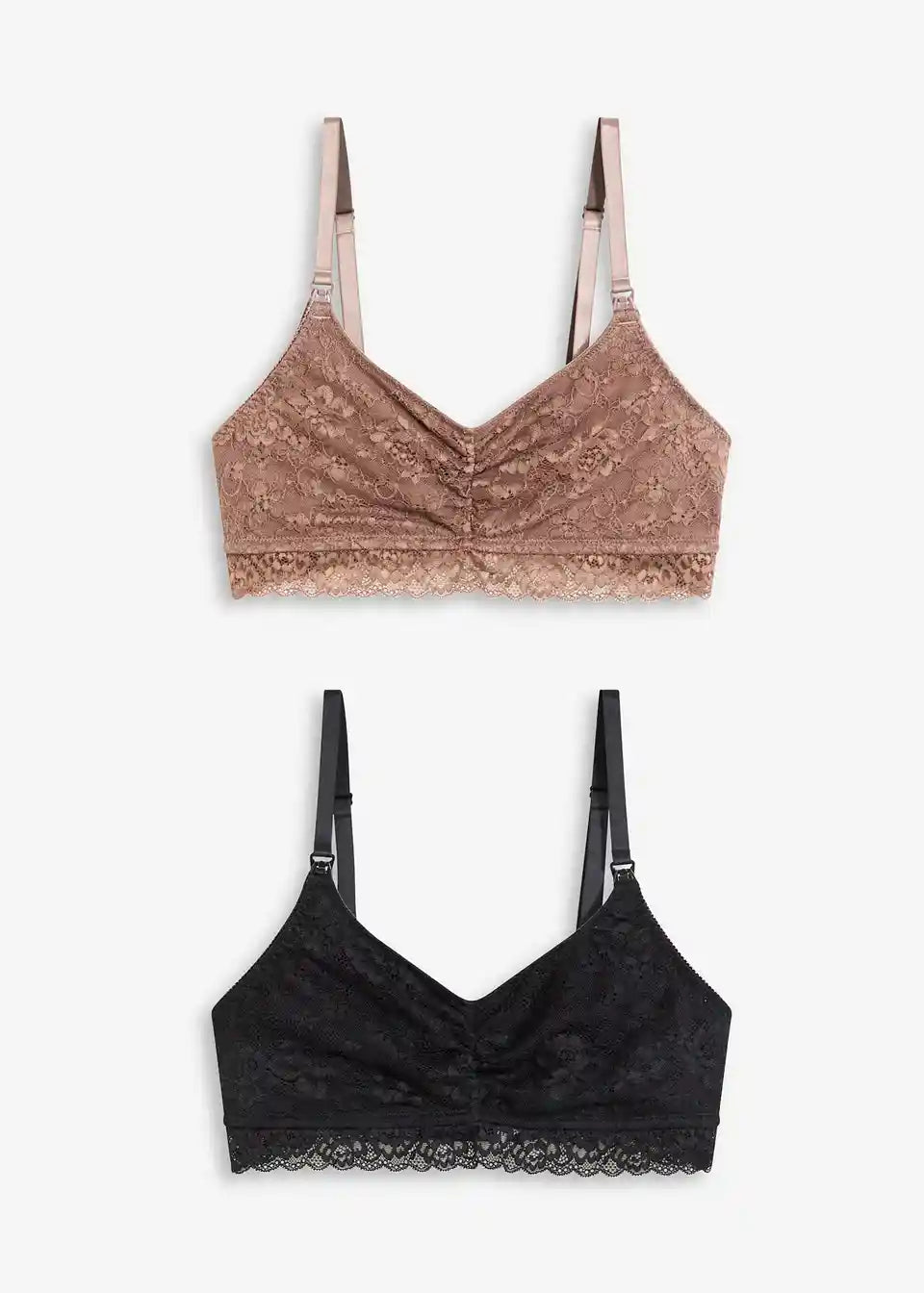 Nedrček za dojenje brez kosti s čipko in ekološkim bombažem (2 kosa)