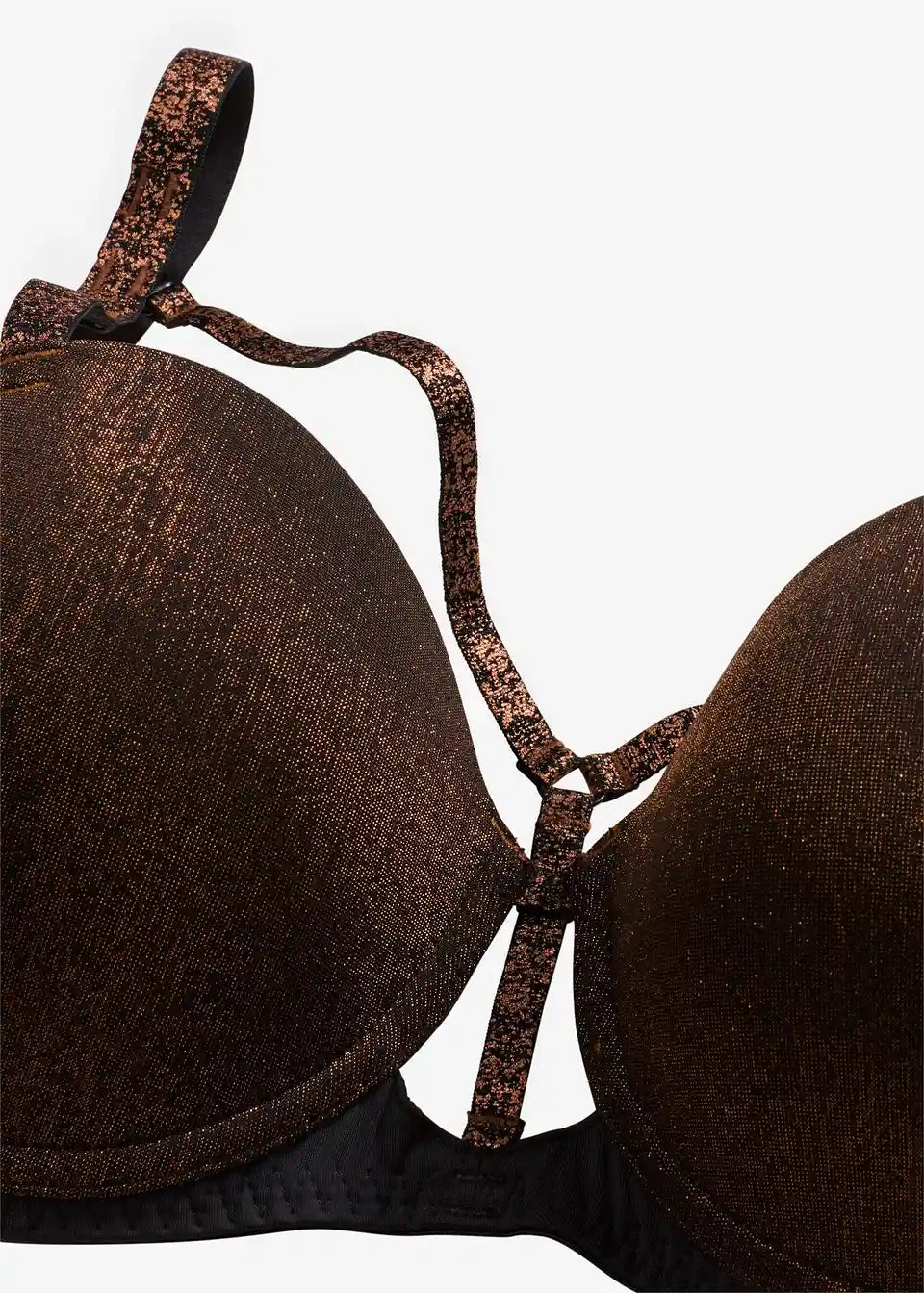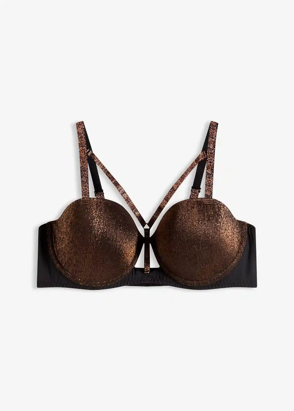 Balkonet nedrček iz svetlikajočega materiala s prefinjenim detajlom naramnic.