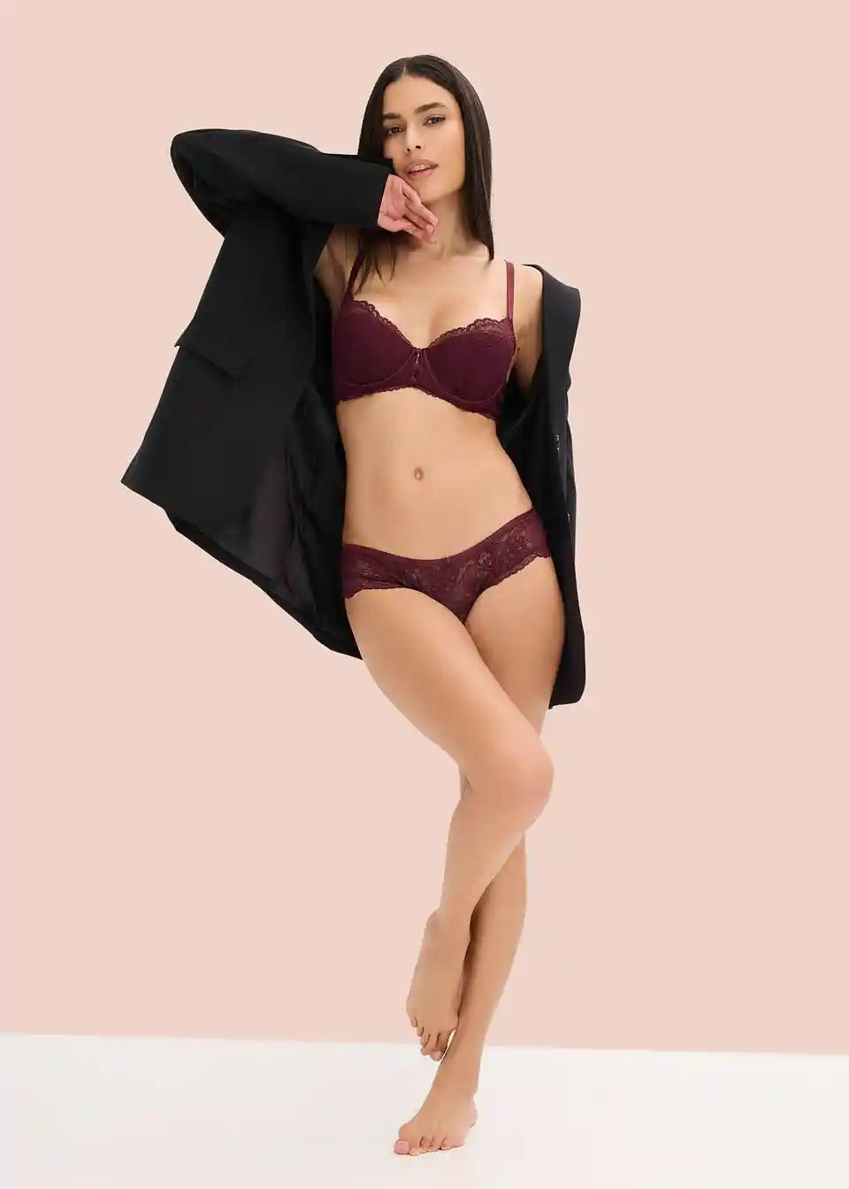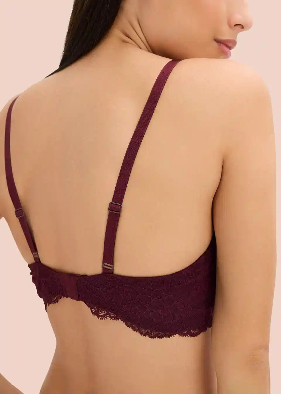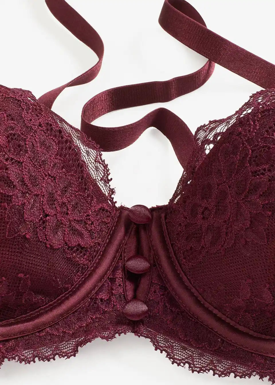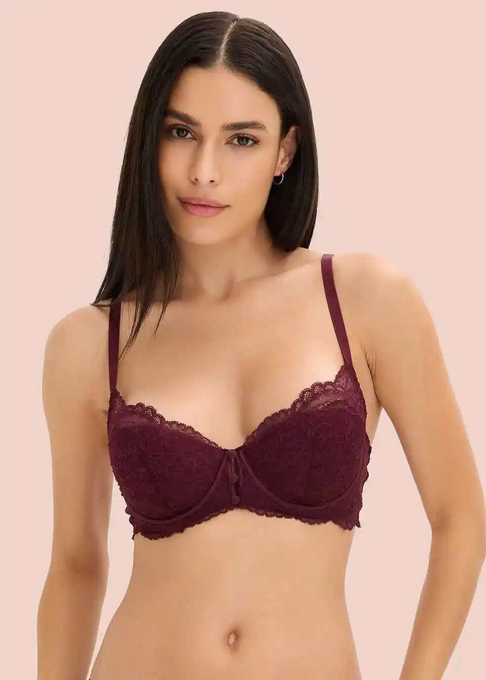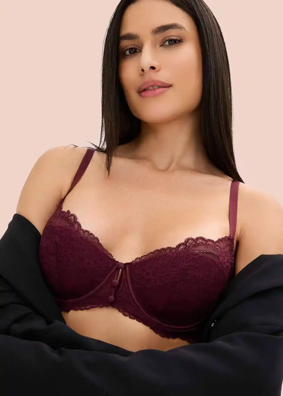 Penasto oblikovan nedrček iz fine čipke z ljubkim detajlom gumba.