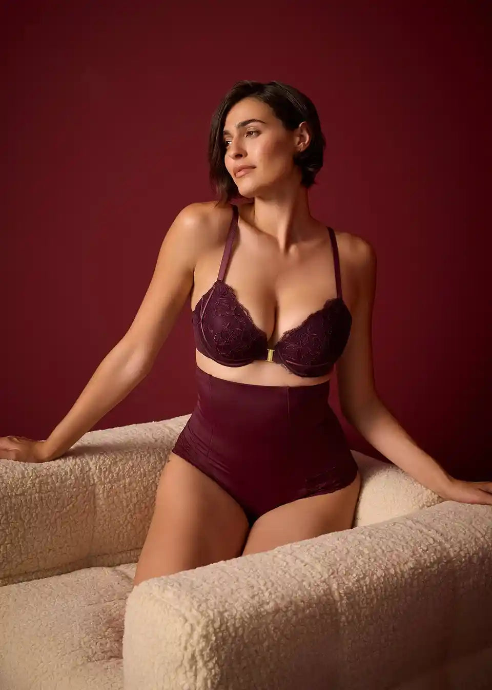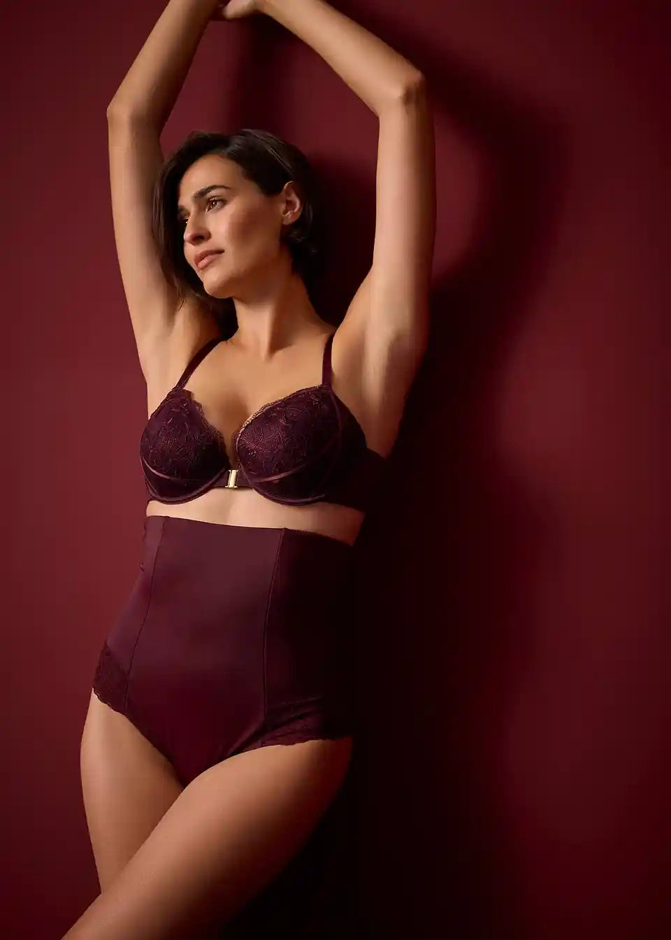 V pasu visoko krojene oblikovalne hlačke s čipko in močnim oblikovanjem