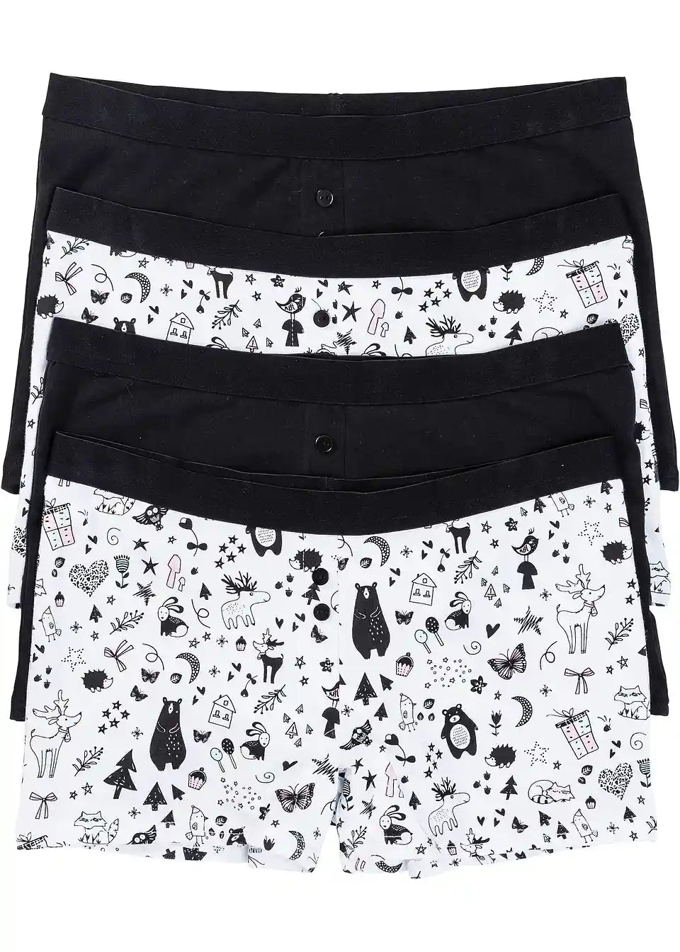 Ti udobni ženski boxerji v praktičnem štirikosovnem pakiranju vnašajo raznolikost v vsakdanjo garderobo. Mehki boxerji znamke bpc so zaradi mehkega blaga prijetni za kožo in vsebujejo vstavljen vložek iz bombaža. Nakazana odprtina poudarja njihov Boyfriend-Stil. Boxerji se najbolje ujemajo s športnimi nedrčki in bustierji. Vsak multipak vsebuje ženske boxerje v različnih izvedbah.