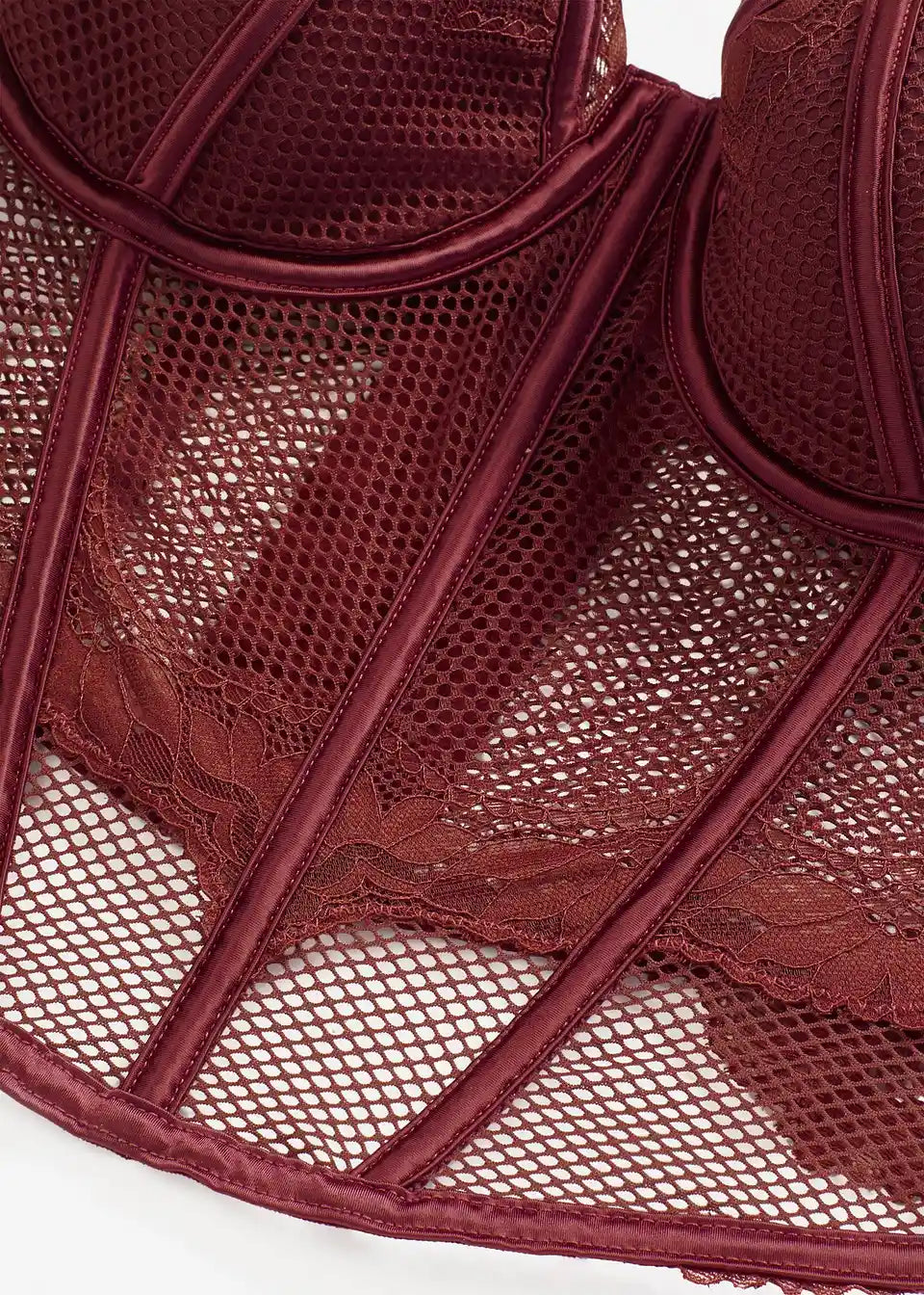 Material:zgornji material: 91% poliamid, 9% elastan, mreža: 90% poliamid, 10% elastan