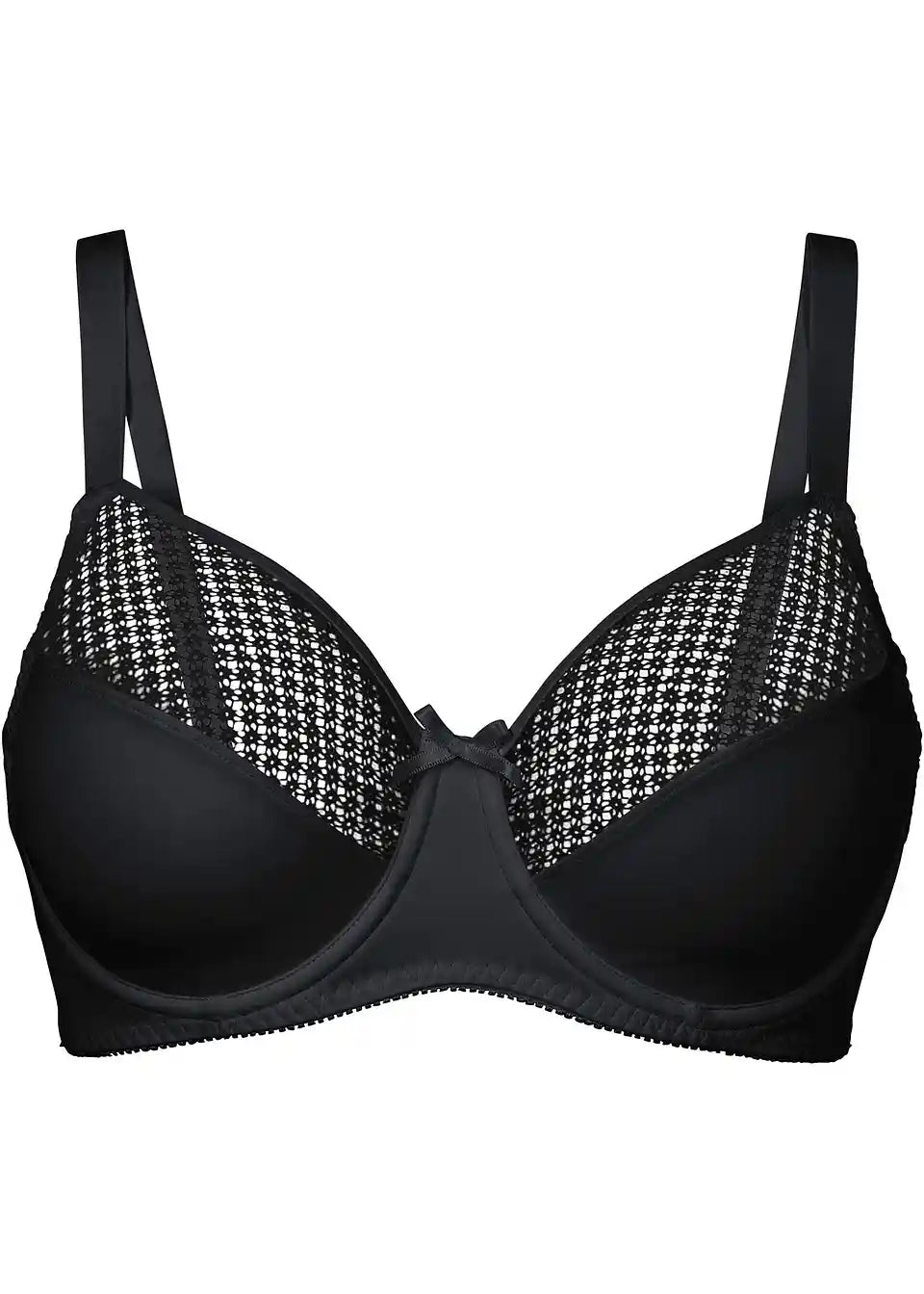 Diskretni Minimizer nedrček iz trenutne kolekcije bpc selection optično zmanjša prsi za eno velikost košarice. Posebna krojna zasnova nekoliko potisne volumen košarice na stran in navzdol, da doseže želeni učinek. Nepregleden nedrček se zapenja s klasično sponko s kaveljčki na zadnji strani in omogoča trostopenjsko prilagajanje obsega. Pri večjih košaricah so naramnice ustrezno širše, kar zagotavlja odlično oporo.