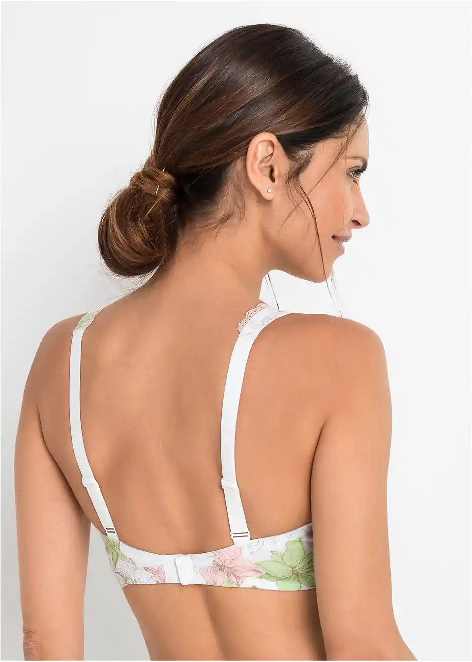 Nedrček iz bombaža je na voljo v paketu s 3 kosi. Čudovit rožnat potisk je dopolnjen s čipko na robovih košaric in pentljo na mostičku. Vgrajena opora zagotavlja optimalno oporo.