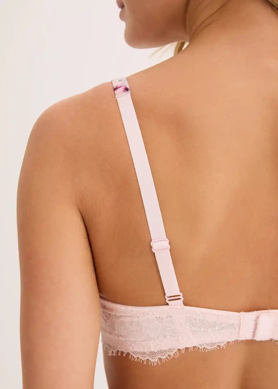 Podložen modrček z nežnim cvetličnim potiskom in sijočim učinkom.