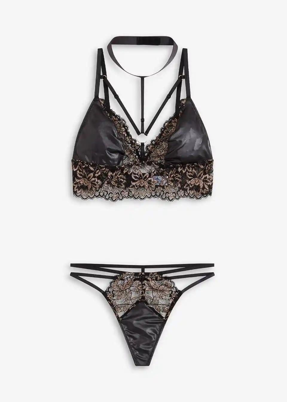 Bralette nedrček in string iz fine čipke z ovratnico.