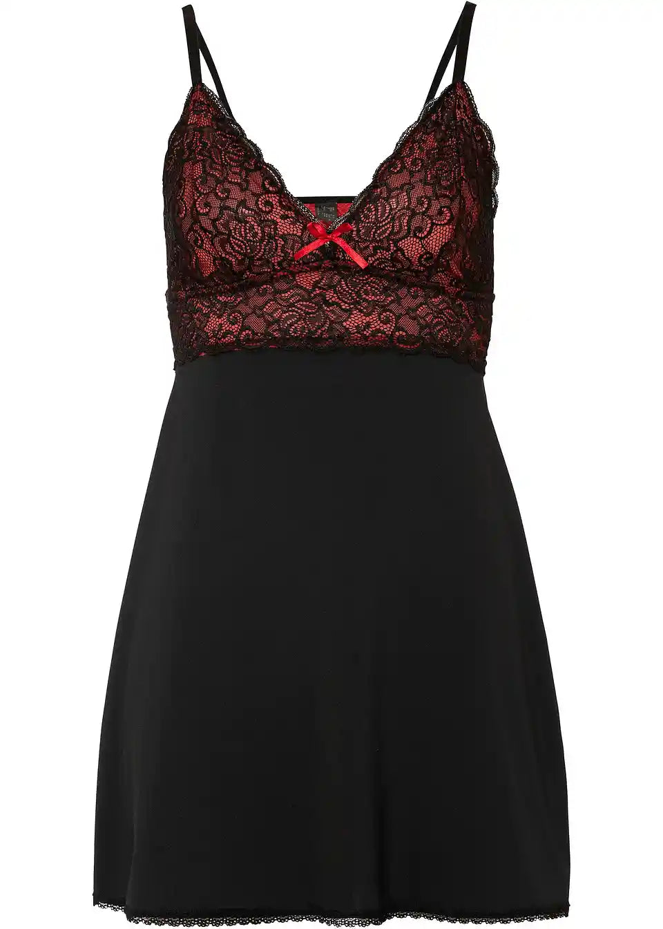 Poseben kos spodnjega perila za zahtevne dame - to je ta prefinjena obleka iz aktualne kolekcije BODYFLIRT.Zapeljiva obleka ima dve tanki naramnici in je na korzetu v celoti okrašena z nežno prozorno čipko. Svetleč material, majhna satenasta pentlja med košaricama in spodnji rob okrašen s čipko poudarjajo njen eleganten videz.Primerna do košarice D.