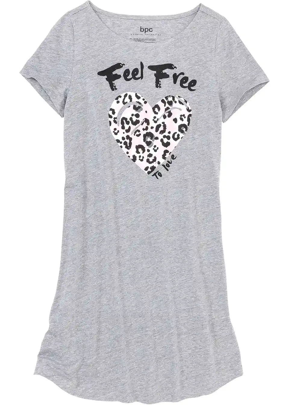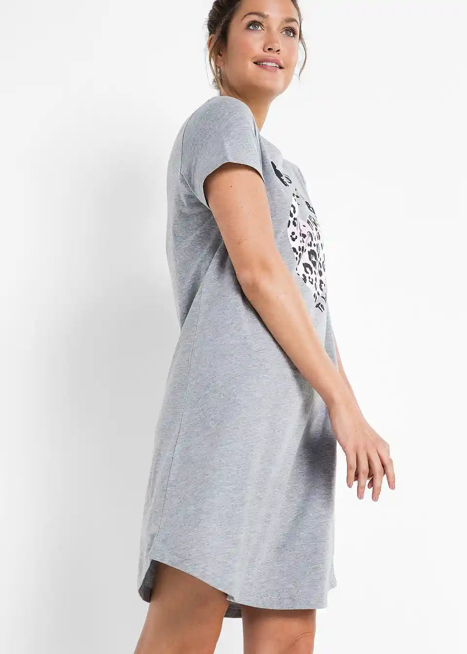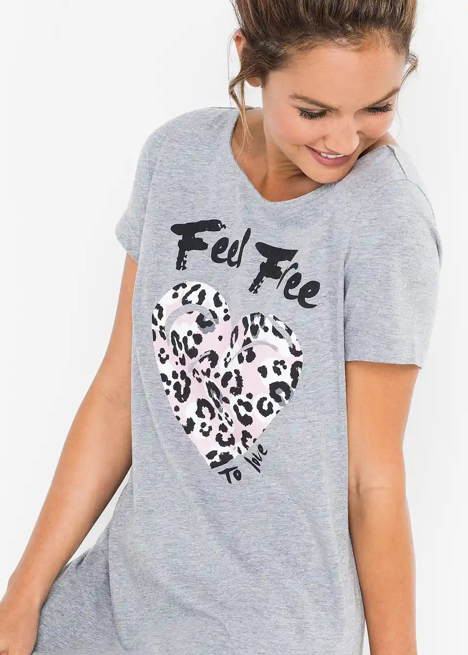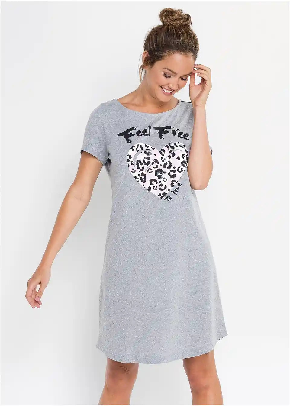 Udoben model za spanje je ta nočna srajca z okroglim izrezom. Zaradi ravnega kroja, ki objema postavo, in mehkih materialov je poskrbljeno za prijetno udobje med spanjem. Nočna obleka ima čudovit potisk na sprednji strani.